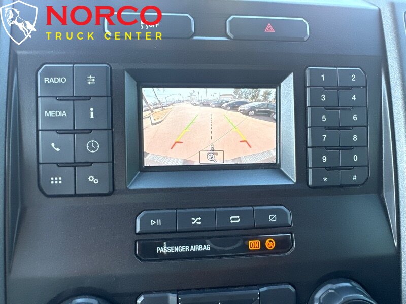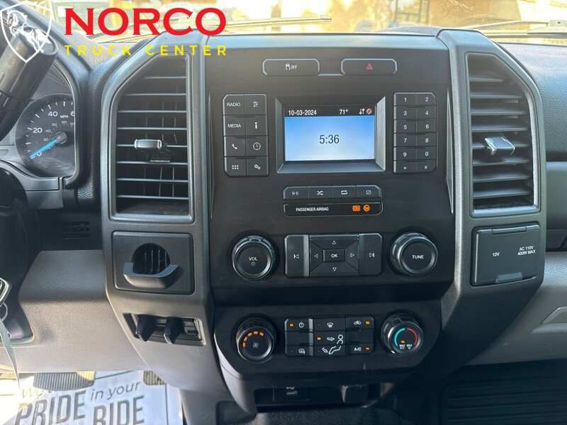 INSTALLED FEATURES: Air filtration, Front air conditioning, Front air conditioning zones: single, Airbag deactivation: passenger switch, Front airbags: dual, Side airbags: front, Side curtain airbags: front / rear, Antenna type: mast, Auxiliary audio input: Bluetooth / USB, Radio: AM/FM / voice operated, Speed sensitive volume control, Total speakers: 4, ABS: 4-wheel, Braking assist, Electronic brakeforce distribution, Front brake diameter: 14.29, Front brake type: ventilated disc, Power brakes, Rear brake diameter: 14.3, Rear brake type: ventilated disc, Armrests: front center, Door sill trim: scuff plate, Floor material: rubber/vinyl, Steering wheel trim: urethane, Assist handle: front, Cupholders: front, Overhead console: front, Power outlet(s): 12V front / USB front / USB-C front, Power steering, Reading lights: front / rear, Rearview mirror: manual day/night, Steering wheel: tilt and telescopic, Steering wheel mounted controls: audio / multi-function / phone / voice control, Storage: accessory hook / door pockets, Vanity mirrors: passenger, Axle ratio: 3.73, Alternator: 157 amps, Battery: maintenance-free, Battery rating: 650 CCA, Battery saver, Door handle color: black, Front bumper color: black, Grille color: black, License plate bracket: front, Mirror color: black, Pickup bed light, Rear bumper color: black, Side door type: dual rear-hinged access, Tailgate: lift assist / removable, Window trim: black, Connected in-car apps: app marketplace integration, Infotainment: SYNC, Infotainment screen size: 4.2 in., Clock, Digital odometer, External temperature display, Gauge: oil pressure / tachometer / transmission temperature, Instrument cluster screen size: 2.3 in., Powertrain hour meter, Warnings and reminders: low fuel level / maintenance due, Headlights: auto delay off / auto on/off / halogen / quad headlights / wiper activated, Side mirror adjustments: manual / manual folding / manual telescoping, Towing mirrors, Automatic hazard warning lights, Camera system: rearview, Child seat anchors: LATCH system, Crumple zones: front, Impact sensor: alert system / door unlock / post-collision safety system, Programmable safety key, Rearview monitor: in dash, Emergency locking retractors: front / rear, Front seatbelts: 3-point, Rear seatbelts: 3-point, Seatbelt pretensioners: front, Seatbelt warning sensor: front, Driver seat manual adjustments: lumbar / reclining / 6, Front headrests: adjustable / 2, Front seat type: 40-20-40 split bench, Passenger seat manual adjustments: reclining / 4, Rear headrests: adjustable / 3, Rear seat folding: folds up / split, Rear seat type: 60-40 split bench, Upholstery: vinyl, Anti-theft system: vehicle immobilizer, Hill holder control, Roll stability control, Stability control, Traction control, Trailer stability control, Front shock type: gas, Front spring type: coil, Front stabilizer bar, Front suspension classification: independent, Front suspension type: twin I-beam, Rear shock type: gas, Rear spring type: leaf, Rear suspension classification: solid live axle, Rear suspension type: multi-leaf, Electronic messaging assistance: voice operated / with read function, Hands-free phone call integration: voice operated, Smart device app compatibility: FordPass Connect, Smart device app function: engine start / lock operation / maintenance status / vehicle location, Wi-Fi: hotspot, Wireless data link: Bluetooth, Spare tire mount location: underbody, Spare tire size: full-size, Spare wheel type: steel, Tire Pressure Monitoring System, Tire type: all season, Wheels: painted steel, Tow hooks: front, Trailer hitch, Trailer wiring: 4-pin / 7-pin, Front wipers: variable intermittent, Solar-tinted glass: front
