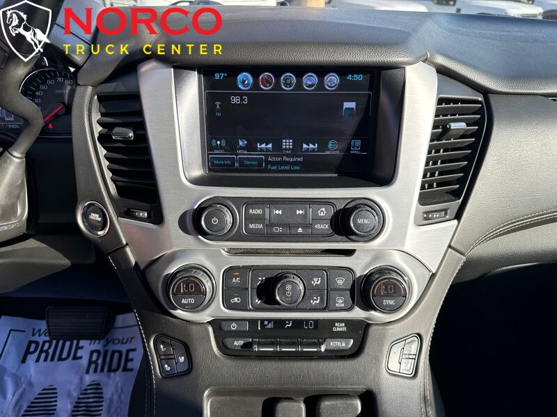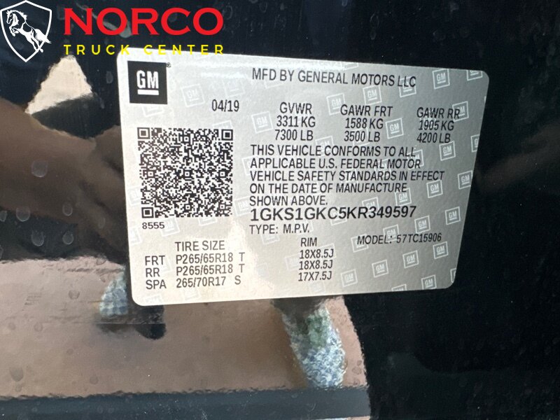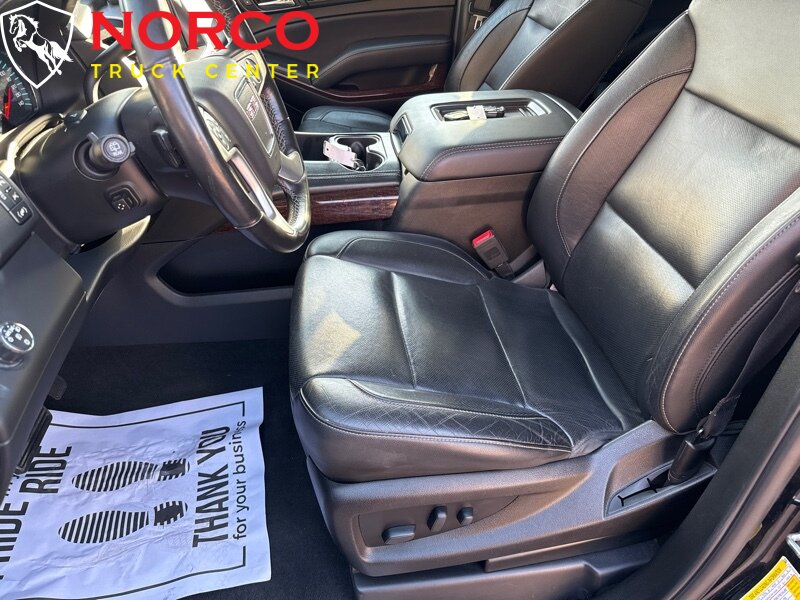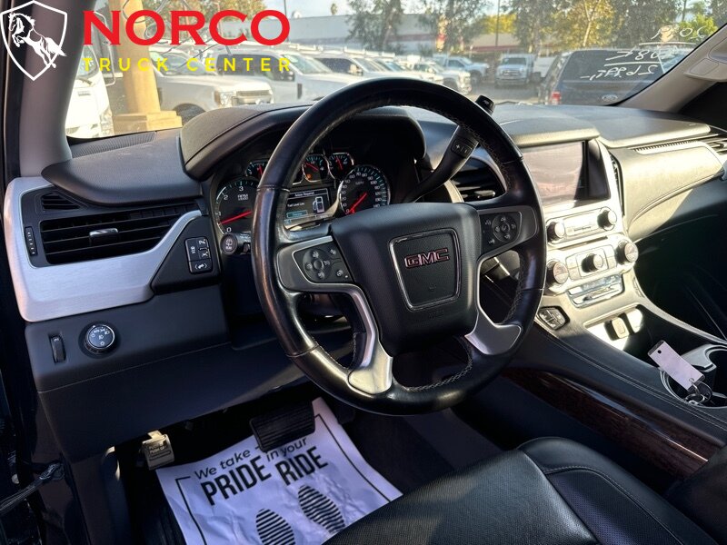 -- INSTALLED FEATURES: Air filtration, Front air conditioning: automatic climate control, Front air conditioning zones: dual, Rear air conditioning: automatic climate control / independently controlled, Rear air conditioning zones: single, Airbag deactivation: occupant sensing passenger, Front airbags: center / dual, Side airbags: front, Side curtain airbags: front / rear / third row, Antenna type: diversity / mast, Auxiliary audio input: Bluetooth / USB / iPod/iPhone / jack, In-Dash CD: MP3 Playback / single disc, Internet radio app: Pandora, Premium brand: Bose, Radio: AM/FM / HD radio / touch screen display / voice operated, Radio data system, Satellite radio: SiriusXM, Speed sensitive volume control, Subwoofer: 1, Total speakers: 8, ABS: 4-wheel, Braking assist, Electronic brakeforce distribution, Front brake diameter: 13.0, Front brake type: ventilated disc, Front brake width: 1.2, Power brakes, Rear brake diameter: 13.6, Rear brake type: ventilated disc, Rear brake width: 0.8, Armrests: rear center with cupholders / rear folding, Floor mat material: carpet, Floor material: carpet, Floor mats: front / rear, Heated steering wheel, Steering wheel trim: leather, Adjustable pedals: power, Assist handle: front / rear, Cargo area light, Center console: front console with armrest and storage, Conversation mirror, Cruise control, Cupholders: front / rear / third row, Footwell lights, Memorized settings: 2 driver / adjustable pedals / driver seat / side mirrors / steering wheel, Multi-function remote: panic alarm / proximity entry system / trunk release, One-touch windows: 4, Overhead console: front, Power outlet(s): 115V rear / 12V cargo area / 12V front / 12V rear, Power steering, Power windows: lockout button, Push-button start, Reading lights: front / rear, Rearview mirror: auto-dimming, Remote engine start, Steering wheel: power tilt and telescopic, Steering wheel mounted controls: audio / cruise control / multi-function / phone / voice control, Storage: cargo net / door pockets / front seatback / sunglasses holder, Universal remote transmitter: garage door opener, Vanity mirrors: dual illuminating, Axle ratio: 3.08, Locking differential: rear, Alternator: 150 amps, Auxiliary oil cooler, Battery: heavy duty / maintenance-free, Battery rating: 720 CCA, Battery saver, Cylinder deactivation, Active grille shutters, Door handle color: body-color, Front bumper color: body-color, Grille color: black / chrome surround, Mirror color: body-color, Rear bumper color: body-color, Rear trunk/liftgate: liftgate / power operated / sensor-activated, Running board color: black, Running boards, Window trim: chrome, Connected in-car apps: Google POIs / Google search / app marketplace integration, Infotainment: GMC Infotainment System, Infotainment screen size: 8 in., Smartphone integration: Android Auto / Apple CarPlay, Clock, Digital odometer, External temperature display, Fuel economy display: MPG / range, Gauge: tachometer, Instrument cluster screen size: 4.2 in., Multi-function display, Trip odometer, Warnings and reminders: low battery / low fuel level / low oil level / maintenance due / turn off headlights, Daytime running lights, Exterior entry lights: approach lamps / puddle lamps, Front fog lights, Headlights: auto delay off / auto high beam dimmer / auto on/off / halogen / wiper activated, Side mirror adjustments: power / power folding / reverse gear tilt, Side mirrors: driver side auto-dimming / heated / integrated turn signals, Roof rails: black, Automatic emergency braking: front, Blind spot safety: sensor/alert, Camera system: rearview, Check rear seat reminder, Child safety door locks, Child seat anchors: LATCH system, Cross traffic alert: rear, Lane deviation sensors, Lane keeping assist, Parking sensors: front / rear, Pre-collision warning system: audible warning / vibrating driver seat / visual warning, Programmable safety key, Rearview monitor: in dash, Emergency locking retractors: front / rear, Front seatbelts: 3-point, Rear seatbelts: 3-point, Seatbelt pretensioners: front, Seatbelt warning sensor: front, Third row seatbelts: 3-point, Driver seat: heated / ventilated, Driver seat power adjustments: 4-way power lumbar / height / reclining / 12, Front headrests: adjustable / 2, Front seat type: bucket, Passenger seat: heated / ventilated, Passenger seat manual adjustments: height, Passenger seat power adjustments: 4-way power lumbar / reclining / 12, Rear headrests: adjustable / 2, Rear seat: heated / power return, Rear seat folding: split, Rear seat manual adjustments: reclining, Rear seat type: 60-40 split bench, Third row headrests: adjustable / 2, Third row seat folding: flat / power / split, Third row seat type: 40-60 split bench, Upholstery: leather-trimmed, Upholstery accents: perforated, Anti-theft system: alarm / vehicle immobilizer, Power door locks: anti-lockout / auto-locking, Hill holder control, Roll stability control, Stability control, Traction control, Trailer stability control, Steering ratio: 17.3, Turns lock-to-lock: 3.40, Front shock type: twin-tube gas, Front spring type: coil, Front stabilizer bar: diameter 36 mm, Front struts, Front suspension classification: independent, Front suspension type: upper and lower control arms, Rear shock type: gas, Rear spring type: coil, Rear stabilizer bar: diameter 28 mm, Rear suspension classification: solid live axle, Rear suspension type: multi-link, Driver assistance app: roadside assistance, Electronic messaging assistance: voice operated / with read function, Satellite communications: OnStar / voice guided directions, Smart device app compatibility: myGMC with Connected Access, Smart device app function: maintenance status, Wi-Fi: hotspot, Wireless data link: Bluetooth, Spare tire mount location: underbody, Spare tire size: full-size, Spare wheel type: steel, Tire Pressure Monitoring System, Tire type: all season, Wheels: chrome aluminum alloy, Auxiliary transmission fluid cooler, Tow/Haul mode, Trailer hitch, Trailer wiri