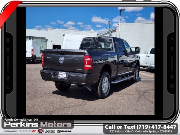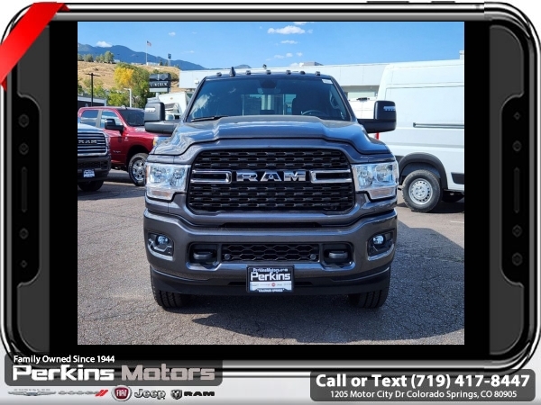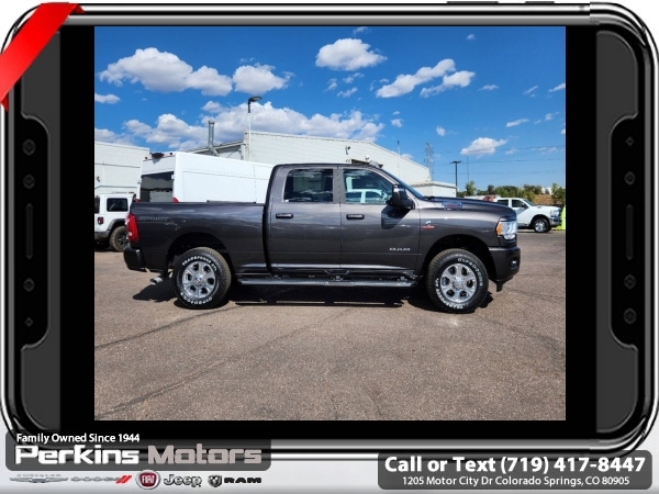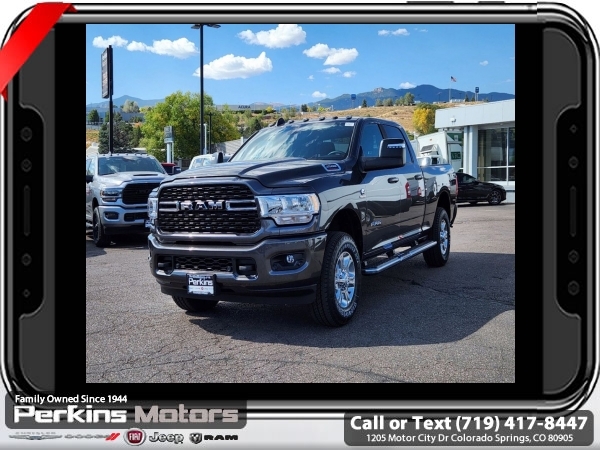 Factory MSRP: $79,280 $14,775 off MSRP! Granite Crystal Metallic Clearcoat 2024 Ram 2500 Big Horn 4WD 6-Speed Automatic Cummins 6.7L I6 Turbodiesel<br><br>Check us out at www.perkinsmotors.com to see our specials! Since opening our doors in 1944, we’ve been proud to serve Colorado Springs, CO, and the surrounding areas of Pueblo, Castle Rock and Denver, CO. Throughout this time of being family owned for 80 years, we’ve maintained a firm commitment to our customers: to offer a wide selection of New Chrysler, Dodge, Fiat, Jeep, and Ram vehicles and quality pre-owned vehicles, and provide a quick, no-hassle car-buying process that ensures everyone drives off the lot satisfied with their purchase.<br><br>Bed Utility Group (LED Bed Lighting, MOPAR Deployable Bed Step, and MOPAR Spray In Bedliner), Cold Weather Group (Engine Block Heater and MOPAR Winter Front Grille Cover), Heated Seats & Wheel Group (Heated Front Seats, Heated Steering Wheel, Leather Wrapped Steering Wheel, and Steering Wheel Mounted Audio Controls), Level 1 Equipment Group (2 Way Rear Headrest Seat, 2nd Row In Floor Storage Bins, 4 Way Front Headrests, 40/20/40 Split Bench Seat, 4G LTE Wi-Fi Hot Spot, 8.4 Touchscreen Display, Apple CarPlay, Auto Power-Folding Mirrors, Big Horn IP Badge, Black Exterior Mirrors, Bluetooth Handsfree Phone & Audio, Center Hub, Connectivity - US/Canada, Dual Glove Boxes, Exterior Mirrors Courtesy Lamps, Exterior Mirrors w/Heating Element, Exterior Mirrors w/Supplemental Signals, Foam Bottle Insert (Door Trim Panel), Footwell Courtesy Lamp, For Details, Visit DriveUconnect.com, For More Info, Call 800-643-2112, Forward & Reverse Utility Lights, Front Armrest w/Cupholders, Front Center Seat Cushion Storage, Front Fog Lamps, Front Seat Back Map Pockets, Global Telematics Box Module (TBM), Glove Box Lamp, Google Android Auto, GPS Antenna Input, Integrated Center Stack Radio, Integrated Voice Command w/Bluetooth, Locking Lower Glove Box, Manual Adjust 4-Way Front Passenger Seat, Mirror Running Lights, Power 2-Way Driver Lumbar Adjust, Power Adjust 8-Way Driver Seat, Power Adjust Mirrors, Power Adjustable Convex Aux Mirrors, Power Heated Fold Telescope Mirrors, Power Telescoping Mirrors, Rear 60/40 Folding Seat, Rear Dome w/On/Off Switch Lamp, Remote USB Port - Charge Only, Selectable Tire Fill Alert, SiriusXM Radio Service, SiriusXM Satellite Radio, Storage Tray, and Wheels: 18 x 8.0 Polished Aluminum), Protection Group (Tow Hooks), Quick Order Package 2HZ Big Horn, Snow Chief Group (Anti-Spin Differential Rear Axle, Auxiliary Switches Prep, Clearance Lamps, Dash Pass Thru Wire Circuits, and I/P Mounted Auxiliary Switches), Sport Appearance Package (Black Interior Accents, Body Color Door Handles, Body Color Grille Surround, Painted Front Bumper, Painted Rear Bumper, ParkSense Front/Rear Park Assist System, and Sport Decal), 115V Auxiliary Front Power Outlet, 12 Touchscreen Display, 220 Amp Alternator, 3.73 Axle Ratio, 4-Wheel Disc Brakes, 400W Inverter, 5th Wheel/Gooseneck Towing Prep Group, 6 Speakers, 9 Alpine Speakers w/Subwoofer, ABS brakes, Active Noise Control System, Air Conditioning, Air Conditioning ATC w/Dual Zone Control, Alexa Built-In, All R1 High Radios, All Radio Equipped Vehicles, Auto Level Rear Air Suspension, Blind Spot & Cross Path Detection, Brake assist, Bumpers: chrome, Center Stack Storage Drawer, Chrome Flat Wheel-to-Wheel Side Steps, Cloth 40/20/40 Bench Seat, Compass, Connected Travel & Traffic Services, Cruise Control, CTR Stop Lamp w/Cargo View Camera, Delay-off headlights, Disassociated Touchscreen Display, Driver door bin, Dual Alternators Rated At 440 Amps, Dual front Sale price includes all manufacture's incentives and dealer discounts. Sale price not available on lease or compatible with special APR. $1000 - 2024West BC Trade Assist Bonus Cash. Exp. 06/02/2025 $1500 - 2024 National Stellantis Loyalty Bonus Cash . Exp. 06/02/2025 $6726 - 2024 National Minimum Employee Pricing Discount . Exp. 0