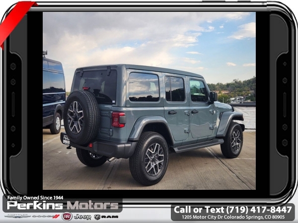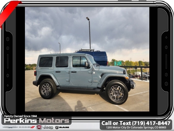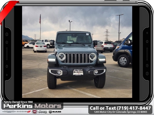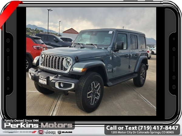 Factory MSRP: $59,940 $10,994 off MSRP! Anvil Clear Coat 2024 Jeep Wrangler Sahara 4WD 8-Speed Automatic 3.6L V6 24V VVT<br><br>Check us out at www.perkinsmotors.com to see our specials! Since opening our doors in 1944, we’ve been proud to serve Colorado Springs, CO, and the surrounding areas of Pueblo, Castle Rock and Denver, CO. Throughout this time of being family owned for 80 years, we’ve maintained a firm commitment to our customers: to offer a wide selection of New Chrysler, Dodge, Fiat, Jeep, and Ram vehicles and quality pre-owned vehicles, and provide a quick, no-hassle car-buying process that ensures everyone drives off the lot satisfied with their purchase.<br><br>Quick Order Package 24G Sahara, 110 MPH Vehicle Max Speed Calibration, 12.3 Touchscreen Display, 3.45 Overall Top Gear Ratio, 4-Wheel Disc Brakes, 8 Speakers, ABS brakes, Air Conditioning, Alloy wheels, AM/FM radio: SiriusXM, Apple CarPlay, Apple CarPlay/Android Auto, Automatic temperature control, Aux Battery, Brake assist, Cloth Low-Back Bucket Seats, Compass, Connectivity - US/Canada, Cruise Control, Delay-off headlights, Disassociated Touchscreen Display, Driver door bin, Driver vanity mirror, Dual front impact airbags, Dual front side impact airbags, Electronic Stability Control, Emergency communication system: Jeep Connect, Front anti-roll bar, Front Bucket Seats, Front Center Armrest w/Storage, Front dual zone A/C, Front fog lights, Front License Plate Bracket, Front reading lights, Fully automatic headlights, Google Android Auto, Heated door mirrors, Heated front seats, Heated steering wheel, Heavy Duty Suspension w/Gas Shocks, Illuminated entry, Integrated Center Stack Radio, Integrated roll-over protection, Integrated Voice Command w/Bluetooth, Low tire pressure warning, MOPAR All-Weather Floor Mats, Non-Lock Fuel Cap w/o Discriminator, Occupant sensing airbag, Outside temperature display, Overhead airbag, Panic alarm, ParkView Rear Back-Up Camera, Passenger door bin, Passenger vanity mirror, Power door mirrors, Power steering, Power Top Quarter Window Storage Bag, Power windows, Radio data system, Radio: Uconnect 5 w/12.3 Display, Rear anti-roll bar, Rear reading lights, Rear Window Defroster, Rear Window Wiper/Washer, Remote keyless entry, Removable Rear Quarter Windows, Security system, Side Steps, Sky 1-Touch Power Top, Split folding rear seat, Steering wheel mounted audio controls, Stop-Start Dual Battery System, Tachometer, Telescoping steering wheel, Tilt steering wheel, Traction control, Trip computer, Variably intermittent wipers, Voltmeter, and Wheels: 18 x 7.5 Machine/Painted Gray. Sale price includes all manufacture's incentives and dealer discounts. Sale price not available on lease or compatible with special APR. 10% Msrp - 2024 National Standalone 10% Below MSRP (1/B/L/E). Exp. 03/03/2025