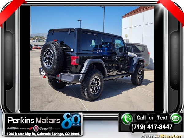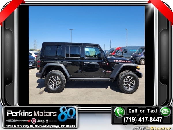 Factory MSRP: $59,540 $10,954 off MSRP! Priced below KBB Fair Purchase Price! Black Clearcoat 2024 Jeep Wrangler Rubicon 4WD 8-Speed Automatic 2.0L I4 DOHC<br><br>Check us out at www.perkinsmotors.com to see our specials! Since opening our doors in 1944, we’ve been proud to serve Colorado Springs, CO, and the surrounding areas of Pueblo, Castle Rock and Denver, CO. Throughout this time of being family owned for 80 years, we’ve maintained a firm commitment to our customers: to offer a wide selection of New Chrysler, Dodge, Fiat, Jeep, and Ram vehicles and quality pre-owned vehicles, and provide a quick, no-hassle car-buying process that ensures everyone drives off the lot satisfied with their purchase.<br><br>Convenience Group (Heated Front Seats, Heated Steering Wheel, and Remote Start System), Quick Order Package 22R Rubicon, 12.3 Touchscreen Display, 4-Wheel Disc Brakes, 4.10 Rear Axle Ratio, 8 Speakers, 97 MPH Vehicle Max Speed Calibration, ABS brakes, Air Conditioning, Alloy wheels, AM/FM radio: SiriusXM, Apple CarPlay, Apple CarPlay/Android Auto, Automatic temperature control, Aux Battery, Body Color 3-Piece Hard Top, Brake assist, Cloth Low-Back Bucket Seats, Compass, Connectivity - US/Canada, Cruise Control, Delay-off headlights, Disassociated Touchscreen Display, Driver door bin, Driver vanity mirror, Dual front impact airbags, Dual front side impact airbags, Electronic Stability Control, Emergency communication system: Jeep Connect, Front anti-roll bar, Front Bucket Seats, Front Center Armrest w/Storage, Front dual zone A/C, Front fog lights, Front License Plate Bracket, Front reading lights, Fully automatic headlights, Google Android Auto, Heated door mirrors, Illuminated entry, Integrated Center Stack Radio, Integrated roll-over protection, Integrated Voice Command w/Bluetooth, Jeep Trail Rated Kit, Low tire pressure warning, MOPAR All-Weather Floor Mats, Non-Lock Fuel Cap w/o Discriminator, Occupant sensing airbag, Outside temperature display, Overhead airbag, Panic alarm, ParkView Rear Back-Up Camera, Passenger door bin, Passenger vanity mirror, Performance Suspension, Power door mirrors, Power steering, Power windows, Radio data system, Radio: Uconnect 5 w/12.3 Display, Rear anti-roll bar, Rear reading lights, Remote keyless entry, Security system, Split folding rear seat, Steering wheel mounted audio controls, Stop-Start Dual Battery System, Tachometer, Telescoping steering wheel, Tilt steering wheel, Traction control, Trip computer, Variably intermittent wipers, Voltmeter, and Wheels: 17 x 7.5 Machined/Painted Black. Sale price includes all manufacture's incentives and dealer discounts. Sale price not available on lease or compatible with special APR. 10% Msrp - 2024 National Standalone 10% Below MSRP (1/B/L/E). Exp. 03/03/2025