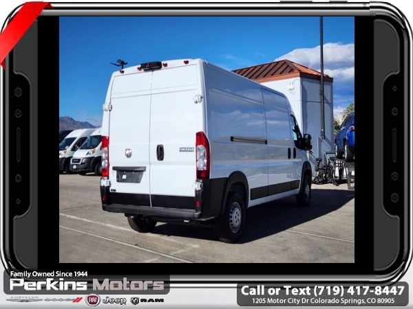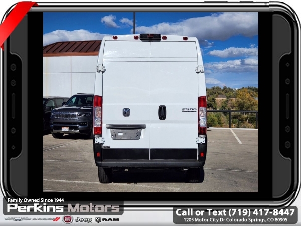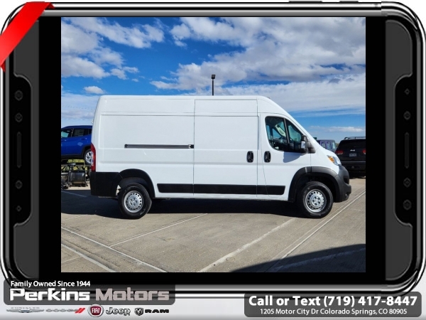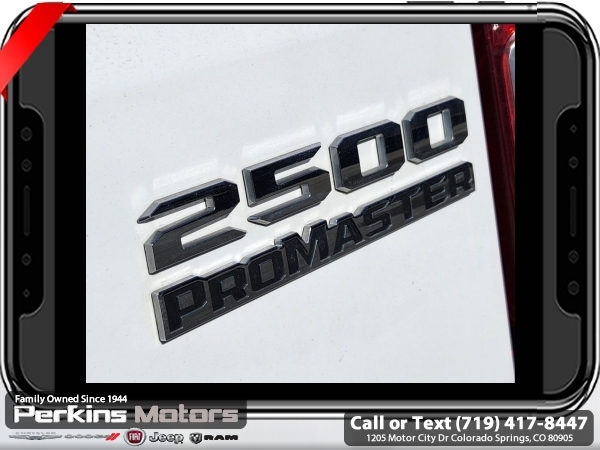 2024 Ram ProMaster 2500 High Roof Bright White Clearcoat | FWD | 3.6L V6 | 9-Speed Automatic<br><br>Built to haul, built to last. This 2024 Ram ProMaster 2500 High Roof is the ultimate commercial workhorsefeaturing a cavernous cargo area, easy access via wide rear and sliding doors, and a responsive 3.6L V6 engine paired with a smooth 9-speed automatic transmission.<br><br>Outfitted with Apple CarPlay/Android Auto, a 7 Uconnect display, ParkView Rear Backup Camera, and heavy-duty suspension, this van is ready for whatever the job demands. Whether you're delivering across town or building the business from the ground upthis ProMaster is your mobile command center.<br><br>Check us out at www.perkinsmotors.com to see our specials! Proudly serving Colorado Springs, Pueblo, Castle Rock, and Denver since 1944. Family-owned, customer-focused, and ready to help you get to work.