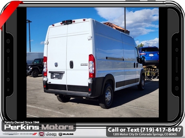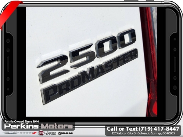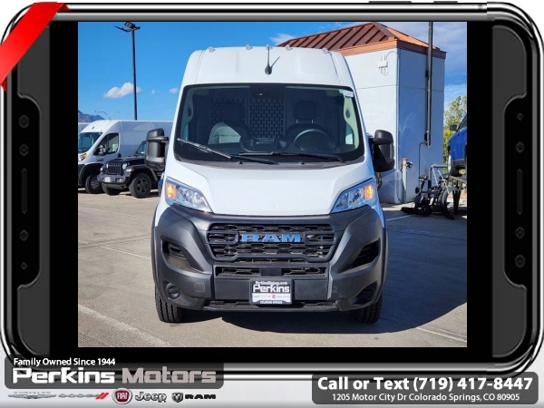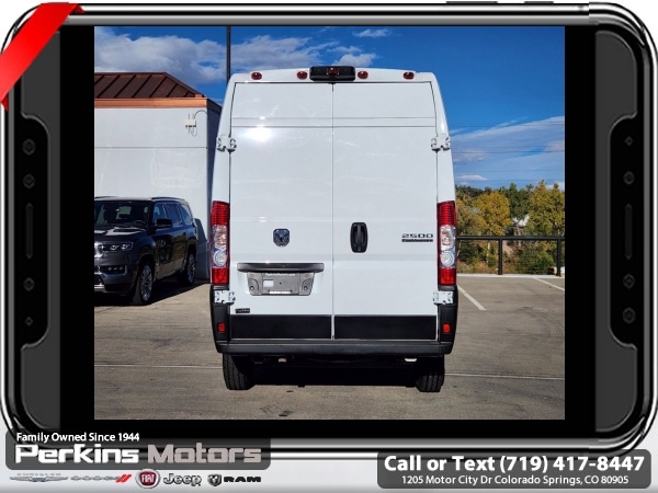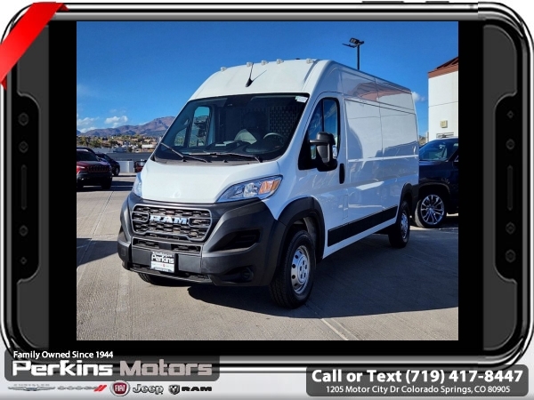 2024 Ram ProMaster 2500 High Roof Bright White Clearcoat | FWD | 3.6L V6 | 9-Speed Automatic<br><br>Built to haul, built to last. This 2024 Ram ProMaster 2500 High Roof is the ultimate commercial workhorsefeaturing a cavernous cargo area, easy access via wide rear and sliding doors, and a responsive 3.6L V6 engine paired with a smooth 9-speed automatic transmission.<br><br>Outfitted with Apple CarPlay/Android Auto, a 7 Uconnect display, ParkView Rear Backup Camera, and heavy-duty suspension, this van is ready for whatever the job demands. Whether you're delivering across town or building the business from the ground upthis ProMaster is your mobile command center.<br><br>Check us out at www.perkinsmotors.com to see our specials! Proudly serving Colorado Springs, Pueblo, Castle Rock, and Denver since 1944. Family-owned, customer-focused, and ready to help you get to work.