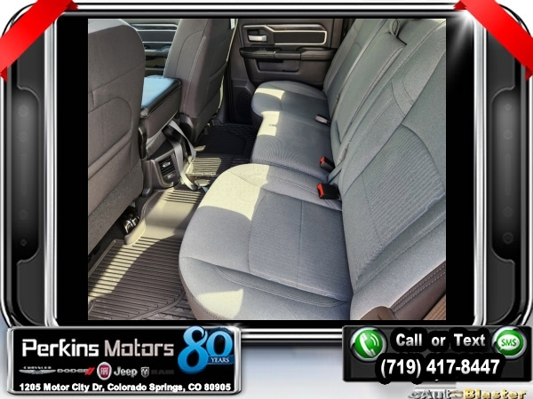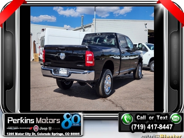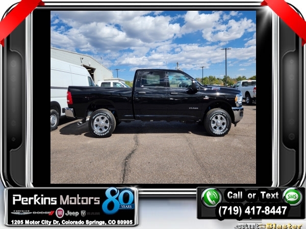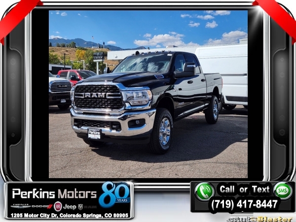 Factory MSRP: $74,035 $11,570 off MSRP! Priced below KBB Fair Purchase Price! Diamond Black Crystal Pearlcoat 2024 Ram 2500 Big Horn 4WD 6-Speed Automatic Cummins 6.7L I6 Turbodiesel<br><br>Check us out at www.perkinsmotors.com to see our specials! Since opening our doors in 1944, we’ve been proud to serve Colorado Springs, CO, and the surrounding areas of Pueblo, Castle Rock and Denver, CO. Throughout this time of being family owned for 80 years, we’ve maintained a firm commitment to our customers: to offer a wide selection of New Chrysler, Dodge, Fiat, Jeep, and Ram vehicles and quality pre-owned vehicles, and provide a quick, no-hassle car-buying process that ensures everyone drives off the lot satisfied with their purchase.<br><br>Cold Weather Group (Engine Block Heater and MOPAR Winter Front Grille Cover), Heated Seats & Wheel Group (Heated Front Seats, Heated Steering Wheel, Leather Wrapped Steering Wheel, and Steering Wheel Mounted Audio Controls), Level 1 Equipment Group (2 Way Rear Headrest Seat, 2nd Row In Floor Storage Bins, 4 Way Front Headrests, 40/20/40 Split Bench Seat, 4G LTE Wi-Fi Hot Spot, 8.4 Touchscreen Display, Apple CarPlay, Auto Power-Folding Mirrors, Big Horn IP Badge, Black Exterior Mirrors, Bluetooth Handsfree Phone & Audio, Center Hub, Connectivity - US/Canada, Dual Glove Boxes, Exterior Mirrors Courtesy Lamps, Exterior Mirrors w/Heating Element, Exterior Mirrors w/Supplemental Signals, Foam Bottle Insert (Door Trim Panel), Footwell Courtesy Lamp, For Details, Visit DriveUconnect.com, For More Info, Call 800-643-2112, Forward & Reverse Utility Lights, Front Armrest w/Cupholders, Front Center Seat Cushion Storage, Front Fog Lamps, Front Seat Back Map Pockets, Global Telematics Box Module (TBM), Glove Box Lamp, Google Android Auto, GPS Antenna Input, Integrated Center Stack Radio, Integrated Voice Command w/Bluetooth, Locking Lower Glove Box, Manual Adjust 4-Way Front Passenger Seat, Mirror Running Lights, Power 2-Way Driver Lumbar Adjust, Power Adjust 8-Way Driver Seat, Power Adjust Mirrors, Power Adjustable Convex Aux Mirrors, Power Heated Fold Telescope Mirrors, Power Telescoping Mirrors, Rear 60/40 Folding Seat, Rear Dome w/On/Off Switch Lamp, Remote USB Port - Charge Only, Selectable Tire Fill Alert, SiriusXM Radio Service, SiriusXM Satellite Radio, Storage Tray, and Wheels: 18 x 8.0 Polished Aluminum), Off Road Package (Front Performance Tuned Shock Absorbers, Hill Descent Control, Rear Performance Tuned Shock Absorbers, and Tow Hooks), Quick Order Package 2HZ Big Horn, 220 Amp Alternator, 3.73 Axle Ratio, 4-Wheel Disc Brakes, 5th Wheel/Gooseneck Towing Prep Group, 6 Speakers, ABS brakes, Active Noise Control System, Air Conditioning, Air Conditioning ATC w/Dual Zone Control, Alexa Built-In, All R1 High Radios, All Radio Equipped Vehicles, Anti-Spin Differential Rear Axle, Blind Spot & Cross Path Detection, Brake assist, Bumpers: chrome, Center Stack Storage Drawer, Clearance Lamps, Cloth 40/20/40 Bench Seat, Compass, Connected Travel & Traffic Services, Cruise Control, CTR Stop Lamp w/Cargo View Camera, Dash Pass Thru Wire Circuits, Delay-off headlights, Disassociated Touchscreen Display, Driver door bin, Dual front impact airbags, Dual front side impact airbags, Electronic Stability Control, Electronically Controlled Throttle, Emergency communication system: SiriusXM Guardian, Front anti-roll bar, Front Center Armrest w/Storage, Front License Plate Bracket, Front reading lights, Fully automatic headlights, GPS Navigation, HD Radio, Heated door mirrors, I/P Mounted Auxiliary Switches, Illuminated entry, LED Tail Lamps, Low tire pressure warning, Manual Adjust 4-Way Driver Seat, Manufacturer's Statement of Origin, MOPAR Front & Rear Rubber Floor Mats, MOPAR Spray In Bedliner, Occupant sensing airbag, Off-Road Informati Sale price includes all manufacture's incentives and dealer discounts. Sale price not available on lease or compatible with special APR. $1000 - 2024 Bonus Cash . Exp. 1