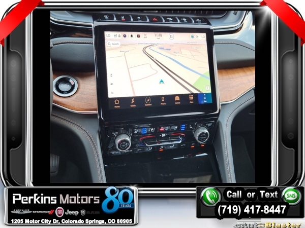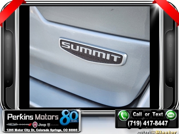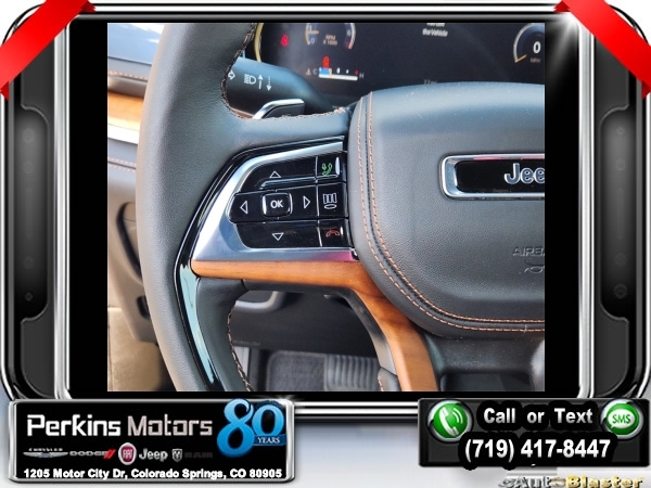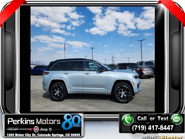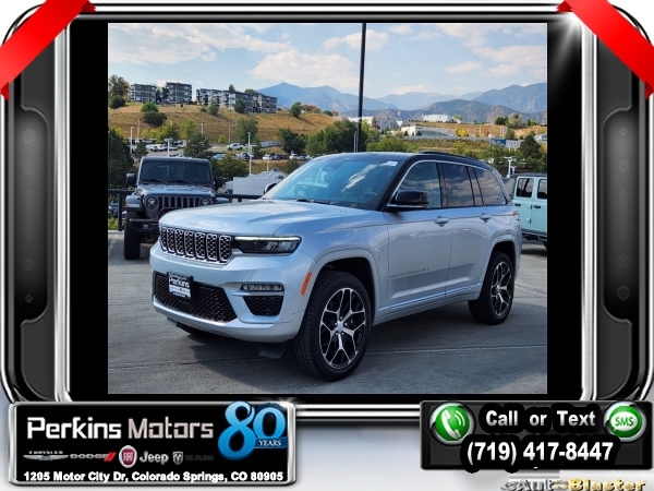 Factory MSRP: $65,430 $4,000 off MSRP! Silver Zynith 2025 Jeep Grand Cherokee Summit 4WD 8-Speed Automatic 3.6L V6 24V VVT<br>4WD.<br>Check us out at www.perkinsmotors.com to see our specials! Since opening our doors in 1944, we’ve been proud to serve Colorado Springs, CO, and the surrounding areas of Pueblo, Castle Rock and Denver, CO. Throughout this time of being family owned for 80 years, we’ve maintained a firm commitment to our customers: to offer a wide selection of New Chrysler, Dodge, Fiat, Jeep, and Ram vehicles and quality pre-owned vehicles, and provide a quick, no-hassle car-buying process that ensures everyone drives off the lot satisfied with their purchase.<br><br>Quick Order Package 23U Summit Reserve (19 Speakers High Performance Audio, 950 Watt Amplifier, Active Noise Control System, Deluxe Headliner, Front Passenger Interactive Display, Palermo Leather Door Trim, Palermo Leather Seats, Summit Reserve, Summit Reserve Badge, Ventilated Rear Seats, and Wheels: 21 x 9 Machined Face/Painted Aluminum), 4WD, 10 Speakers, 4-Wheel Disc Brakes, ABS brakes, Adaptive suspension, Air Conditioning, Alloy wheels, AM/FM radio: SiriusXM with 360L, Anti-whiplash front head restraints, Audio memory, Auto High-beam Headlights, Auto-dimming door mirrors, Auto-dimming Rear-View mirror, Auto-leveling suspension, Automatic temperature control, Auxiliary Battery, Brake assist, Bumpers: body-color, Compass, Cruise Control, Delay-off headlights, Driver door bin, Driver vanity mirror, Dual front impact airbags, Dual front side impact airbags, Electronic Stability Control, Emergency communication system, Four wheel independent suspension, Front anti-roll bar, Front Bucket Seats, Front Center Armrest w/Storage, Front dual zone A/C, Front fog lights, Front License Plate Bracket, Front reading lights, Fully automatic headlights, Garage door transmitter, Genuine wood dashboard insert, Genuine wood door panel insert, Heated door mirrors, Heated front seats, Heated rear seats, Heated steering wheel, Illuminated entry, Knee airbag, Leather steering wheel, Low tire pressure warning, Memory seat, Model Year Tracking, Nappa Leather Seats, Navigation System, Normal Duty Suspension, Occupant sensing airbag, Outside temperature display, Overhead airbag, Overhead console, Panic alarm, Passenger door bin, Passenger vanity mirror, Power door mirrors, Power driver seat, Power Liftgate, Power moonroof, Power passenger seat, Power steering, Power windows, Radio data system, Radio: Uconnect 5 Nav w/10.1 Display, Rain sensing wipers, Rear air conditioning, Rear anti-roll bar, Rear dual zone A/C, Rear reading lights, Rear seat center armrest, Rear window defroster, Rear window wiper, Remote keyless entry, Roof rack: rails only, Security system, Speed-Sensitive Wipers, Split folding rear seat, Spoiler, Steering wheel memory, Steering wheel mounted audio controls, Tachometer, Telescoping steering wheel, Tilt steering wheel, Traction control, Trip computer, Turn signal indicator mirrors, Variably intermittent wipers, Ventilated front seats, Voltmeter, and Wheels: 20 x 8.5 Fully Painted Aluminum Silver.<br><br>19/26 City/Highway MPG Sale price includes all manufacture's incentives and dealer discounts. Sale price not available on lease or compatible with special APR. $1000 - 2025 National Retail Consumer Cash. Exp. 12/02/2024