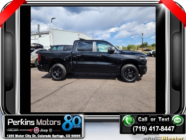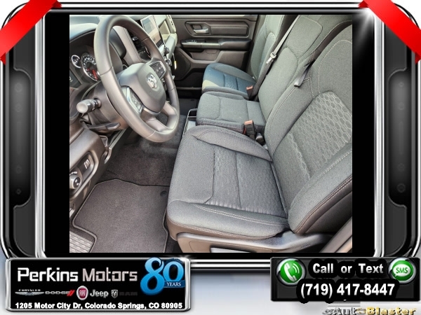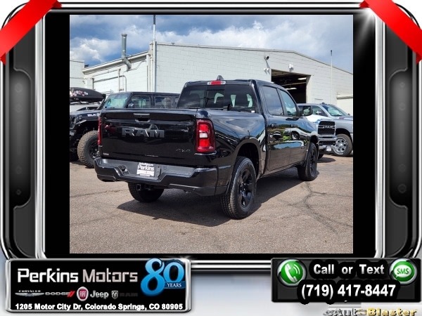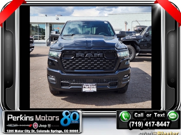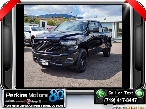 Factory MSRP: $52,805 $10,000 off MSRP! Priced below KBB Fair Purchase Price! Diamond Black Crystal Pearlcoat 2025 Ram 1500 Tradesman 4WD 8-Speed Automatic 3.6L V6 24V VVT<br><br>Check us out at www.perkinsmotors.com to see our specials! Since opening our doors in 1944, we’ve been proud to serve Colorado Springs, CO, and the surrounding areas of Pueblo, Castle Rock and Denver, CO. Throughout this time of being family owned for 80 years, we’ve maintained a firm commitment to our customers: to offer a wide selection of New Chrysler, Dodge, Fiat, Jeep, and Ram vehicles and quality pre-owned vehicles, and provide a quick, no-hassle car-buying process that ensures everyone drives off the lot satisfied with their purchase.<br><br>Night Edition (Anti-Spin Differential Rear Axle, Body Color Front Bumper, and Wheels: 18 x 8.0 Black Painted Aluminum), Quick Order Package 23A Tradesman, Tradesman Level 1 Equipment Group (2nd Row In Floor Storage Bins, 3 Rear Seat Head Restraints, 4 Way Front Headrests, 40/20/40 Split Bench Seat, Cloth Bench Seat, Front & Rear Floor Mats, Front Center Seat Cushion Storage, Manual Adjust 4-Way Driver Seat, Manual Adjust 4-Way Front Passenger Seat, Rear 60/40 Folding Seat, Rear Power Sliding Window, and SiriusXM Satellite Radio), 3.21 Rear Axle Ratio, 4-Wheel Disc Brakes, 6 Speakers, ABS brakes, Air Conditioning, AM/FM radio, Apple CarPlay/Android Auto, Auto High-beam Headlights, Black Exterior Mirrors, Brake assist, Compass, Cruise Control, Delay-off headlights, Driver door bin, Dual front impact airbags, Dual front side impact airbags, Electronic Stability Control, Exterior Mirrors w/Heating Element, Front anti-roll bar, Front Center Armrest, Front License Plate Bracket, Front reading lights, Front wheel independent suspension, Fully automatic headlights, Heated door mirrors, Heavy Duty Vinyl 40/20/40 Split Bench Seat, Illuminated entry, Low tire pressure warning, Manual Folding Exterior Mirrors, Manufacturer's Statement of Origin, Occupant sensing airbag, Outside temperature display, Overhead airbag, Overhead console, Panic alarm, ParkView Rear Back-Up Camera, Passenger door bin, Passenger vanity mirror, Power door mirrors, Power steering, Power windows, Radio data system, Radio: Uconnect 5 W w/8.4 Display, RAM Grille Badge - Black, Rear anti-roll bar, Rear step bumper, Remote keyless entry, Tachometer, Telescoping steering wheel, Tilt steering wheel, Traction control, Variably intermittent wipers, Voltmeter, and Wheels: 18 x 7.5 Steel Painted. Sale price includes all manufacture's incentives and dealer discounts. Sale price not available on lease or compatible with special APR. $4000 - 2025 National Retail Consumer Cash. Exp. 12/02/2024