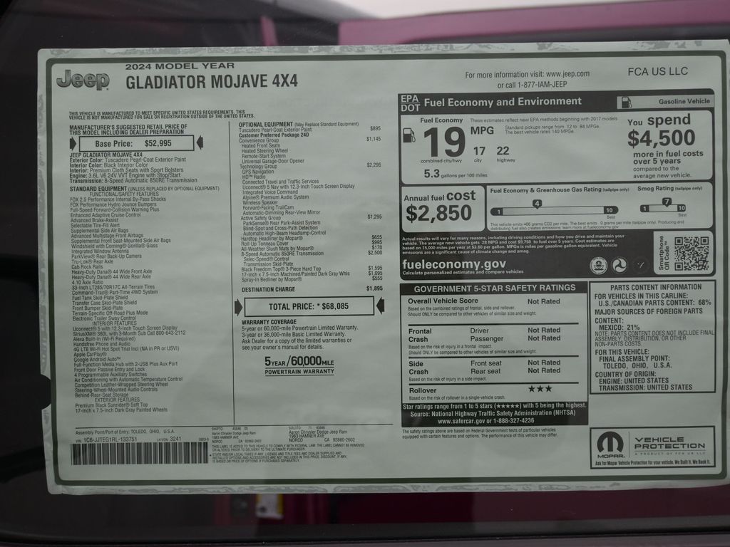 2024 Jeep Gladiator Mojave Tuscadero Pearlcoat Dealer Discount of $4,750 off MSRPExplore the latest models from Chrysler, Dodge, Jeep, and Ram at Aaron CDJR of Norco. Whether you're looking for a rugged Jeep Wrangler, a powerful Ram truck, or a sleek Chrysler sedan, our vast inventory has something for everyone. Experience exceptional customer service and find the perfect vehicle to match your lifestyle.NEW BATTERY. 17/22 City/Highway MPG 4WD 8-Speed Automatic 3.6L V6 24V VVT Price includes: $3250 - 2024 Bonus Cash . Exp. 02/03/2025