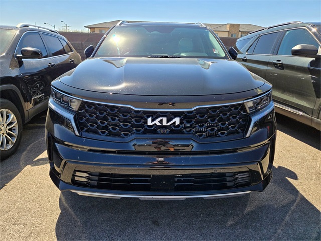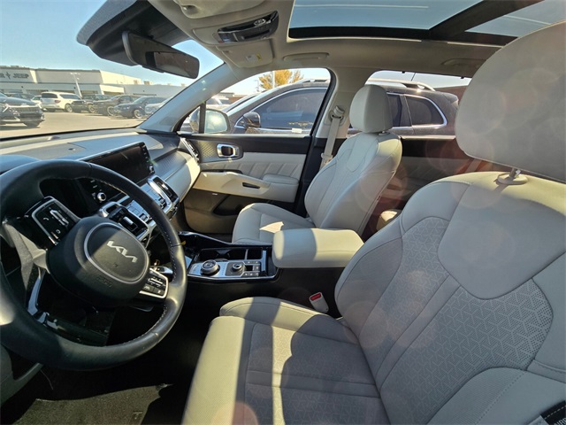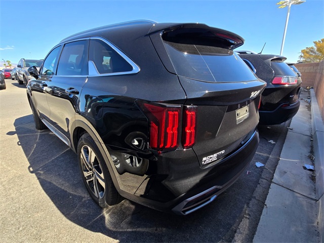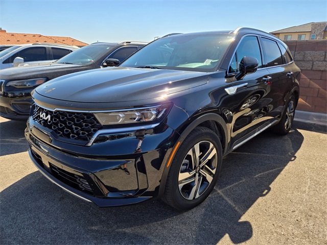 Recent Arrival!Odometer is 6526 miles below market average!36/33 City/Highway MPGAurora Black 2023 Kia Sorento Hybrid SX Prestige AWD 6-Speed Automatic 1.6L I4 DGI Hybrid Turbocharged DOHC 16V LEV3-ULEV70 1.6L I4 DGI Hybrid Turbocharged DOHC 16V LEV3-ULEV70.If you don't drive here, you can't save here!Price may not include recon fee. Panoramic Sunroof Package (LED Interior Lighting and Power Sunroof w/Power Sunshade), 1.6L I4 DGI Hybrid Turbocharged DOHC 16V LEV3-ULEV70, 12 Speakers, 3rd row seats: split-bench, 4-Wheel Disc Brakes, ABS brakes, Air Conditioning, Alloy wheels, AM/FM radio: SiriusXM, Apple CarPlay & Android Auto, Auto High-beam Headlights, Auto-dimming Rear-View mirror, Automatic temperature control, Axle Ratio: 3.510, Brake assist, Bumpers: body-color, Cargo Cover, Carpet Floor Mats, Delay-off headlights, Driver door bin, Driver vanity mirror, Dual front impact airbags, Dual front side impact airbags, Electronic Stability Control, Emergency communication system, Four wheel independent suspension, Front anti-roll bar, Front Bucket Seats, Front Center Armrest, Front dual zone A/C, Front fog lights, Front reading lights, Fully automatic headlights, Garage door transmitter: HomeLink, Heated & Ventilated Front Bucket Seats, Heated door mirrors, Heated front seats, Heated rear seats, Heated steering wheel, Illuminated entry, Knee airbag, Leather steering wheel, Low tire pressure warning, Memory seat, Navigation System, Occupant sensing airbag, Outside temperature display, Overhead airbag, Overhead console, Panic alarm, Passenger door bin, Passenger vanity mirror, Perforated Genuine Leather Seat Trim, Power door mirrors, Power driver seat, Power Liftgate, Power passenger seat, Power steering, Power windows, Radio data system, Radio: AM/FM/HD Radio/SiriusXM Audio System, Rain sensing wipers, Rear air conditioning, Rear anti-roll bar, Rear reading lights, Rear window defroster, Rear window wiper, Remote keyless entry, Roof rack: rails only, Security system, Smart Key w/ Push Button and Remote Start, Speed control, Speed-sensing steering, Split folding rear seat, Spoiler, Steering wheel mounted audio controls, Tachometer, Telescoping steering wheel, Tilt steering wheel, Traction control, Trip computer, Turn signal indicator mirrors, Variably intermittent wipers, Ventilated front seats, and Wheels: 19" Machine-Finished Alloy.