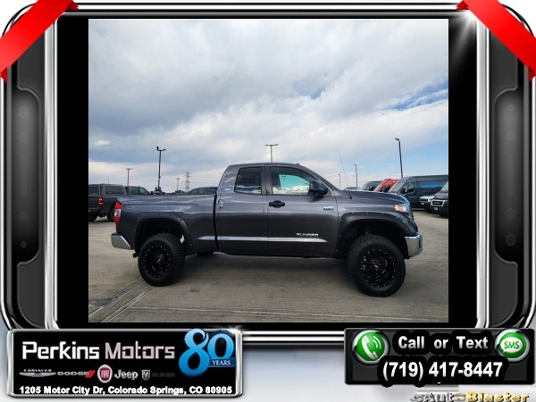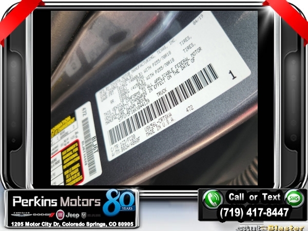 Midnight Black Metallic 4WD V8 6-Speed Automatic Electronic<br><br>4WD, Front Fog & Daytime Running Lights, Illuminated Entry System, Rear Under-Seat Storage Compartment, Sliding Rear Window w/Privacy Glass, SR5 Package.<br><br><br>CARFAX One-Owner. Clean CARFAX.<br><br>Check us out at www.perkinsmotors.com to see our specials! Since opening our doors in 1944, we’ve been proud to serve Colorado Springs, CO, and the surrounding areas of Pueblo, Castle Rock and Denver, CO. Throughout this time of being family owned for 80 years, we’ve maintained a firm commitment to our customers: to offer a wide selection of New Chrysler, Dodge, Fiat, Jeep, and Ram vehicles and quality pre-owned vehicles, and provide a quick, no-hassle car-buying process that ensures everyone drives off the lot satisfied with their purchase.<br><br><br>Awards:<br> * 2019 KBB.com Best Resale Value Awards * 2019 KBB.com Brand Image Awards<br><br>SR5 Package (Front Fog & Daytime Running Lights, Illuminated Entry System, Rear Under-Seat Storage Compartment, and Sliding Rear Window w/Privacy Glass), 4WD, 4-Wheel Disc Brakes, 4.30 Axle Ratio, ABS brakes, Air Conditioning, Auto High-beam Headlights, Brake assist, CD player, Cruise Control, Delay-off headlights, Driver door bin, Dual front impact airbags, Dual front side impact airbags, Electronic Stability Control, Exterior Parking Camera Rear, Front anti-roll bar, Front reading lights, Front wheel independent suspension, Fully automatic headlights, Heated door mirrors, Illuminated entry, Knee airbag, Low tire pressure warning, Occupant sensing airbag, Outside temperature display, Overhead airbag, Overhead console, Panic alarm, Passenger door bin, Power door mirrors, Power steering, Power windows, Rear reading lights, Rear step bumper, Remote keyless entry, Speed-sensing steering, Split folding rear seat, Tachometer, Tilt steering wheel, Traction control, Trip computer, and Voltmeter.
