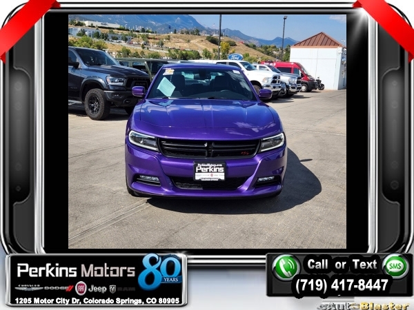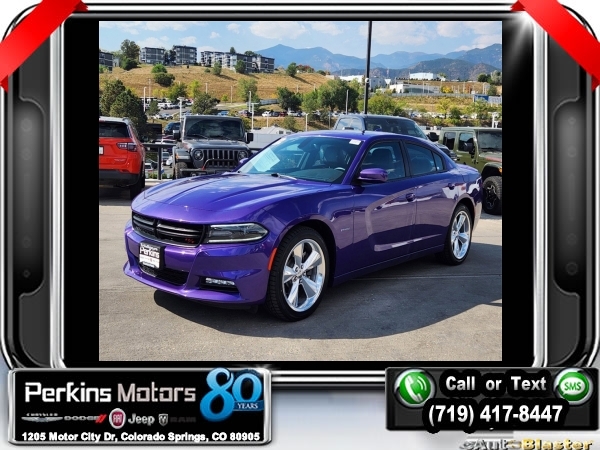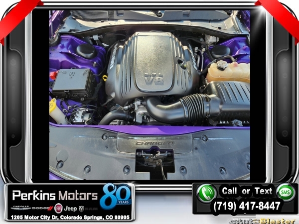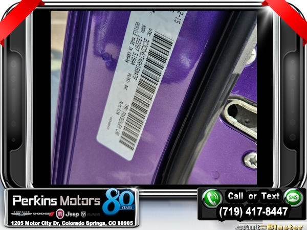 Plum Crazy Pearlcoat RWD HEMI 5.7L V8 Multi Displacement VVT 8-Speed Automatic<br><br>Black Artificial Leather, 3-Mode Electronic Stability Control, 3.07 Rear Axle Ratio, 5-Year SiriusXM Traffic Service, 5-Year SiriusXM Travel Link Service, Alcantara Suede/Nappa Leather Seats, Auto Adjust In Reverse Exterior Mirrors, Auto-Dimming Exterior Driver Mirror, Bi-Function HID Projector Head Lamps, Body Color Exterior Mirrors, Dodge Performance Pages, Driver & Passenger Lower LED Lamps, Driver Confidence Group, Exterior Mirrors w/Heating Element, Front Overhead LED Lighting, GPS Navigation, HD Radio, Heated 2nd Row Seats, Heated Steering Wheel, High Speed Engine Controller, Illuminated Rear Cupholders, Matte Black Grille-Matte Black Xhairs, Navigation & Travel Group, ParkSense Rear Park Assist System, Performance Steering Wheel, Performance Suspension, Power Adjustable Pedals w/Memory, Power Driver/Passenger 4-Way Lumbar Adjust, Power Front Driver/Passenger Seats, Power Heated Memory Mirrors w/Man F/Away, Power Sunroof, Power Tilt/Telescope Steering Column, Quick Order Package 29R Road/Track, R/T Heritage Badge, Radio: Uconnect 8.4 NAV, Radio/Driver Seat/Mirrors Memory, Rear Seat Armrest w/Storage Cupholder, Road/Track Performance Group, Security Alarm, SiriusXM Traffic, SiriusXM Travel Link, Super Track Pak, Ventilated Front Seats, Wheels: 20 x 8.0 Polished/Painted Aluminum.<br><br><br>CARFAX One-Owner. Clean CARFAX.<br><br>Check us out at www.perkinsmotors.com to see our specials! Since opening our doors in 1944, we’ve been proud to serve Colorado Springs, CO, and the surrounding areas of Pueblo, Castle Rock and Denver, CO. Throughout this time of being family owned for 80 years, we’ve maintained a firm commitment to our customers: to offer a wide selection of New Chrysler, Dodge, Fiat, Jeep, and Ram vehicles and quality pre-owned vehicles, and provide a quick, no-hassle car-buying process that ensures everyone drives off the lot satisfied with their purchase.<br><br><br>Awards:<br> * 2016 KBB.com 10 Best Used Cars Under $20,000<br><br>Driver Confidence Group, Navigation & Travel Group (5-Year SiriusXM Traffic Service, 5-Year SiriusXM Travel Link Service, GPS Navigation, HD Radio, Radio: Uconnect 8.4 NAV, SiriusXM Traffic, and SiriusXM Travel Link), Quick Order Package 29R Road/Track (3-Mode Electronic Stability Control, 3.07 Rear Axle Ratio, Alcantara Suede/Nappa Leather Seats, Auto Adjust In Reverse Exterior Mirrors, Auto-Dimming Exterior Driver Mirror, Bi-Function HID Projector Head Lamps, Body Color Exterior Mirrors, Dodge Performance Pages, Driver & Passenger Lower LED Lamps, Exterior Mirrors w/Heating Element, Front Overhead LED Lighting, Heated 2nd Row Seats, Heated Steering Wheel, High Speed Engine Controller, Illuminated Rear Cupholders, Matte Black Grille-Matte Black Xhairs, ParkSense Rear Park Assist System, Performance Steering Wheel, Performance Suspension, Power Adjustable Pedals w/Memory, Power Driver/Passenger 4-Way Lumbar Adjust, Power Front Driver/Passenger Seats, Power Heated Memory Mirrors w/Man F/Away, Power Tilt/Telescope Steering Column, R/T Heritage Badge, Radio/Driver Seat/Mirrors Memory, Rear Seat Armrest w/Storage Cupholder, Security Alarm, Super Track Pak, Ventilated Front Seats, and Wheels: 20 x 8.0 Polished/Painted Aluminum), Road/Track Performance Group, Black Artificial Leather, Power Sunroof, 4-Wheel Disc Brakes, 6 Speakers, ABS brakes, Air Conditioning, All Speed Traction Control, Alloy wheels, AM/FM radio: SiriusXM, Anti-whiplash front head restraints, Auto-dimming Rear-View mirror, Automatic temperature control, Body Color Fascia Applique, Brake assist, Bumpers: body-color, Compass, Cruise Control, Delay-off headlights, Driver door bin, Driver vanity mirror, Dual front impact airbags, Dual front side impact airbags, Electronic Stability Control, Emergency communication system: Uconnect Access, Four wheel independent suspension, Front anti-roll bar, Front Bucket Seats, Front Center Armrest