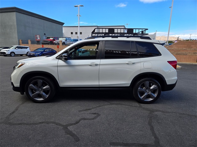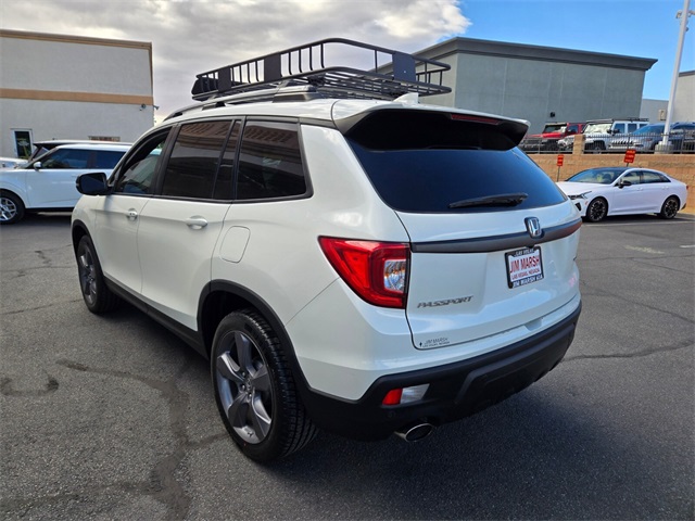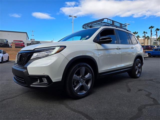 Priced below KBB Fair Purchase Price!White 2019 Honda Passport Touring FWD 9-Speed Automatic 3.5L V6 24V SOHC i-VTECIf you don't drive here, you can't save here!Price may not include recon fee. 10 Speakers, 4-Wheel Disc Brakes, 4.334 Axle Ratio, A/V remote: CabinControl, ABS brakes, Air Conditioning, Alloy wheels, AM/FM radio: SiriusXM, Apple CarPlay/Android Auto, Auto High-beam Headlights, Auto-dimming Rear-View mirror, Automatic temperature control, Blind Spot Information (BSI) System warning, Brake assist, Bumpers: body-color, Compass, Delay-off headlights, Driver door bin, Driver vanity mirror, Driver's Seat Mounted Armrest, Dual front impact airbags, Dual front side impact airbags, Electronic Stability Control, Emergency communication system: HondaLink, Exterior Parking Camera Rear, Forward collision: Collision Mitigation Braking System (CMBS) + FCW mitigation, Four wheel independent suspension, Front anti-roll bar, Front Bucket Seats, Front Center Armrest, Front dual zone A/C, Front fog lights, Front reading lights, Fully automatic headlights, Garage door transmitter: HomeLink, Heated door mirrors, Heated Front Bucket Seats, Heated front seats, Heated rear seats, Illuminated entry, Lane departure: Lane Keeping Assist System (LKAS) active, Leather-Trimmed Seats, Low tire pressure warning, Memory seat, Navigation system: Honda Satellite-Linked Navigation System, Occupant sensing airbag, Outside temperature display, Overhead airbag, Overhead console, Panic alarm, Passenger door bin, Passenger seat mounted armrest, Passenger vanity mirror, Power door mirrors, Power driver seat, Power Liftgate, Power moonroof, Power passenger seat, Power steering, Power windows, Radio data system, Radio: 540-Watt Premium Audio System w/10 Speakers, Rear air conditioning, Rear anti-roll bar, Rear reading lights, Rear seat center armrest, Rear window defroster, Rear window wiper, Remote keyless entry, Roof rack: rails only, Security system, Speed control, Speed-sensing steering, Split folding rear seat, Spoiler, Steering wheel mounted audio controls, Tachometer, Telescoping steering wheel, Tilt steering wheel, Traction control, Trip computer, Turn signal indicator mirrors, Variably intermittent wipers, and Wheels: 20" Solid-Spoke Pewter Gray Alloy.