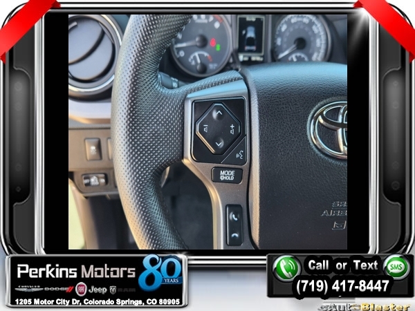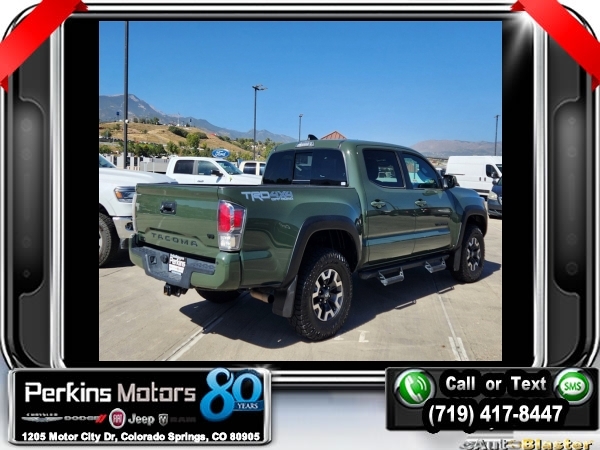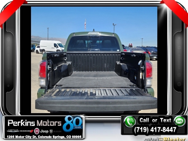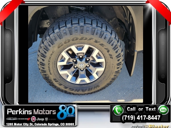 Green 4WD 3.5L V6 PDI DOHC 24V LEV3-ULEV70 278hp 6-Speed<br><br>4WD, 120V/400W Deck Mounted AC Power, Advanced Technology Package, Auto-Dimming Rearview Mirror w/HomeLink, Automatic Headlights, Black Overfenders, Blind Spot Monitor w/Rear Cross Traffic Alert, Engine Immobilizer, Heated Front Seats, Leather Seat Trim, Mesh Front Grille, Power Sliding Rear Window w/Privacy Glass, Power Tilt/Slide Moonroof, Radio: Entune Premium JBL AM/FM/CD w/Nav & App Ste, Rear Parking Assist Sonar, TRD Premium Off Road Package.<br><br><br>Clean CARFAX.<br><br>Check us out at www.perkinsmotors.com to see our specials! Since opening our doors in 1944, we’ve been proud to serve Colorado Springs, CO, and the surrounding areas of Pueblo, Castle Rock and Denver, CO. Throughout this time of being family owned for 80 years, we’ve maintained a firm commitment to our customers: to offer a wide selection of New Chrysler, Dodge, Fiat, Jeep, and Ram vehicles and quality pre-owned vehicles, and provide a quick, no-hassle car-buying process that ensures everyone drives off the lot satisfied with their purchase.<br><br><br>Advanced Technology Package (Blind Spot Monitor w/Rear Cross Traffic Alert, Mesh Front Grille, and Rear Parking Assist Sonar), TRD Premium Off Road Package (120V/400W Deck Mounted AC Power, Auto-Dimming Rearview Mirror w/HomeLink, Automatic Headlights, Black Overfenders, Engine Immobilizer, Heated Front Seats, Leather Seat Trim, Power Sliding Rear Window w/Privacy Glass, and Power Tilt/Slide Moonroof), 4WD, Radio: Entune Premium JBL AM/FM/CD w/Nav & App Ste, ABS brakes, Air Conditioning, AM/FM radio: SiriusXM, Anti-whiplash front head restraints, Apple CarPlay/Android Auto, Auto High-beam Headlights, Automatic temperature control, Brake assist, Bumpers: body-color, Cruise Control, Driver door bin, Dual front impact airbags, Dual front side impact airbags, Electronic Stability Control, Emergency communication system: Safety Connect with 1-year trial, Front anti-roll bar, Front Bucket Seats, Front Center Armrest, Front dual zone A/C, Front reading lights, Front wheel independent suspension, Illuminated entry, Knee airbag, Low tire pressure warning, Occupant sensing airbag, Outside temperature display, Overhead airbag, Overhead console, Passenger door bin, Power door mirrors, Power steering, Power windows, Rear step bumper, Speed-sensing steering, Split folding rear seat, Steering wheel mounted audio controls, Tachometer, Telescoping steering wheel, Tilt steering wheel, Traction control, and Variably intermittent wipers.