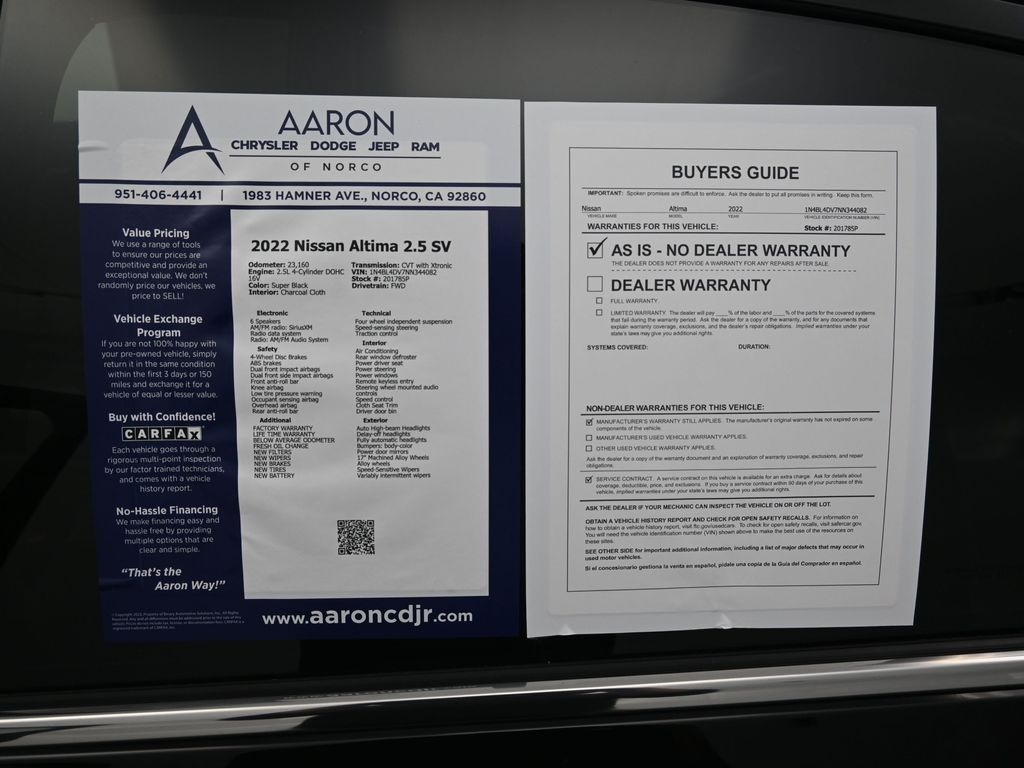 Priced below KBB Fair Purchase Price!FACTORY WARRANTY, LIFE TIME WARRANTY, BELOW AVERAGE ODOMETER, FRESH OIL CHANGE, NEW FILTERS, NEW WIPERS, Altima 2.5 SV, 4D Sedan, 2.5L 4-Cylinder DOHC 16V, CVT with Xtronic, FWD, Blind Spot Warning, Knee airbag, Low tire pressure warning, NissanConnect featuring Apple CarPlay and Android Auto, Overhead airbag, Rear Parking Sensors.For help with any Vehicle needs please call us directly at 951-621-1288.Clean CARFAX.CARFAX One-Owner.