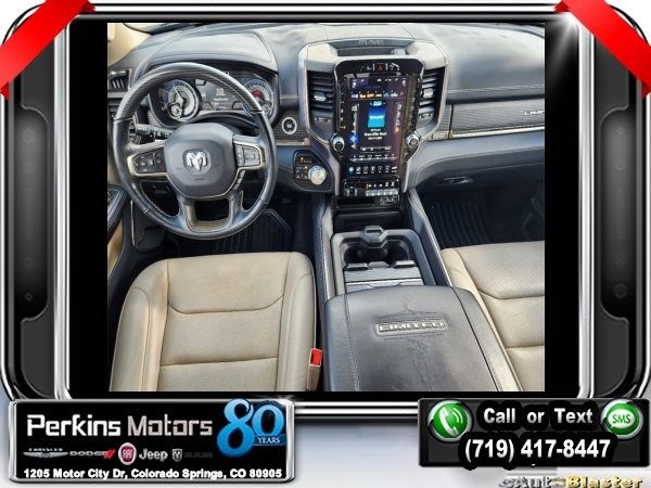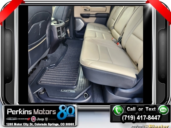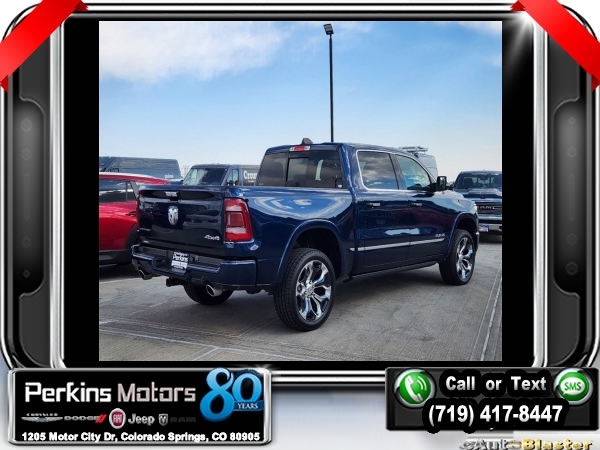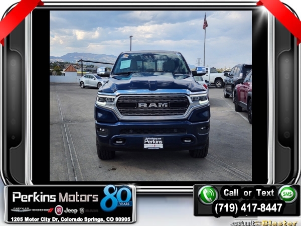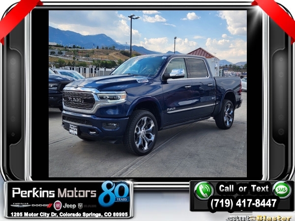 Patriot Blue Pearlcoat 4WD EcoDiesel 3.0L V6 8-Speed Automatic<br><br>3.92 Rear Axle Ratio, Adaptive Cruise Control w/Stop & Go, Body Color Bumper Group, Body Color Front Bumper, Body Color Rear Bumper w/Step Pads, Dome Dual LED Reading Lamp, Dual-Pane Panoramic Sunroof, Full Speed Forward Collision Warning Plus, harman/kardon 19 Speaker Premium Sound, Lane Keep Assist, LED Dome/Reading Lamp, Limited Level 1 Equipment Group, Navigation System, No Satellite Coverage w/HI/AK/PR/VI/GU, Parallel & Perp Park Assist w/Stop, Quick Order Package 28M Limited, Radio: Uconnect 12 w/Navigation, Ventilated Rear Seats, Wheels: 22 x 9 Polish/Painted w/Inserts.<br><br><br>CARFAX One-Owner.<br><br>Check us out at www.perkinsmotors.com to see our specials! Since opening our doors in 1944, we’ve been proud to serve Colorado Springs, CO, and the surrounding areas of Pueblo, Castle Rock and Denver, CO. Throughout this time of being family owned for 80 years, we’ve maintained a firm commitment to our customers: to offer a wide selection of New Chrysler, Dodge, Fiat, Jeep, and Ram vehicles and quality pre-owned vehicles, and provide a quick, no-hassle car-buying process that ensures everyone drives off the lot satisfied with their purchase.<br><br><br>Awards:<br> * JD Power Automotive Performance, Execution and Layout (APEAL) Study<br><br>Body Color Bumper Group (Body Color Front Bumper and Body Color Rear Bumper w/Step Pads), Limited Level 1 Equipment Group (Adaptive Cruise Control w/Stop & Go, Full Speed Forward Collision Warning Plus, Lane Keep Assist, Parallel & Perp Park Assist w/Stop, and Ventilated Rear Seats), Quick Order Package 28M Limited, 3.92 Rear Axle Ratio, Dome Dual LED Reading Lamp, Dual-Pane Panoramic Sunroof, harman/kardon 19 Speaker Premium Sound, LED Dome/Reading Lamp, Navigation System, No Satellite Coverage w/HI/AK/PR/VI/GU, Radio: Uconnect 12 w/Navigation, Wheels: 22 x 9 Polish/Painted w/Inserts, 10 Speakers, 33 Gallon Fuel Tank, 4-Wheel Disc Brakes, 48V Belt Starter Generator, ABS brakes, Adjustable pedals, Air Conditioning, Alloy wheels, AM/FM radio: SiriusXM with 360L, Anti-Spin Differential Rear Axle, Apple CarPlay/Android Auto, Audio memory, Auto High-beam Headlights, Auto-dimming door mirrors, Auto-dimming Rear-View mirror, Auto-leveling suspension, Automatic temperature control, Bodyside moldings, Brake assist, Bumpers: chrome, Compass, Cruise Control, Delay-off headlights, Driver door bin, Driver vanity mirror, Dual front impact airbags, Dual front side impact airbags, Electronic Stability Control, Emergency communication system: SiriusXM Guardian, Front anti-roll bar, Front Bucket Seats, Front Center Armrest w/Storage, Front dual zone A/C, Front fog lights, Front reading lights, Front wheel independent suspension, Fully automatic headlights, Garage door transmitter, Genuine wood console insert, Genuine wood dashboard insert, Genuine wood door panel insert, Heated door mirrors, Heated front seats, Heated rear seats, Heated steering wheel, Illuminated entry, Leather steering wheel, Low tire pressure warning, Memory seat, Occupant sensing airbag, Outside temperature display, Overhead airbag, Overhead console, Panic alarm, ParkView Rear Back-Up Camera, Passenger door bin, Passenger vanity mirror, Pedal memory, Power door mirrors, Power driver seat, Power passenger seat, Power steering, Power windows, Premium Leather Trimmed Bucket Seats, Radio data system, Rain sensing wipers, Rear anti-roll bar, Rear seat center armrest, Rear step bumper, Rear window defroster, Remote keyless entry, Security system, Split folding rear seat, Steering wheel mounted audio controls, Tachometer, Telescoping steering wheel, Tilt steering wheel, Traction control, Trailer Brake Control, Trip computer, Turn signal indicator mirrors, Variably intermittent wipers, Ventilated front seats, Voltmeter, and Wheels: 20 x 9 Polished w/Inserts.