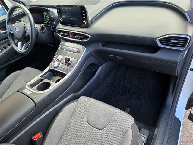 Priced below KBB Fair Purchase Price!Odometer is 10888 miles below market average!Quartz White 2022 Hyundai Santa Fe Plug-In Hybrid SEL Convenience AWD 6-Speed Automatic with Shiftronic I4 I4.If you don't drive here, you can't save here!Price may not include recon fee. Option Group 01, I4, 3.510 Axle Ratio, 4-Wheel Disc Brakes, 6 Speakers, ABS brakes, Air Conditioning, Alloy wheels, AM/FM radio: SiriusXM, Apple CarPlay & Android Auto, Auto High-beam Headlights, Auto-dimming Rear-View mirror, Automatic temperature control, Brake assist, Bumpers: body-color, Cargo Net, Cargo Tray, Carpeted Floor Mats, Delay-off headlights, Driver door bin, Driver vanity mirror, Dual front impact airbags, Dual front side impact airbags, Electronic Stability Control, Emergency communication system, Exterior Parking Camera Rear, First Aid Kit, Four wheel independent suspension, Front anti-roll bar, Front Bucket Seats, Front Center Armrest, Front dual zone A/C, Front reading lights, Fully automatic headlights, Garage door transmitter: HomeLink, Heated door mirrors, Heated Front Bucket Seats, Heated front seats, Illuminated entry, Leather steering wheel, Low tire pressure warning, Mudguards, Occupant sensing airbag, Outside temperature display, Overhead airbag, Overhead console, Panic alarm, Passenger door bin, Passenger vanity mirror, Power door mirrors, Power driver seat, Power Liftgate, Power steering, Power windows, Radio: AM/FM Display Audio, Rear anti-roll bar, Rear Parking Sensors, Rear seat center armrest, Rear window defroster, Rear window wiper, Remote keyless entry, Roof rack: rails only, Security system, Speed control, Speed-sensing steering, Split folding rear seat, Spoiler, Steering wheel mounted audio controls, Tachometer, Telescoping steering wheel, Tilt steering wheel, Traction control, Trip computer, Turn signal indicator mirrors, Variably intermittent wipers, Wheels: 19" x 7.5J Alloy, and YES Essentials Stain-Resistant Cloth Seat Trim.