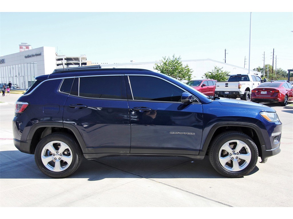 Central Houston Nissan is proud to present you with another True Market Priced Pre-Owned Vehicle. This 2020 Jeep Compass Latitude is loaded with the following Factory Options: 4WD Cold Weather Group (All-Season Floor Mats, Heated Front Seats, Reversible Carpet/Vinyl Cargo Mat, and Windshield Wiper De-Icer), Popular Equipment Group (Power 8-Way Driver/Manual 6-Way Passenger Seats), Quick Order Package 2GJ, 4WD, 3.73 Axle Ratio, 3.833 Axle Ratio, 4-Wheel Disc Brakes, 6 Speakers, ABS brakes, Air Conditioning, Alloy wheels, AM/FM radio: SiriusXM, Anti-whiplash front head restraints, Apple CarPlay, Apple CarPlay/Android Auto, Automatic temperature control, Bluetooth® Streaming Audio, Brake assist, Bumpers: body-color, Compass, Delay-off headlights, Driver door bin, Driver vanity mirror, Dual front impact airbags, Dual front side impact airbags, Electronic Stability Control, Four wheel independent suspension, Front anti-roll bar, Front Bucket Seats, Front Center Armrest w/Storage, Front dual zone A/C, Front fog lights, Front reading lights, Fully automatic headlights, Google Android Auto, GPS Antenna Input, Heated door mirrors, Illuminated entry, Knee airbag, Low tire pressure warning, Manufacturer's Statement of Origin (DISC), Media Hub (USB, AUX), Occupant sensing airbag, Outside temperature display, Overhead airbag, Overhead console, Panic alarm, ParkView Rear Back-Up Camera, Passenger door bin, Passenger vanity mirror, Power door mirrors, Power steering, Power windows, Premium Cloth/Vinyl Bucket Seats, Radio: Uconnect 4 w/7" Display, Rear anti-roll bar, Rear seat center armrest, Rear window defroster, Rear window wiper, Remote keyless entry, Roof rack: rails only, Speed control, Split folding rear seat, Spoiler, Steering wheel mounted audio controls, Tachometer, Telescoping steering wheel, Tilt steering wheel, Traction control, Trip computer, USB Host Flip, Variably intermittent wipers, and Wheels: 17" x 7.0" Silver Painted Aluminum!!Central Houston Nissan is more than just your typical car dealership. When our customers visit us, our goal is to provide quality vehicles, exceptional service and a friendly atmosphere. Our staff has been trained to create ease during your purchase or service experience and we are always making sure you get everything you want and deserve out of your visit. Our vision and mission is an employee-centered and customer-focused environment. Vehicles may be subject to prep package and market adjustment. When you buy from Central Houston Nissan, we'll make it the best car buying experience you've ever had. When you purchase a New Nissan or a qualifying Pre-Owned vehicle from Central Houston Nissan, you are automatically enrolled into our Central Houston Nissan Central Care Program at no cost to you. You can’t beat that! Vehicles may be subject to prep package and market adjustment. Stop by 2901 S Loop W, Houston, Texas 77054 today!!!