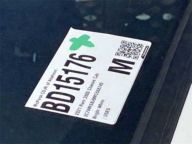 Clean CARFAX. CARFAX One-Owner. INTERIOR & EXTERIOR PROFESSIONALLY DETAILED FOR DELIVERY, MCPEEK CHRYSLER DODGE JEEP RAM FAMILY OWNED AND OPERATED SINCE 1961 !!!!!, 102 mph Maximum Speed, 115V Auxiliary Power Outlet, 17" x 6" Argent Steel Wheels, 220 Amp Alternator, 4 Speakers, 4-Wheel Disc Brakes, 4.44 Axle Ratio, 40/20/40 Split Bench Seat, 400W Inverter, 5.0" Touchscreen Display, ABS brakes, Air Conditioning, AM/FM radio, Black Key Fob, Bright Front Bumper, Bright Wheel Skins, Cargo & CHMSL Lamp, Center Hub, Chrome Appearance Group, Chrome Grille Surround, Delay-off headlights, Door Sill Scuff Pads, Driver door bin, Dual front impact airbags, Dual rear wheels, Electronic Stability Control, Exterior Mirrors Courtesy Lamps, Exterior Mirrors w/Heating Element, Exterior Mirrors w/Supplemental Signals, For More Info, Call 800-643-2112, Front 1-Touch Down Power Windows, Front anti-roll bar, Front Armrest w/Cupholders, Front Center Armrest w/Storage, Front License Plate Bracket, Fully automatic headlights, Glove Box, GPS Antenna Input, Halogen Quad Headlamps, HD Vinyl 40/20/40 Split Bench Seat, Integrated Voice Command w/Bluetooth, Manual Adjust 4-Way Driver Seat, Manual Adjust 4-Way Front Passenger Seat, Map/Courtesy Lamp, Matte Black Grille Surround, Matte Black Mesh Grille w/Chrome, Mirror Running Lights, Occupant sensing airbag, Overhead Console, Overhead Cupholder Lamp, Passenger door bin, Passenger vanity mirror, Power Black Trailer Tow Mirrors, Power steering, Quick Order Package 27A Tradesman, Radio data system, Radio: Uconnect 3 w/5" Display, Radio: Uconnect 3.0, Rear anti-roll bar, Rear Dome Lamp, Remote Keyless Entry, SiriusXM Radio Service, SiriusXM Satellite Radio, Speed control, Speed Sensitive Power Locks, Tachometer, Temperature & Compass Gauge, Tilt steering wheel, Traction control, Tradesman Level 1 Equipment Group, Trailer Brake Control, Trailer Light Check, Upgraded Door Trim Panels, Urethane Shift Control, USB Host Flip, Variably intermittent wipers, Voltmeter, Wheels: 17" x 6" Steel Chrome Clad.Bright White Clearcoat 2021 Ram 3500 Tradesman 167.5 WB RWD Aisin 6-Speed AutomaticReceive Free lube and oil filter changes for up to 45,000 miles for 3 years!!! McPeek's Dodge of Anahiem 1221 S. Auto Center Drive Anahiem, CA 92806 714-262-4902.