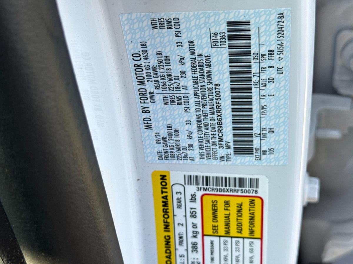 Discover the perfect blend of capability, style, and convenience in the 2024 Ford Bronco Sport Big Bend. This exceptional SUV is a true standout, offering a captivating combination of rugged performance and refined sophistication.Boasting a robust 1.5L EcoBoost engine paired with an 8-speed automatic transmission and 4-wheel drive, the Bronco Sport Big Bend delivers exceptional power and off-road prowess. Enjoy an impressive fuel efficiency of 25 mpg in the city and 29 mpg on the highway, making this SUV a practical and economical choice.Key features include:• Convenience Package with Premium Wrapped Steering Wheel, Wireless Charging Pad, Heated Front Bucket Seats, and more• 18" Ebony Black-Painted Aluminum Wheels• Collision Warning System• Parking Sensors• Premium Sound SystemIndulge in the premium amenities that elevate your driving experience, such as the SYNC 3 Communications & Entertainment System, Automatic Temperature Control, and Remote Keyless Entry. Safety is also a top priority, with features like Dual Front Impact Airbags, Electronic Stability Control, and Rear Parking Sensors providing you and your loved ones with peace of mind.With only 3,528 miles on the odometer, this 2024 Ford Bronco Sport Big Bend is a true gem. As a one-owner vehicle with a clean CARFAX report, you can trust that this SUV has been well-maintained and cared for.Discover the perfect blend of capability, style, and convenience in the 2024 Ford Bronco Sport Big Bend. Experience the thrill of the open road and the confidence to take on any adventure. Visit our showroom today and let us demonstrate how this exceptional SUV can enhance your driving experience.