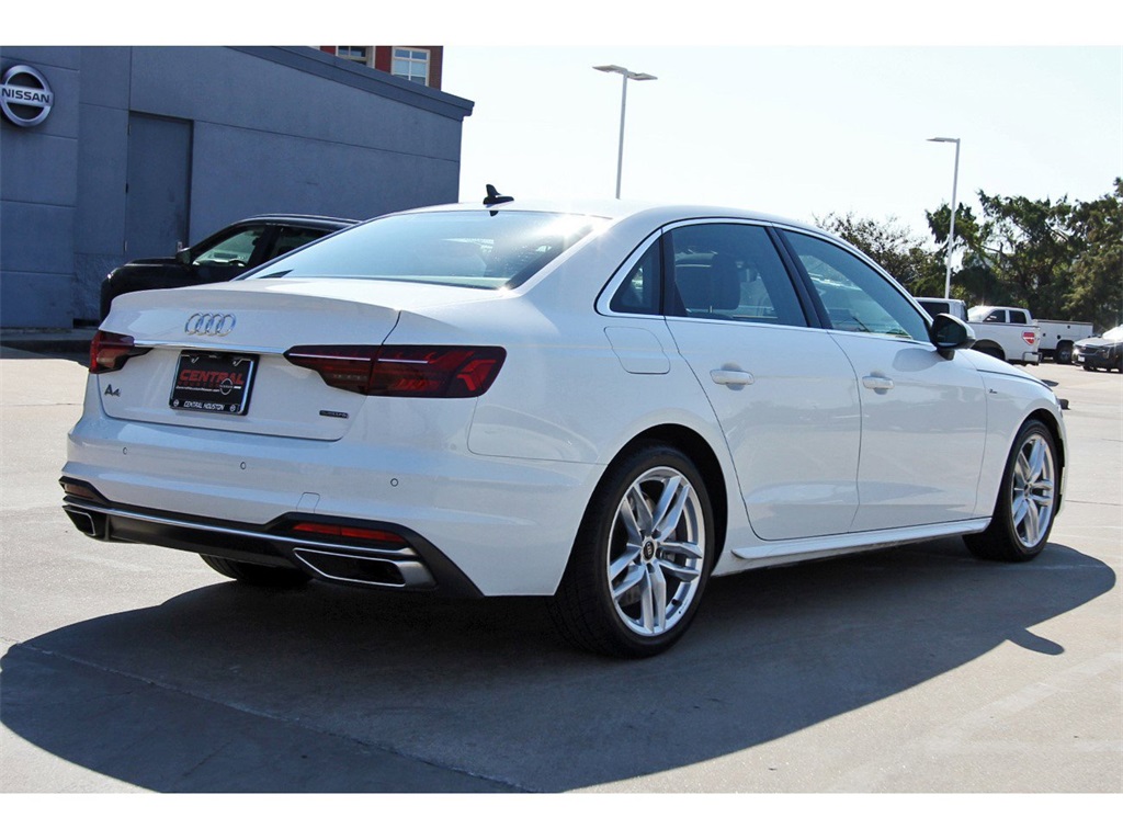 Central Houston Nissan is proud to present you with another True Market Priced Pre-Owned Vehicle. This 2023 Audi A4 45 S line Premium Plus quattro Nissan CPO Select is loaded with the following Factory Options: Nissan CPO Select Certified, 7-Speed Automatic S tronic, quattro, Black Leather, ABS brakes, Alloy wheels, Compass, Electronic Stability Control, Front dual zone A/C, Heated door mirrors, Heated front seats, Heated Front Sport Bucket Seats, Illuminated entry, Low tire pressure warning, Power moonroof, Remote keyless entry, and Traction control Convenience Package, Premium Plus Package (2 Rear USB Charge Ports, Audi Active Lane Assist, Audi Phone Box, Audi Virtual Cockpit Plus, Bang & Olufsen Sound System w/3D Sound, Hands-On Detection Steering Wheel, Leatherette Covered Center Console & Door Armrests, Power Folding Exterior Mirrors, Top View Camera System, and Traffic Jam Assist), Nissan CPO Select Certified, 7-Speed Automatic S tronic, quattro, Black Leather, ABS brakes, Alloy wheels, Compass, Electronic Stability Control, Front dual zone A/C, Heated door mirrors, Heated front seats, Heated Front Sport Bucket Seats, Illuminated entry, Low tire pressure warning, Power moonroof, Remote keyless entry, Traction control, 10 Speakers, 4-Wheel Disc Brakes, Air Conditioning, AM/FM radio, Anti-whiplash front head restraints, Audi smartphone interface (Apple CarPlay/Android Auto), Auto High-beam Headlights, Auto-dimming Rear-View mirror, Automatic temperature control, Brake assist, Bumpers: body-color, Delay-off headlights, Driver door bin, Driver vanity mirror, Dual front impact airbags, Dual front side impact airbags, Emergency communication system: Audi connect CARE, Exterior Parking Camera Rear, Four wheel independent suspension, Front anti-roll bar, Front Bucket Seats, Front Center Armrest, Front fog lights, Front reading lights, Garage door transmitter: HomeLink, Genuine wood dashboard insert, Genuine wood door panel insert, Knee airbag, Leather Seating Surfaces, Leather Shift Knob, Leather steering wheel, Occupant sensing airbag, Outside temperature display, Overhead airbag, Overhead console, Panic alarm, Passenger door bin, Passenger vanity mirror, Power door mirrors, Power driver seat, Power passenger seat, Power steering, Power windows, Radio data system, Radio: Audi Sound System, Rain sensing wipers, Rear air conditioning, Rear anti-roll bar, Rear fog lights, Rear reading lights, Rear seat center armrest, Rear window defroster, Speed control, Speed-sensing steering, Speed-Sensitive Wipers, Split folding rear seat, Steering wheel mounted audio controls, Tachometer, Telescoping steering wheel, Tilt steering wheel, Trip computer, Turn signal indicator mirrors, Variably intermittent wipers, and Wheels: 18" 5-Double-Spoke Design!!Central Houston Nissan is more than just your typical car dealership. When our customers visit us, our goal is to provide quality vehicles, exceptional service and a friendly atmosphere. Our staff has been trained to create ease during your purchase or service experience and we are always making sure you get everything you want and deserve out of your visit. Our vision and mission is an employee-centered and customer-focused environment. Vehicles may be subject to prep package and market adjustment. When you buy from Central Houston Nissan, we'll make it the best car buying experience you've ever had. When you purchase a New Nissan or a qualifying Pre-Owned vehicle from Central Houston Nissan, you are automatically enrolled into our Central Houston Nissan Central Care Program at no cost to you. You can’t beat that! Vehicles may be subject to prep package and market adjustment. Stop by 2901 S Loop W, Houston, Texas 77054 today!!!