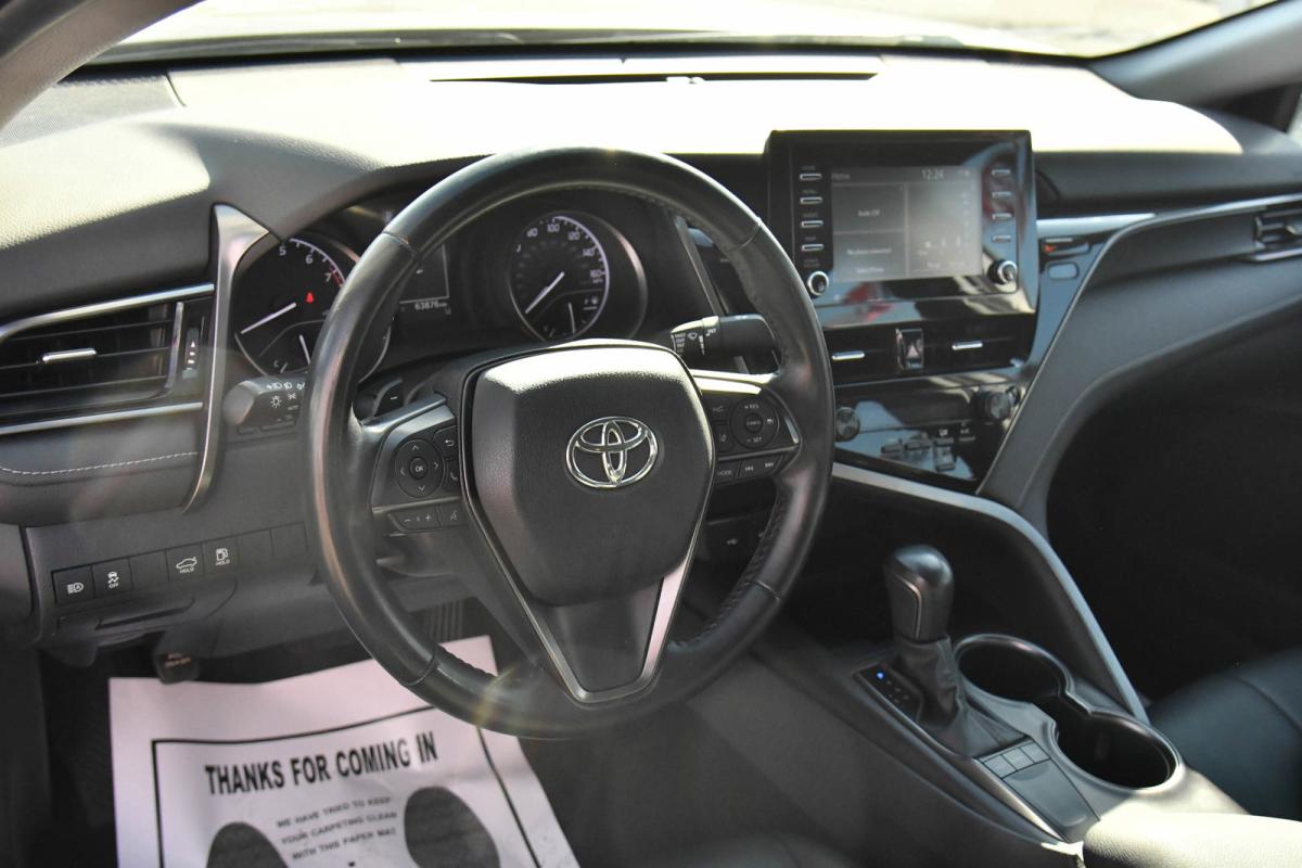 Scores 39 Highway MPG and 28 City MPG! This Toyota Camry boasts a Regular Unleaded I-4 2.5 L/152 engine powering this Automatic transmission. Variable Intermittent Wipers, Urethane Gear Shifter Material, Trunk Rear Cargo Access.*This Toyota Camry Comes Equipped with These Options *Trip Computer, Transmission: 8-Speed Direct Shift ECT-i Automatic -inc: sequential shift mode and paddle shifters, Toyota Safety Sense (TSS) 2.5+, Tires: 235/45R18 AS, Tire Pressure Monitor System (TPMS) Tire Specific Low Tire Pressure Warning, Strut Front Suspension w/Coil Springs, Steel Spare Wheel, Single Stainless Steel Exhaust w/Polished Tailpipe Finisher, Side Impact Beams, Seats w/Leatherette Back Material.