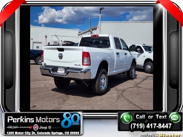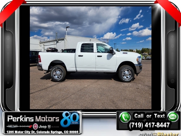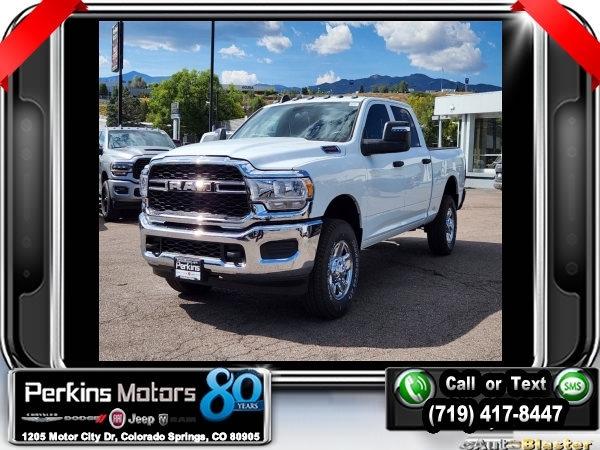 Factory MSRP: $59,165 $12,000 off MSRP! Priced below KBB Fair Purchase Price! Bright White Clearcoat 2024 Ram 2500 Tradesman 4WD 8-Speed Automatic 6.4L V8<br><br>Check us out at www.perkinsmotors.com to see our specials! Since opening our doors in 1944, we’ve been proud to serve Colorado Springs, CO, and the surrounding areas of Pueblo, Castle Rock and Denver, CO. Throughout this time of being family owned for 80 years, we’ve maintained a firm commitment to our customers: to offer a wide selection of New Chrysler, Dodge, Fiat, Jeep, and Ram vehicles and quality pre-owned vehicles, and provide a quick, no-hassle car-buying process that ensures everyone drives off the lot satisfied with their purchase.<br><br>Chrome Appearance Group (Bright Front Bumper, Bright Rear Bumper, Center Hub, Chrome Grille Surround, Chrome Headlamp Bezels, Matte Black Mesh Grille w/Chrome, and Wheels: 18 x 8.0 Steel Chrome Clad), Protection Group (Tow Hooks), Quick Order Package 2GA Tradesman, Snow Chief Group (Anti-Spin Differential Rear Axle, Auxiliary Switches Prep, Clearance Lamps, Dash Pass Thru Wire Circuits, and I/P Mounted Auxiliary Switches), Tradesman Level 2 Equipment Group (2 Way Rear Headrest Seat, 4 Way Front Headrests, 40/20/40 Split Bench Seat, Black Exterior Mirrors, Cloth 40/20/40 Bench Seat, Exterior Mirrors Courtesy Lamps, Exterior Mirrors w/Heating Element, Exterior Mirrors w/Supplemental Signals, For More Info, Call 800-643-2112, Front Armrest w/Cupholders, Manual Adjust 4-Way Driver Seat, Manual Adjust 4-Way Front Passenger Seat, Manual Folding Exterior Mirrors, Manual Telescoping Mirrors, Mirror Running Lights, Power Adjust Mirrors, Power Adjustable Convex Aux Mirrors, Power Heated Folding Telescope Mirrors, Rear Folding Seat, Rear Power Sliding Window, Rear Window Defroster, Remote USB Port - Charge Only, SiriusXM Radio Service, SiriusXM Satellite Radio, and Storage Tray), 17 x 7.5 Steel Styled Wheels, 220 Amp Alternator, 3.73 Axle Ratio, 4-Wheel Disc Brakes, 4.10 Axle Ratio, 4G LTE Wi-Fi Hot Spot, 6 Speakers, 8.4 Touchscreen Display, ABS brakes, Active Noise Control System, Air Conditioning, All R1 Low Radios, All Radio Equipped Vehicles, AM/FM radio, Apple CarPlay, Auto Power-Folding Mirrors, Bluetooth Handsfree Phone & Audio, Brake assist, Carpet Floor Covering, Compass, Connectivity - US/Canada, Cruise Control, Delay-off headlights, Driver door bin, Dual Alternators Rated At 380 Amps, Dual front impact airbags, Dual front side impact airbags, Electric Shift-On-The-Fly Transfer Case, Electronic Stability Control, Electronically Controlled Throttle, Emergency communication system: SiriusXM Guardian, For Details, Visit DriveUconnect.com, Forward & Reverse Utility Lights, Front & Rear Floor Mats, Front anti-roll bar, Front Center Armrest w/Storage, Front License Plate Bracket, Front reading lights, Fully automatic headlights, Global Telematics Box Module (TBM), Google Android Auto, GPS Antenna Input, Heavy Duty Vinyl 40/20/40 Split Bench Seat, Illuminated entry, Integrated Center Stack Radio, Integrated Voice Command w/Bluetooth, Low tire pressure warning, Manufacturer's Statement of Origin, MOPAR Front & Rear Rubber Floor Mats, Occupant sensing airbag, Outside temperature display, Overhead airbag, Overhead console, ParkView Rear Back-Up Camera, Passenger door bin, Passenger vanity mirror, Power Heated Fold Telescope Mirrors, Power steering, Power Telescoping Mirrors, Power windows, Radio data system, Radio: Uconnect 3 w/5 Display, Radio: Uconnect 5 W w/8.4 Display, Rear anti-roll bar, Rear step bumper, Selectable Tire Fill Alert, Tachometer, Tilt steering wheel, Tip Start, Traction control, Trailer Brake Control, Trailer Light Check, Variably intermittent wipers, and VoltmeteR. Sale price includes all manufacture's incentives and dealer discounts. Sale price not available on lease or compatible with special APR. $1000 - 2024 Bonus Cash . Exp. 10/31/2024 $2000 - 2024 Denver BC Bonus Cash . Exp. 10/31/2024