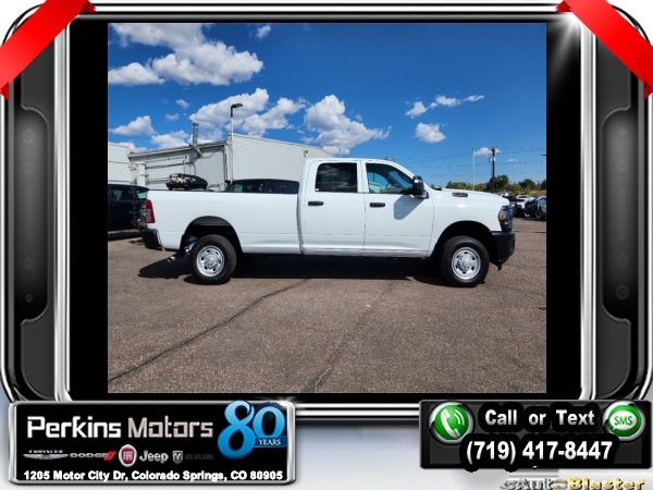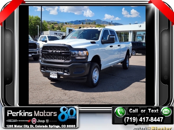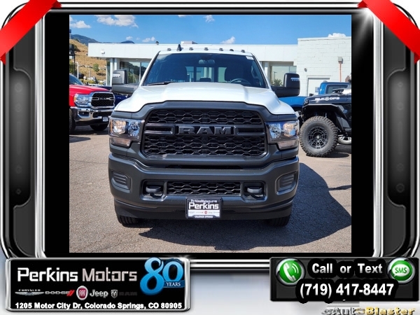 Factory MSRP: $58,290 $12,000 off MSRP! Priced below KBB Fair Purchase Price! Bright White Clearcoat 2024 Ram 2500 Tradesman 4WD 8-Speed Automatic 6.4L V8<br><br>Check us out at www.perkinsmotors.com to see our specials! Since opening our doors in 1944, we’ve been proud to serve Colorado Springs, CO, and the surrounding areas of Pueblo, Castle Rock and Denver, CO. Throughout this time of being family owned for 80 years, we’ve maintained a firm commitment to our customers: to offer a wide selection of New Chrysler, Dodge, Fiat, Jeep, and Ram vehicles and quality pre-owned vehicles, and provide a quick, no-hassle car-buying process that ensures everyone drives off the lot satisfied with their purchase.<br><br>Protection Group (Tow Hooks), Quick Order Package 2GA Tradesman, Tradesman Level 2 Equipment Group (2 Way Rear Headrest Seat, 4 Way Front Headrests, 40/20/40 Split Bench Seat, Black Exterior Mirrors, Cloth 40/20/40 Bench Seat, Exterior Mirrors Courtesy Lamps, Exterior Mirrors w/Heating Element, Exterior Mirrors w/Supplemental Signals, For More Info, Call 800-643-2112, Front Armrest w/Cupholders, Manual Adjust 4-Way Driver Seat, Manual Adjust 4-Way Front Passenger Seat, Manual Folding Exterior Mirrors, Manual Telescoping Mirrors, Mirror Running Lights, Power Adjust Mirrors, Power Adjustable Convex Aux Mirrors, Power Heated Folding Telescope Mirrors, Rear Folding Seat, Rear Power Sliding Window, Rear Window Defroster, Remote USB Port - Charge Only, SiriusXM Radio Service, SiriusXM Satellite Radio, and Storage Tray), 17 x 7.5 Steel Styled Wheels, 220 Amp Alternator, 3.73 Axle Ratio, 4-Wheel Disc Brakes, 4G LTE Wi-Fi Hot Spot, 50 Gallon Fuel Tank, 6 Speakers, 8.4 Touchscreen Display, ABS brakes, Active Noise Control System, Air Conditioning, All R1 Low Radios, All Radio Equipped Vehicles, AM/FM radio, Anti-Spin Differential Rear Axle, Apple CarPlay, Auto Power-Folding Mirrors, Bluetooth Handsfree Phone & Audio, Brake assist, Carpet Floor Covering, Center Hub, Clearance Lamps, Compass, Connectivity - US/Canada, Cruise Control, Dash Pass Thru Wire Circuits, Delay-off headlights, Driver door bin, Dual front impact airbags, Dual front side impact airbags, Electric Shift-On-The-Fly Transfer Case, Electronic Stability Control, Electronically Controlled Throttle, Emergency communication system: SiriusXM Guardian, For Details, Visit DriveUconnect.com, Forward & Reverse Utility Lights, Front & Rear Floor Mats, Front anti-roll bar, Front Center Armrest w/Storage, Front License Plate Bracket, Front reading lights, Fully automatic headlights, Global Telematics Box Module (TBM), Google Android Auto, GPS Antenna Input, Heavy Duty Vinyl 40/20/40 Split Bench Seat, I/P Mounted Auxiliary Switches, Illuminated entry, Integrated Center Stack Radio, Integrated Voice Command w/Bluetooth, Low tire pressure warning, Manufacturer's Statement of Origin, MOPAR Front & Rear Rubber Floor Mats, MOPAR Spray In Bedliner, Occupant sensing airbag, Outside temperature display, Overhead airbag, Overhead console, ParkView Rear Back-Up Camera, Passenger door bin, Passenger vanity mirror, Power Heated Fold Telescope Mirrors, Power steering, Power Telescoping Mirrors, Power windows, Radio data system, Radio: Uconnect 3 w/5 Display, Radio: Uconnect 5 W w/8.4 Display, Rear anti-roll bar, Rear step bumper, Selectable Tire Fill Alert, Tachometer, Tilt steering wheel, Tip Start, Traction control, Trailer Brake Control, Trailer Light Check, Variably intermittent wipers, and VoltmeteR. Sale price includes all manufacture's incentives and dealer discounts. Sale price not available on lease or compatible with special APR. $1000 - 2024 Bonus Cash . Exp. 10/31/2024 $2000 - 2024 Denver BC Bonus Cash . Exp. 10/31/2024