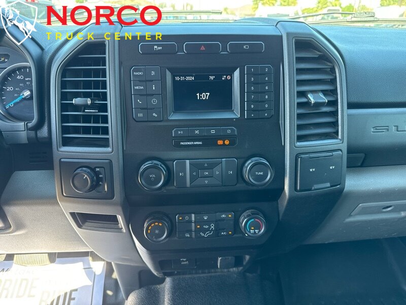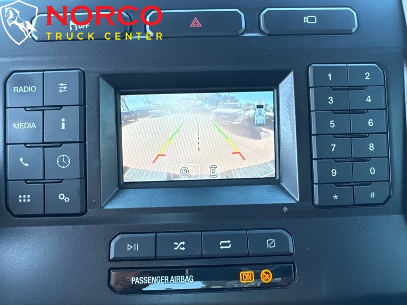 INSTALLED FEATURES: Air filtration, Front air conditioning, Front air conditioning zones: single, Airbag deactivation: passenger switch, Front airbags: dual, Side airbags: front, Side curtain airbags: front / rear, Antenna type: mast, Auxiliary audio input: Bluetooth / USB, Radio: AM/FM / voice operated, Speed sensitive volume control, Total speakers: 4, ABS: 4-wheel, Braking assist, Electronic brakeforce distribution, Front brake diameter: 14.29, Front brake type: ventilated disc, Power brakes, Rear brake diameter: 14.3, Rear brake type: ventilated disc, Armrests: front center, Door sill trim: scuff plate, Floor material: rubber/vinyl, Steering wheel trim: urethane, Assist handle: front, Cupholders: front, Overhead console: front, Power outlet(s): 12V front / USB front / USB-C front, Power steering, Reading lights: front / rear, Rearview mirror: manual day/night, Steering wheel: tilt and telescopic, Steering wheel mounted controls: audio / multi-function / phone / voice control, Storage: accessory hook / door pockets, Vanity mirrors: passenger, 4WD selector: electronic hi-lo, 4WD type: part time, Axle ratio: 3.73, Alternator: 157 amps, Battery: maintenance-free, Battery rating: 650 CCA, Battery saver, Door handle color: black, Front bumper color: black, Grille color: black, License plate bracket: front, Mirror color: black, Pickup bed light, Rear bumper color: black, Side door type: dual rear-hinged access, Tailgate: lift assist / removable, Window trim: black, Connected in-car apps: app marketplace integration, Infotainment: SYNC, Infotainment screen size: 4.2 in., Clock, Digital odometer, External temperature display, Gauge: oil pressure / tachometer / transmission temperature, Instrument cluster screen size: 2.3 in., Powertrain hour meter, Warnings and reminders: low fuel level / maintenance due, Headlights: auto delay off / auto on/off / halogen / quad headlights / wiper activated, Side mirror adjustments: manual / manual folding / manual telescoping, Towing mirrors, Automatic hazard warning lights, Camera system: rearview, Child seat anchors: LATCH system, Crumple zones: front, Impact sensor: alert system / door unlock / post-collision safety system, Programmable safety key, Rearview monitor: in dash, Emergency locking retractors: front / rear, Front seatbelts: 3-point, Rear seatbelts: 3-point, Seatbelt pretensioners: front, Seatbelt warning sensor: front, Driver seat manual adjustments: lumbar / reclining / 6, Front headrests: adjustable / 2, Front seat type: 40-20-40 split bench, Passenger seat manual adjustments: reclining / 4, Rear headrests: adjustable / 3, Rear seat folding: folds up / split, Rear seat type: 60-40 split bench, Upholstery: vinyl, Anti-theft system: vehicle immobilizer, Hill holder control, Roll stability control, Stability control, Traction control, Trailer stability control, Front shock type: gas, Front spring type: coil, Front stabilizer bar, Front suspension classification: solid live axle, Front suspension type: multi-link, Rear shock type: gas, Rear spring type: leaf, Rear suspension classification: solid live axle, Rear suspension type: multi-leaf, Electronic messaging assistance: voice operated / with read function, Hands-free phone call integration: voice operated, Smart device app compatibility: FordPass Connect, Smart device app function: engine start / lock operation / maintenance status / vehicle location, Wi-Fi: hotspot, Wireless data link: Bluetooth, Spare tire mount location: underbody, Spare tire size: full-size, Spare wheel type: steel, Tire Pressure Monitoring System, Tire type: all season, Wheels: painted steel, Tow hooks: front, Trailer hitch, Trailer wiring: 4-pin / 7-pin, Front wipers: variable intermittent, Solar-tinted glass: front