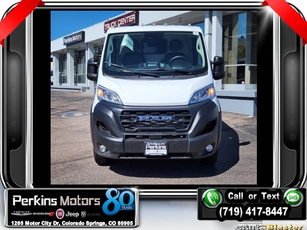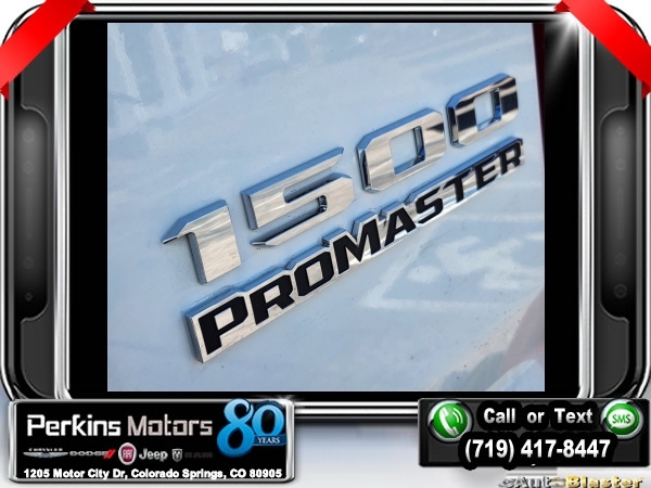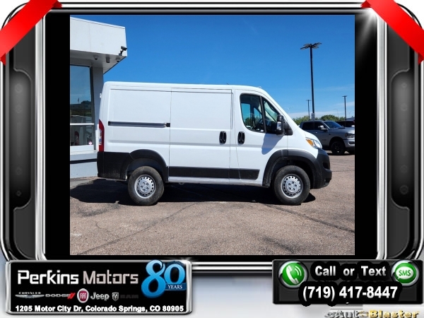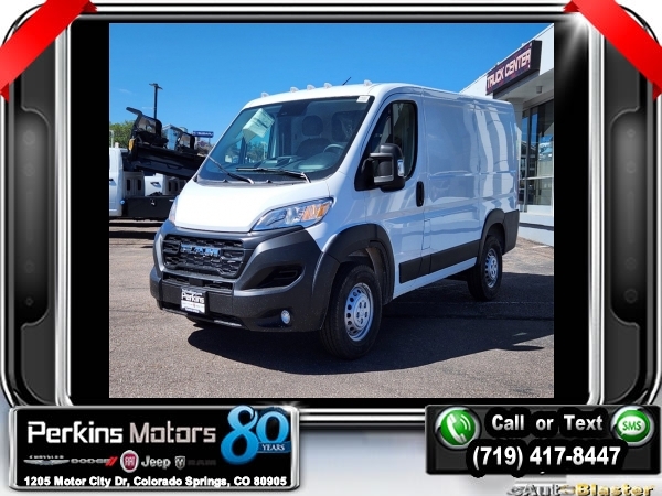 Factory MSRP: $48,970 $4,075 off MSRP! Bright White Clearcoat 2025 Ram ProMaster 1500 Low Roof FWD 9-Speed 948TE Automatic 3.6L V6 24V VVT<br><br>Check us out at www.perkinsmotors.com to see our specials! Since opening our doors in 1944, we’ve been proud to serve Colorado Springs, CO, and the surrounding areas of Pueblo, Castle Rock and Denver, CO. Throughout this time of being family owned for 80 years, we’ve maintained a firm commitment to our customers: to offer a wide selection of New Chrysler, Dodge, Fiat, Jeep, and Ram vehicles and quality pre-owned vehicles, and provide a quick, no-hassle car-buying process that ensures everyone drives off the lot satisfied with their purchase.<br><br>Convenience Group (Exterior Mirrors w/Heating Element, Exterior Mirrors w/Supplemental Signals, Front Fog Lamps, Power Adjust Mirrors, Power Folding/Heated Mirrors, Power-Adjustable Convex Aux Mirrors, Power-Folding Mirrors, and Rear Cargo LED Lamp), Quick Order Package 22B Tradesman w/Pass Seat (4-Way Manual Adjust Front Passenger Seat and Passenger Bucket Seat), 4 Speakers, 4-Wheel Disc Brakes, 4.08 Axle Ratio, 4G LTE Wi-Fi Hotspot, ABS brakes, Adaptive Cruise Control w/Stop & Go, Air Conditioning, AM/FM radio: SiriusXM, Apple CarPlay, Apple CarPlay/Android Auto, Black/Gray Seats, Bodyside moldings, Brake assist, Cargo Partition w/Sliding Window, Cloth Bucket Seats, Connectivity - US/Canada, Driver door bin, Driver Seat Armrest, Driver's Seat Mounted Armrest, Electronic Stability Control, For Details, Visit DriveUconnect.com, For More Info, Call 800-643-2112, Front anti-roll bar, Front Bucket Seats, Front License Plate Bracket, Front reading lights, Front wheel independent suspension, Global Telematics Box Module (TBM), Google Android Auto, GPS Antenna Input, Illuminated entry, Light Duty Suspension, Low tire pressure warning, Manufacturer's Statement of Origin, MOPAR Cargo Compartment Floor Mat, Outside temperature display, Overhead airbag, Overhead console, ParkView Rear Back-Up Camera, Passenger door bin, Power steering, Power windows, Radio: Uconnect 5 w/7 Display, Remote keyless entry, SiriusXM Radio Service, Steering wheel mounted audio controls, Tachometer, Telescoping steering wheel, Traction control, Trip computer, Turn signal indicator mirrors, Variably intermittent wipers, Wheel Center Cap, and Wheels: 16 x 6.0 SteeL. Sale price includes all manufacture's incentives and dealer discounts. Sale price not available on lease or compatible with special APR. $2000 - 2025 National Bonus Cash . Exp. 01/02/2025