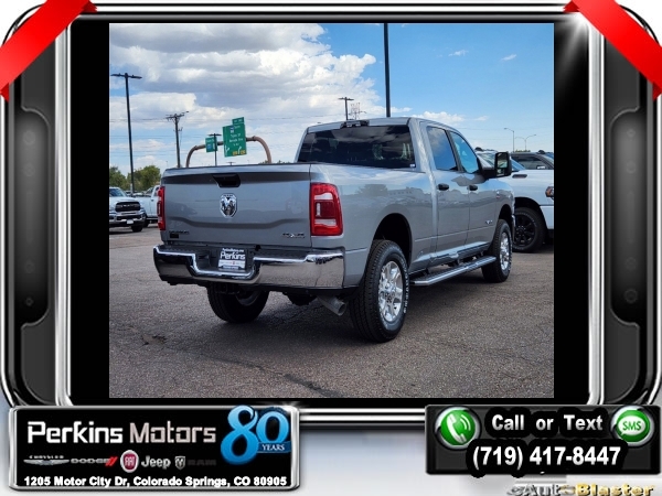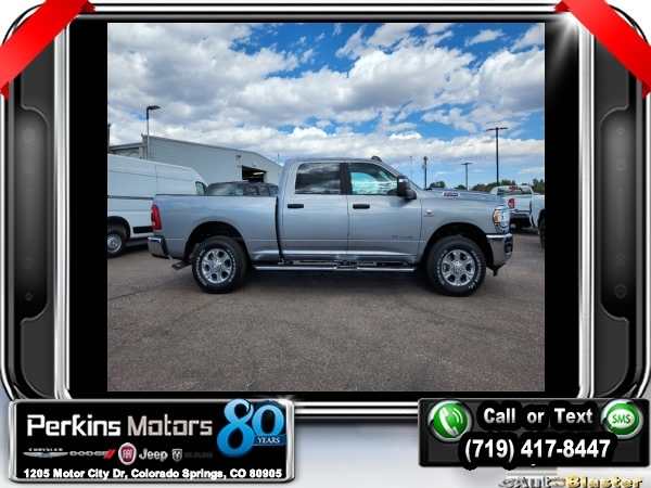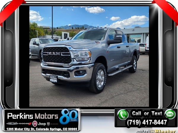 Factory MSRP: $79,540 $9,000 off MSRP! Billet Silver Metallic Clearcoat 2024 Ram 2500 Big Horn 4WD 6-Speed Automatic Cummins 6.7L I6 Turbodiesel<br><br>Check us out at www.perkinsmotors.com to see our specials! Since opening our doors in 1944, we’ve been proud to serve Colorado Springs, CO, and the surrounding areas of Pueblo, Castle Rock and Denver, CO. Throughout this time of being family owned for 80 years, we’ve maintained a firm commitment to our customers: to offer a wide selection of New Chrysler, Dodge, Fiat, Jeep, and Ram vehicles and quality pre-owned vehicles, and provide a quick, no-hassle car-buying process that ensures everyone drives off the lot satisfied with their purchase.<br><br>Bed Utility Group (LED Bed Lighting, MOPAR Deployable Bed Step, and MOPAR Spray In Bedliner), Cold Weather Group (Engine Block Heater and MOPAR Winter Front Grille Cover), Heated Seats & Wheel Group (Heated Front Seats, Heated Steering Wheel, Leather Wrapped Steering Wheel, and Steering Wheel Mounted Audio Controls), Level 1 Equipment Group (2 Way Rear Headrest Seat, 2nd Row In Floor Storage Bins, 4 Way Front Headrests, 40/20/40 Split Bench Seat, 4G LTE Wi-Fi Hot Spot, 8.4 Touchscreen Display, Apple CarPlay, Auto Power-Folding Mirrors, Big Horn IP Badge, Black Exterior Mirrors, Bluetooth Handsfree Phone & Audio, Center Hub, Connectivity - US/Canada, Dual Glove Boxes, Exterior Mirrors Courtesy Lamps, Exterior Mirrors w/Heating Element, Exterior Mirrors w/Supplemental Signals, Foam Bottle Insert (Door Trim Panel), Footwell Courtesy Lamp, For Details, Visit DriveUconnect.com, For More Info, Call 800-643-2112, Forward & Reverse Utility Lights, Front Armrest w/Cupholders, Front Center Seat Cushion Storage, Front Fog Lamps, Front Seat Back Map Pockets, Global Telematics Box Module (TBM), Glove Box Lamp, Google Android Auto, GPS Antenna Input, Integrated Center Stack Radio, Integrated Voice Command w/Bluetooth, Locking Lower Glove Box, Manual Adjust 4-Way Front Passenger Seat, Mirror Running Lights, Power 2-Way Driver Lumbar Adjust, Power Adjust 8-Way Driver Seat, Power Adjust Mirrors, Power Adjustable Convex Aux Mirrors, Power Heated Fold Telescope Mirrors, Power Telescoping Mirrors, Rear 60/40 Folding Seat, Rear Dome w/On/Off Switch Lamp, Remote USB Port - Charge Only, Selectable Tire Fill Alert, SiriusXM Radio Service, SiriusXM Satellite Radio, Storage Tray, and Wheels: 18 x 8.0 Polished Aluminum), Protection Group (Tow Hooks), Quick Order Package 2HZ Big Horn, Snow Chief Group (Anti-Spin Differential Rear Axle, Auxiliary Switches Prep, Clearance Lamps, Dash Pass Thru Wire Circuits, and I/P Mounted Auxiliary Switches), 115V Auxiliary Front Power Outlet, 12 Touchscreen Display, 220 Amp Alternator, 3.73 Axle Ratio, 4-Wheel Disc Brakes, 400W Inverter, 5th Wheel/Gooseneck Towing Prep Group, 6 Speakers, 9 Alpine Speakers w/Subwoofer, ABS brakes, Active Noise Control System, Air Conditioning, Air Conditioning ATC w/Dual Zone Control, Alexa Built-In, All R1 High Radios, All Radio Equipped Vehicles, Auto Level Rear Air Suspension, Blind Spot & Cross Path Detection, Brake assist, Bumpers: chrome, Center Stack Storage Drawer, Chrome Flat Wheel-to-Wheel Side Steps, Cloth 40/20/40 Bench Seat, Compass, Connected Travel & Traffic Services, Cruise Control, CTR Stop Lamp w/Cargo View Camera, Delay-off headlights, Disassociated Touchscreen Display, Driver door bin, Dual Alternators Rated At 440 Amps, Dual front impact airbags, Dual front side impact airbags, Electronic Stability Control, Electronically Controlled Throttle, Emergency communication system: SiriusXM Guardian, Exterior 115V AC Outlet, Front anti-roll bar, Front Center Armrest w/Storage, Front License Plate Bracket, Front reading lights, Fully automatic headlights, GPS Navigation, HD Radio, Heated door mirrors, Il Sale price includes all manufacture's incentives and dealer discounts. Sale price not available on lease or compatible with special APR. $1000 - 2024 Bonus Cash . Exp. 1