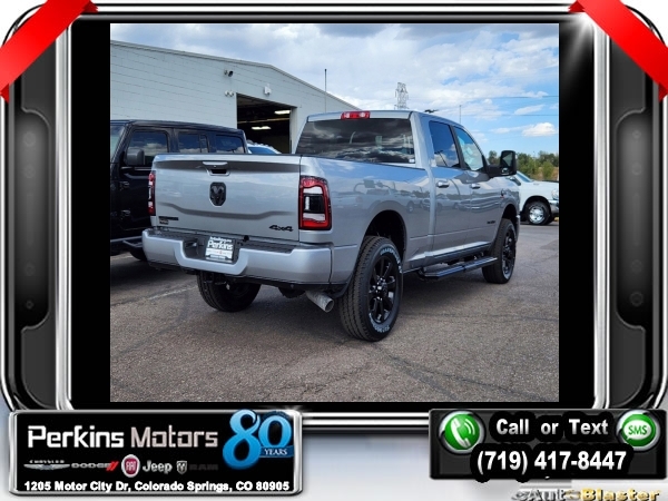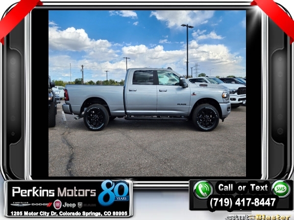 Factory MSRP: $80,010 $11,500 off MSRP! Billet Silver Metallic Clearcoat 2024 Ram 2500 Big Horn 4WD 6-Speed Automatic Cummins 6.7L I6 Turbodiesel<br><br>Check us out at www.perkinsmotors.com to see our specials! Since opening our doors in 1944, we’ve been proud to serve Colorado Springs, CO, and the surrounding areas of Pueblo, Castle Rock and Denver, CO. Throughout this time of being family owned for 80 years, we’ve maintained a firm commitment to our customers: to offer a wide selection of New Chrysler, Dodge, Fiat, Jeep, and Ram vehicles and quality pre-owned vehicles, and provide a quick, no-hassle car-buying process that ensures everyone drives off the lot satisfied with their purchase.<br><br>Bed Utility Group (LED Bed Lighting, MOPAR Deployable Bed Step, and MOPAR Spray In Bedliner), Cold Weather Group (Engine Block Heater and MOPAR Winter Front Grille Cover), Heated Seats & Wheel Group (Heated Front Seats, Heated Steering Wheel, Leather Wrapped Steering Wheel, and Steering Wheel Mounted Audio Controls), Level 1 Equipment Group (2 Way Rear Headrest Seat, 2nd Row In Floor Storage Bins, 4 Way Front Headrests, 40/20/40 Split Bench Seat, 4G LTE Wi-Fi Hot Spot, 8.4 Touchscreen Display, Apple CarPlay, Auto Power-Folding Mirrors, Big Horn IP Badge, Black Exterior Mirrors, Bluetooth Handsfree Phone & Audio, Center Hub, Connectivity - US/Canada, Dual Glove Boxes, Exterior Mirrors Courtesy Lamps, Exterior Mirrors w/Heating Element, Exterior Mirrors w/Supplemental Signals, Foam Bottle Insert (Door Trim Panel), Footwell Courtesy Lamp, For Details, Visit DriveUconnect.com, For More Info, Call 800-643-2112, Forward & Reverse Utility Lights, Front Armrest w/Cupholders, Front Center Seat Cushion Storage, Front Fog Lamps, Front Seat Back Map Pockets, Global Telematics Box Module (TBM), Glove Box Lamp, Google Android Auto, GPS Antenna Input, Integrated Center Stack Radio, Integrated Voice Command w/Bluetooth, Locking Lower Glove Box, Manual Adjust 4-Way Front Passenger Seat, Mirror Running Lights, Power 2-Way Driver Lumbar Adjust, Power Adjust 8-Way Driver Seat, Power Adjust Mirrors, Power Adjustable Convex Aux Mirrors, Power Heated Fold Telescope Mirrors, Power Telescoping Mirrors, Rear 60/40 Folding Seat, Rear Dome w/On/Off Switch Lamp, Remote USB Port - Charge Only, Selectable Tire Fill Alert, SiriusXM Radio Service, SiriusXM Satellite Radio, Storage Tray, and Wheels: 18 x 8.0 Polished Aluminum), Night Edition (Black Exterior Truck Badging, Black Headlamp Bezels, Black Interior Accents, Black Ram Head Tailgate Badge, Black Tail Lamp Bezels, Black Wheel Center Hub, Body Color Door Handles, Body Color Grille Surround, Gloss Black Nostrils/MIC Black Grille, Painted Front Bumper, Painted Rear Bumper, ParkSense Front/Rear Park Assist System, and Wheels: 20 x 8.0 Black Painted Aluminum), Protection Group (Tow Hooks), Quick Order Package 2HZ Big Horn, 12 Touchscreen Display, 220 Amp Alternator, 3.73 Axle Ratio, 4-Wheel Disc Brakes, 5th Wheel/Gooseneck Towing Prep Group, 6 Speakers, 9 Alpine Speakers w/Subwoofer, ABS brakes, Active Noise Control System, Air Conditioning, Air Conditioning ATC w/Dual Zone Control, Alexa Built-In, All R1 High Radios, All Radio Equipped Vehicles, Auto Level Rear Air Suspension, Blind Spot & Cross Path Detection, Brake assist, Bumpers: chrome, Center Stack Storage Drawer, Clearance Lamps, Cloth 40/20/40 Bench Seat, Compass, Connected Travel & Traffic Services, Cruise Control, Dash Pass Thru Wire Circuits, Delay-off headlights, Disassociated Touchscreen Display, Driver door bin, Dual front impact airbags, Dual front side impact airbags, Electronic Stability Control, Electronically Controlled Throttle, Emergency communication system: SiriusXM Guardian, Front anti-roll bar, Front Center Armrest w/Storage, Front License Plate Bracket, Fr Sale price includes all manufacture's incentives and dealer discounts. Sale price not available on lease or compatible with special APR. $1000 - 2024 Bonus Cash . Exp. 0