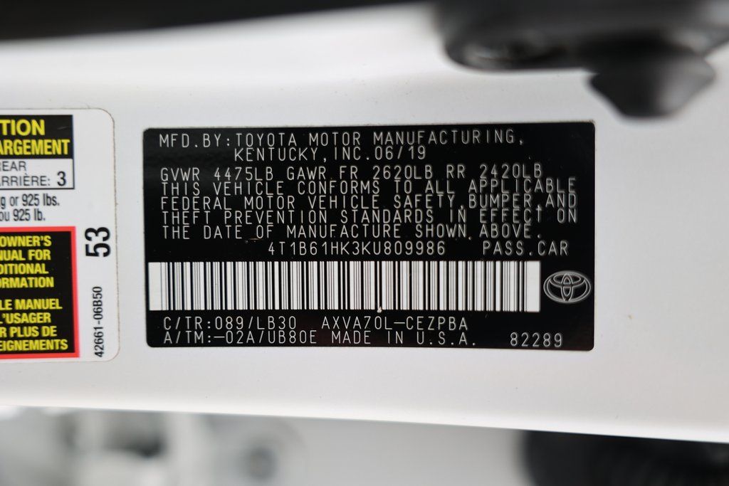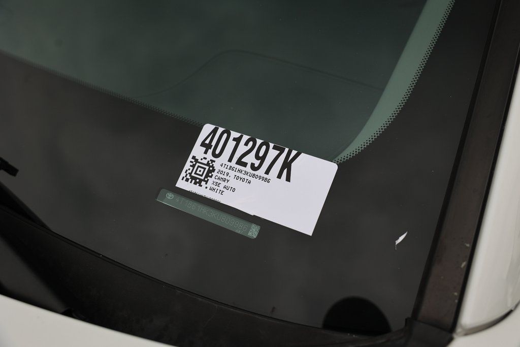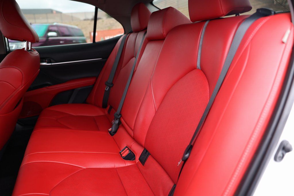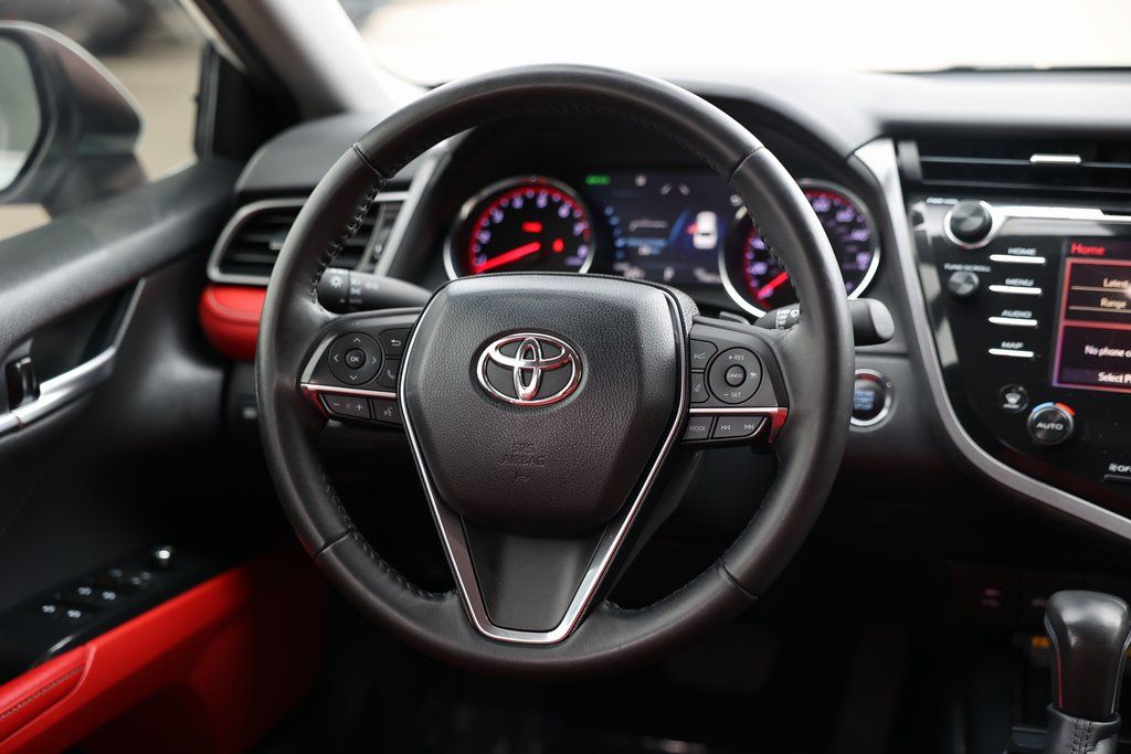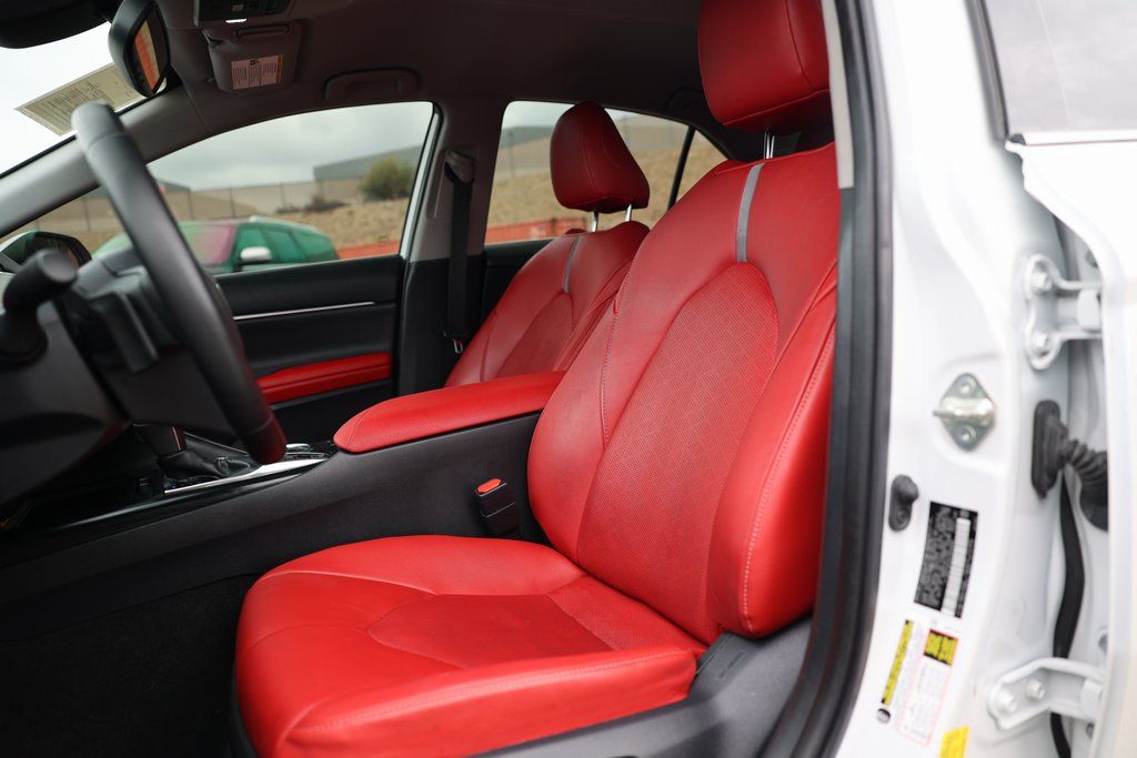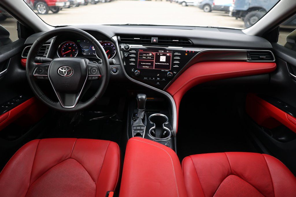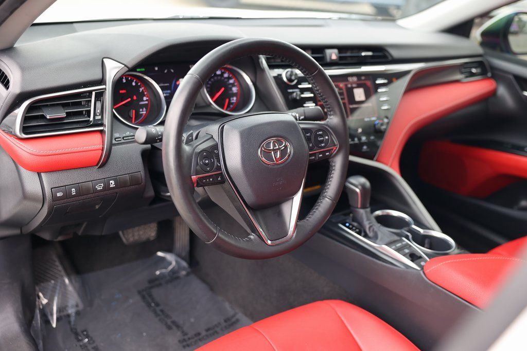 Wind Chill Pearl 2019 Toyota Camry XSE FWD 8-Speed Automatic 2.5L I4 DOHC 16V Cockpit Red w/Perforated Leather Seat Trim, 6 Speakers, Air Conditioning, Apple CarPlay, Brake assist, Carpet Mat Package, Electronic Stability Control, Exterior Parking Camera Rear, First Aid Kit, Front Bucket Seats, Fully automatic headlights, Heated front seats, Hide Away Cargo Net, Lower Rocker Applique, Perforated Leather Seat Trim, Preferred Accessory Package (Z4), Preferred Accessory Package (Z6), Radio: Entune 3.0 Audio Plus w/App Suite, Rear Bumper Applique (Black), Spoiler, Wheels: 8.0J x 19" Black Machined-Finish Alloy.28/39 City/Highway MPGAwards: * JD Power Automotive Performance, Execution and Layout (APEAL) Study * 2019 KBB.com 10 Most Comfortable Cars Under $30,000 * 2019 KBB.com 10 Best Sedans Under $30,000 * 2019 KBB.com Brand Image Awards * 2019 KBB.com Best Resale Value Awards