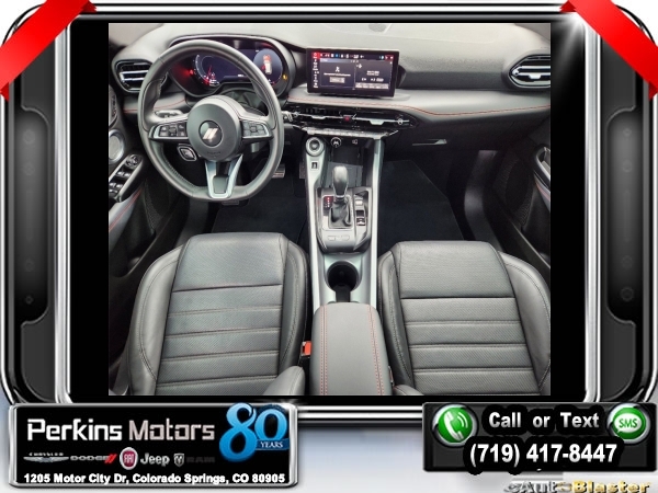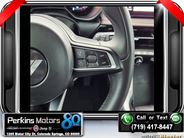 Blue Steele AWD 2.0L I4 DOHC 9-Speed 948TE Automatic<br><br>Active Driving Assist System, Dark GT Badge, Dark Hornet Badge, Drowsy Driver Detection, Gloss Black Painted Day Light Opening, Gloss Black Painted Mirror Caps, GT Blacktop Package (DISC), harman/kardon® Speakers, Intelligent Speed Assist (ISA), Navigation System, ParkSense Front/Rear/Side Park Assist, Power moonroof, Quick Order Package 23L, Radio: Uconnect 5 Nav w/10.25 Display, Surround View Camera System, Tech Pack Plus w/o Parking, Wheels: 18 x 7.5 Abyss Aluminum (DISC).<br><br><br>Clean CARFAX.<br><br>Check us out at www.perkinsmotors.com to see our specials! Since opening our doors in 1944, we’ve been proud to serve Colorado Springs, CO, and the surrounding areas of Pueblo, Castle Rock and Denver, CO. Throughout this time of being family owned for 80 years, we’ve maintained a firm commitment to our customers: to offer a wide selection of New Chrysler, Dodge, Fiat, Jeep, and Ram vehicles and quality pre-owned vehicles, and provide a quick, no-hassle car-buying process that ensures everyone drives off the lot satisfied with their purchase.<br><br><br>GT Blacktop Package (DISC) (Dark GT Badge, Dark Hornet Badge, Gloss Black Painted Day Light Opening, Gloss Black Painted Mirror Caps, and Wheels: 18 x 7.5 Abyss Aluminum (DISC)), Quick Order Package 23L, Tech Pack Plus w/o Parking (Active Driving Assist System, Drowsy Driver Detection, Intelligent Speed Assist (ISA), ParkSense Front/Rear/Side Park Assist, and Surround View Camera System), harman/kardon® Speakers, Navigation System, Power moonroof, Radio: Uconnect 5 Nav w/10.25 Display, 4-Wheel Disc Brakes, 8 Speakers, ABS brakes, Air Conditioning, Alloy wheels, AM/FM radio: SiriusXM, Anti-whiplash front head restraints, Apple CarPlay/Android Auto, Auto High-beam Headlights, Auto-dimming Rear-View mirror, Automatic temperature control, Brake assist, Bumpers: body-color, Compass, Cruise Control, Delay-off headlights, Driver door bin, Driver vanity mirror, Dual front impact airbags, Dual front side impact airbags, Electronic Stability Control, Emergency communication system: SiriusXM Guardian, Four wheel independent suspension, Front anti-roll bar, Front Bucket Seats, Front Center Armrest w/Storage, Front dual zone A/C, Front reading lights, Fully automatic headlights, Garage door transmitter, Heated door mirrors, Heated front seats, Heated steering wheel, Illuminated entry, Knee airbag, Leather Seats, Leather steering wheel, Low tire pressure warning, Manufacturer's Statement of Origin, Memory seat, Normal Duty Suspension, Occupant sensing airbag, Outside temperature display, Overhead airbag, Overhead console, Panic alarm, ParkView Rear Back-Up Camera, Passenger door bin, Passenger vanity mirror, Power 4-Way Driver Lumbar Adjust, Power 4-Way Passenger Lumbar Adjust, Power Adjust 8-Way Driver Seat, Power Adjust 8-Way Front Passenger Seat, Power door mirrors, Power driver seat, Power Liftgate, Power passenger seat, Power steering, Power windows, Rain sensing wipers, Rear anti-roll bar, Rear seat center armrest, Rear window defroster, Rear window wiper, Remote keyless entry, Security system, Split folding rear seat, Spoiler, Steering wheel mounted audio controls, Tachometer, TBD Axle Ratio, Telescoping steering wheel, Tilt steering wheel, Traction control, Trip computer, Turn signal indicator mirrors, Variably intermittent wipers, Ventilated Front Seats, Ventilated front seats, and Wheels: 17 x 7 Silver Aluminum.