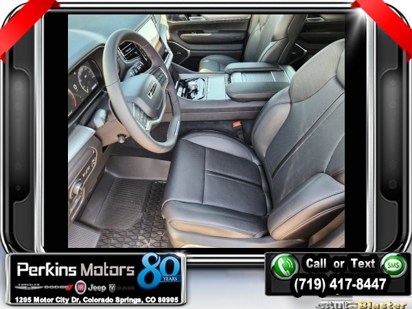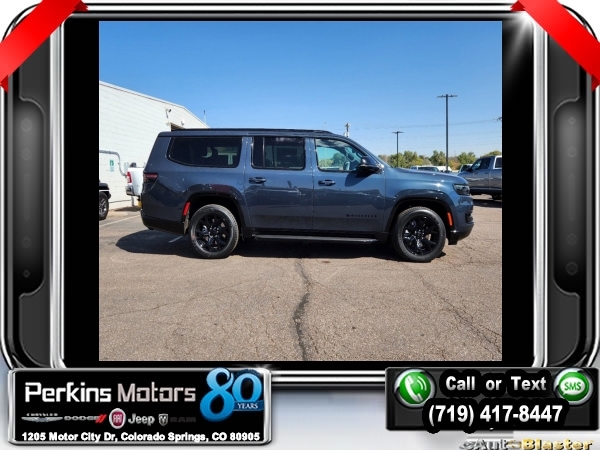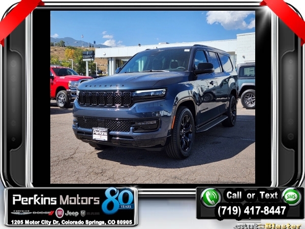 Factory MSRP: $81,520 $12,500 off MSRP! Priced below KBB Fair Purchase Price! River Rock 2024 Jeep Wagoneer L Series II 4WD 8-Speed Automatic 3.0L I6<br><br>Check us out at www.perkinsmotors.com to see our specials! Since opening our doors in 1944, we’ve been proud to serve Colorado Springs, CO, and the surrounding areas of Pueblo, Castle Rock and Denver, CO. Throughout this time of being family owned for 80 years, we’ve maintained a firm commitment to our customers: to offer a wide selection of New Chrysler, Dodge, Fiat, Jeep, and Ram vehicles and quality pre-owned vehicles, and provide a quick, no-hassle car-buying process that ensures everyone drives off the lot satisfied with their purchase.<br><br>Carbide Appearance Package, Quick Order Package 25F Carbide (3 Panel Sunroof, Adjustable Roof Rail Crossbars, Black Interior Accents, Piano Black Exterior Accents, Reversible Carpet/Vinyl Cargo Mat, and Wheels: 20 x 9.0 Aluminum Painted Gloss Black), 10 Speakers, 3.55 Rear Axle Ratio, 3rd row seats: bench, 4-Wheel Disc Brakes, ABS brakes, Adjustable pedals, Air Conditioning, Alloy wheels, AM/FM radio: SiriusXM with 360L, Anti-whiplash front head restraints, Apple CarPlay/Android Auto, Audio memory, Auto-dimming door mirrors, Auto-dimming Rear-View mirror, Auto-leveling suspension, Automatic temperature control, Brake assist, Bumpers: body-color, Compass, Cruise Control, Delay-off headlights, Driver door bin, Driver vanity mirror, Driver's Seat Mounted Armrest, Dual front impact airbags, Dual front side impact airbags, Electronic Stability Control, Emergency communication system: Wagoneer Connect, Exterior Parking Camera Rear, Four wheel independent suspension, Front anti-roll bar, Front Bucket Seats, Front Center Armrest w/Storage, Front dual zone A/C, Front fog lights, Front reading lights, Full Length Floor Console, Fully automatic headlights, Garage door transmitter, Genuine wood console insert, Genuine wood dashboard insert, Genuine wood door panel insert, Heated door mirrors, Heated front seats, Heated steering wheel, Illuminated entry, Knee airbag, Leather Trimmed Bucket Seats, Low tire pressure warning, Memory seat, Navigation System, Normal Duty Suspension, Occupant sensing airbag, Outside temperature display, Overhead airbag, Overhead console, Panic alarm, Passenger door bin, Passenger seat mounted armrest, Passenger vanity mirror, Pedal memory, Power adjustable front head restraints, Power door mirrors, Power driver seat, Power Liftgate, Power passenger seat, Power steering, Power windows, Radio data system, Radio: Uconnect 5 Nav w/10.1 Display, Rain sensing wipers, Rear air conditioning, Rear anti-roll bar, Rear reading lights, Rear seat center armrest, Rear window defroster, Rear window wiper, Reclining 3rd row seat, Remote keyless entry, Security system, Speed-sensing steering, Speed-Sensitive Wipers, Split folding rear seat, Steering wheel memory, Steering wheel mounted audio controls, Tachometer, Telescoping steering wheel, Tilt steering wheel, Traction control, Trip computer, Turn signal indicator mirrors, Variably intermittent wipers, Ventilated front seats, Voltmeter, and Wheels: 20 x 9.0 Premium 2 Aluminum. Sale price includes all manufacture's incentives and dealer discounts. Sale price not available on lease or compatible with special APR. $1000 - 2024 Conquest Bonus Cash. Exp. 10/31/2024