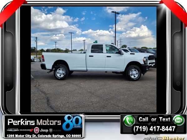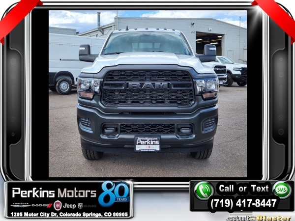 Factory MSRP: $58,585 $6,800 off MSRP! Bright White Clearcoat 2024 Ram 3500 Tradesman 4WD 8-Speed Automatic 6.4L V8<br><br>Check us out at www.perkinsmotors.com to see our specials! Since opening our doors in 1944, we’ve been proud to serve Colorado Springs, CO, and the surrounding areas of Pueblo, Castle Rock and Denver, CO. Throughout this time of being family owned for 80 years, we’ve maintained a firm commitment to our customers: to offer a wide selection of New Chrysler, Dodge, Fiat, Jeep, and Ram vehicles and quality pre-owned vehicles, and provide a quick, no-hassle car-buying process that ensures everyone drives off the lot satisfied with their purchase.<br><br>Protection Group, Quick Order Package 2GA Tradesman, Snow Chief Group (Auxiliary Switches Prep, Clearance Lamps, Dash Pass Thru Wire Circuits, and I/P Mounted Auxiliary Switches), Tradesman Level 2 Equipment Group (2 Way Rear Headrest Seat, 4 Way Front Headrests, 40/20/40 Split Bench Seat, Black Exterior Mirrors, Carpet Floor Covering, Cloth 40/20/40 Bench Seat, Exterior Mirrors Courtesy Lamps, Exterior Mirrors w/Heating Element, Exterior Mirrors w/Supplemental Signals, Front & Rear Floor Mats, Front Armrest w/Cupholders, Manual Adjust 4-Way Driver Seat, Manual Adjust 4-Way Front Passenger Seat, Manual Folding Exterior Mirrors, Manual Telescoping Mirrors, Mirror Running Lights, Power Adjust Mirrors, Power Heat Fold Telescopic Mirrors, Power-Adjustable Convex Aux Mirrors, Rear Folding Seat, Rear Power Sliding Window, Rear Window Defroster, Remote USB Port - Charge Only, and Storage Tray), 220 Amp Alternator, 3.73 Axle Ratio, 4-Wheel Disc Brakes, 4.10 Axle Ratio, 4G LTE Wi-Fi Hot Spot, 50 Gallon Fuel Tank, 6 Speakers, 8.4 Touchscreen Display, ABS brakes, Active Noise Control System, Air Conditioning, All R1 Low Radios, All Radio Equipped Vehicles, AM/FM radio, Apple CarPlay, Auto Power-Folding Mirrors, Bluetooth Handsfree Phone & Audio, Brake assist, Center Hub, Compass, Connectivity - US/Canada, Cruise Control, Delay-off headlights, Driver door bin, Dual Alternators Rated At 380 Amps, Dual front impact airbags, Dual front side impact airbags, Electric Shift-On-The-Fly Transfer Case, Electronic Stability Control, Electronically Controlled Throttle, Emergency communication system: SiriusXM Guardian, For Details Visit DriveUconnect.com, For More Info, Call 800-643-2112, Forward & Reverse Utility Lights, Front anti-roll bar, Front Center Armrest w/Storage, Front License Plate Bracket, Front reading lights, Fully automatic headlights, Global Telematics Box Module (TBM), Google Android Auto, GPS Antenna Input, HD Vinyl 40/20/40 Split Bench Seat, Illuminated entry, Integrated Center Stack Radio, Integrated Voice Command w/Bluetooth, Low tire pressure warning, Manufacturer's Statement of Origin, MOPAR Front & Rear Rubber Floor Mats, Occupant sensing airbag, Outside temperature display, Overhead airbag, Overhead console, ParkView Rear Back-Up Camera, Passenger door bin, Passenger vanity mirror, Power Heated Fold Telescopic Mirrors, Power steering, Power Telescoping Mirrors, Power windows, Radio data system, Radio: Uconnect 3 w/5 Display, Radio: Uconnect 5 w/8.4 Display, Rear step bumper, Rear Wheelhouse Liners, Selectable Tire Fill Alert, SiriusXM Radio Service, SiriusXM Satellite Radio, Tachometer, Tilt steering wheel, Tip Start, Traction control, Trailer Brake Control, Trailer Light Check, Variably intermittent wipers, Voltmeter, and Wheels: 18 x 8.0 SteeL. Sale price includes all manufacture's incentives and dealer discounts. Sale price not available on lease or compatible with special APR. $2500 - 2024 National Truck Month Bonus Cash. Exp. 03/03/2025 Price includes $1,700 in dealer added accessories.