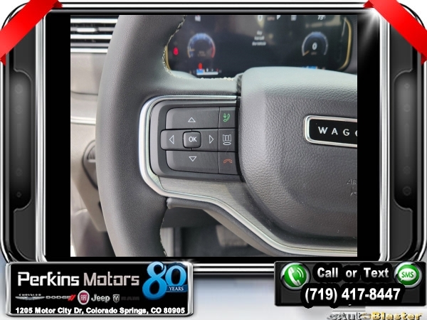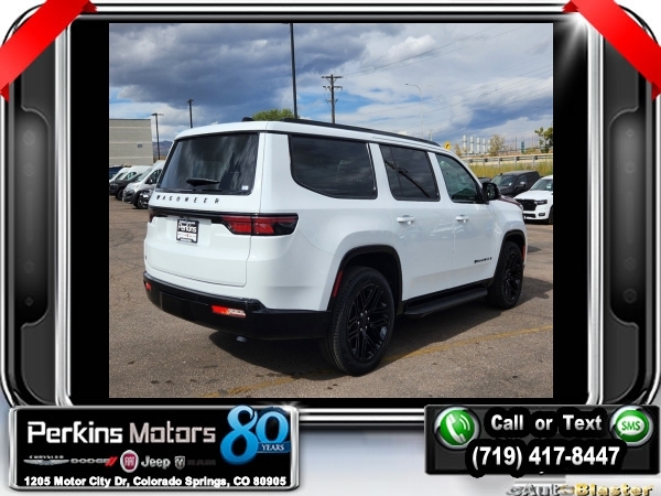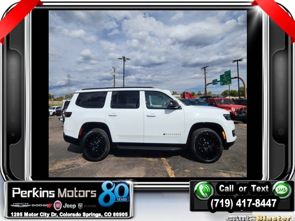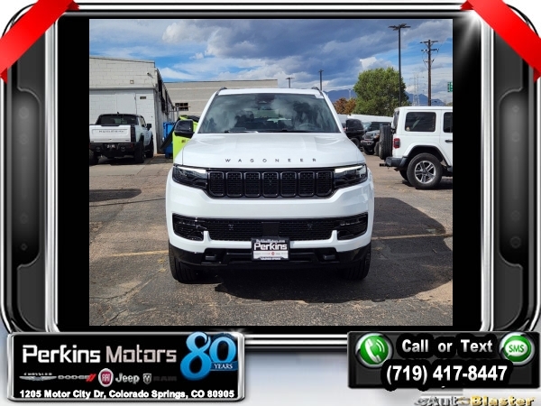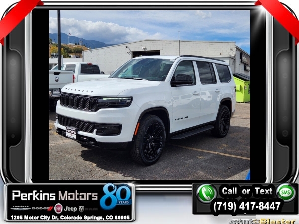 Factory MSRP: $85,435 $12,500 off MSRP! Priced below KBB Fair Purchase Price! Bright White Clearcoat 2024 Jeep Wagoneer Series II 4WD 8-Speed Automatic 3.0L I6<br><br>Check us out at www.perkinsmotors.com to see our specials! Since opening our doors in 1944, we’ve been proud to serve Colorado Springs, CO, and the surrounding areas of Pueblo, Castle Rock and Denver, CO. Throughout this time of being family owned for 80 years, we’ve maintained a firm commitment to our customers: to offer a wide selection of New Chrysler, Dodge, Fiat, Jeep, and Ram vehicles and quality pre-owned vehicles, and provide a quick, no-hassle car-buying process that ensures everyone drives off the lot satisfied with their purchase.<br><br>Carbide Appearance Package, Convenience Group I (2nd Row Manual Window Shades, Auto High Beam Headlamp Control, Drowsy Driver Detection, Heads-Up Display, Intersection Collision Assist System, P&P Park & Unpark Assist w/Stop System, Side Distance Warning, Surround View Camera System, and Traffic Sign Recognition), HD Trailer Tow Package (2 Speed On Demand Transfer Case, 3.92 Rear Axle Ratio, Electronic Rear Limited Slip Differential, Heavy-Duty Engine Cooling, Removable Rear Tow Hook, Selec-Speed Control, Trailer Brake Control, and Trailer Hitch Zoom), Quick Order Package 25F Carbide (3 Panel Sunroof, Adjustable Roof Rail Crossbars, Black Interior Accents, Cargo Cover, Piano Black Exterior Accents, Reversible Carpet/Vinyl Cargo Mat, and Wheels: 20 x 9 Gloss Black Painted Aluminum), 10 Speakers, 118 MPH Maximum Speed Calibration, 3.55 Rear Axle Ratio, 3rd row seats: bench, 4-Wheel Disc Brakes, ABS brakes, Adjustable pedals, Air Conditioning, Alloy wheels, AM/FM radio: SiriusXM with 360L, Anti-whiplash front head restraints, Apple CarPlay/Android Auto, Audio memory, Auto-dimming door mirrors, Auto-dimming Rear-View mirror, Auto-leveling suspension, Automatic temperature control, Brake assist, Bumpers: body-color, Compass, Cruise Control, Delay-off headlights, Driver door bin, Driver vanity mirror, Driver's Seat Mounted Armrest, Dual front impact airbags, Dual front side impact airbags, Electronic Stability Control, Emergency communication system: Wagoneer Connect, Exterior Parking Camera Rear, Four wheel independent suspension, Front anti-roll bar, Front Bucket Seats, Front Center Armrest w/Storage, Front dual zone A/C, Front fog lights, Front reading lights, Fully automatic headlights, Garage door transmitter, Genuine wood console insert, Genuine wood dashboard insert, Genuine wood door panel insert, Heated door mirrors, Heated front seats, Heated rear seats, Heated steering wheel, Illuminated entry, Knee airbag, Leather Trimmed Bucket Seats, Low tire pressure warning, Memory seat, Navigation System, Normal Duty Suspension, Occupant sensing airbag, Outside temperature display, Overhead airbag, Overhead console, Panic alarm, Passenger door bin, Passenger seat mounted armrest, Passenger vanity mirror, Pedal memory, Power adjustable front head restraints, Power door mirrors, Power driver seat, Power Liftgate, Power passenger seat, Power steering, Power windows, Radio data system, Radio: Uconnect 5 Nav w/10.1 Display, Rain sensing wipers, Rear air conditioning, Rear anti-roll bar, Rear dual zone A/C, Rear reading lights, Rear seat center armrest, Rear window defroster, Rear window wiper, Reclining 3rd row seat, Remote keyless entry, Security system, Speed-sensing steering, Speed-Sensitive Wipers, Split folding rear seat, Steering wheel memory, Steering wheel mounted audio controls, Tachometer, Telescoping steering wheel, Tilt steering wheel, Traction control, Trip computer, Turn signal indicator mirrors, Variably intermittent wipers, Ventilated front seats, Voltmeter, Wheels: 20 x 9.0 Premium 2 Aluminum, and Wheels: 22 x 9.0 Painted G Sale price includes all manufacture's incentives and dealer discounts. Sale price not available on lease or compatible with special APR. $1000 - 2024 Conquest Bonus Cash. Exp. 1