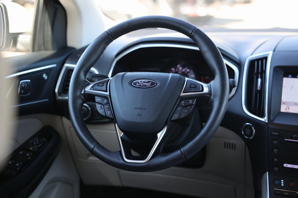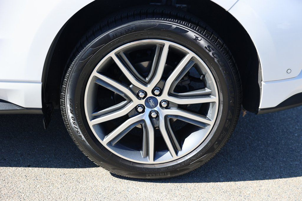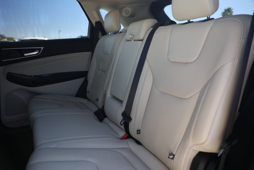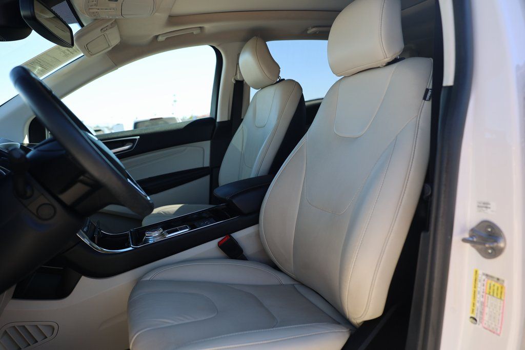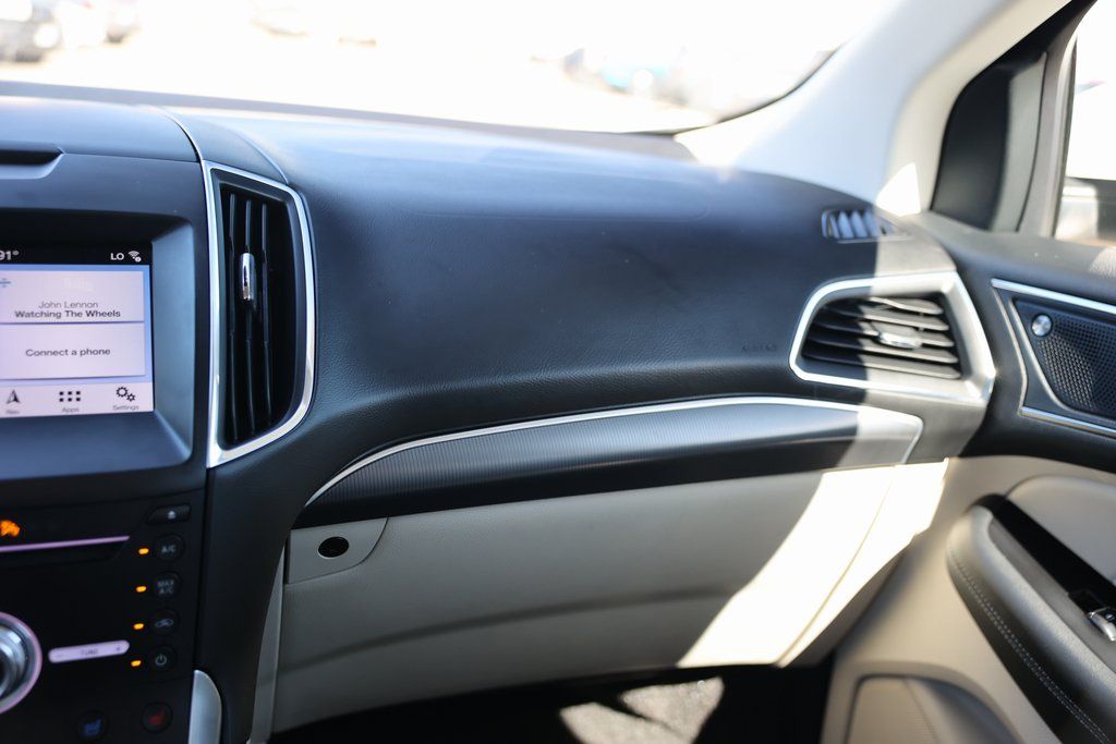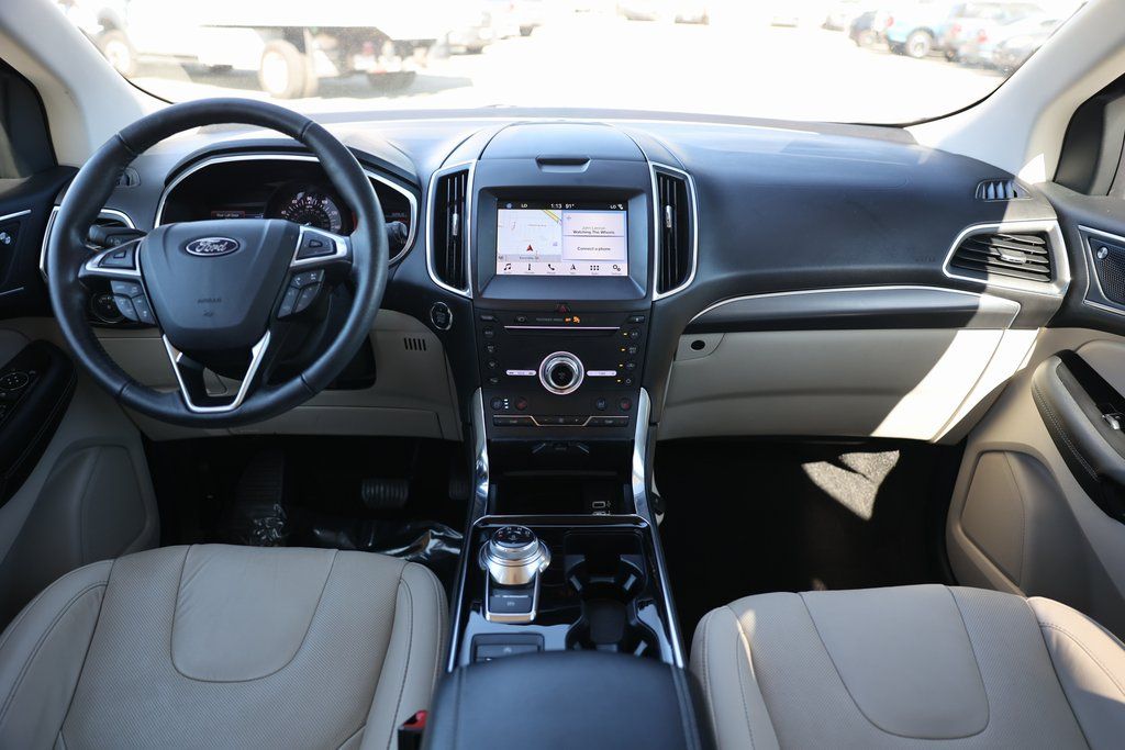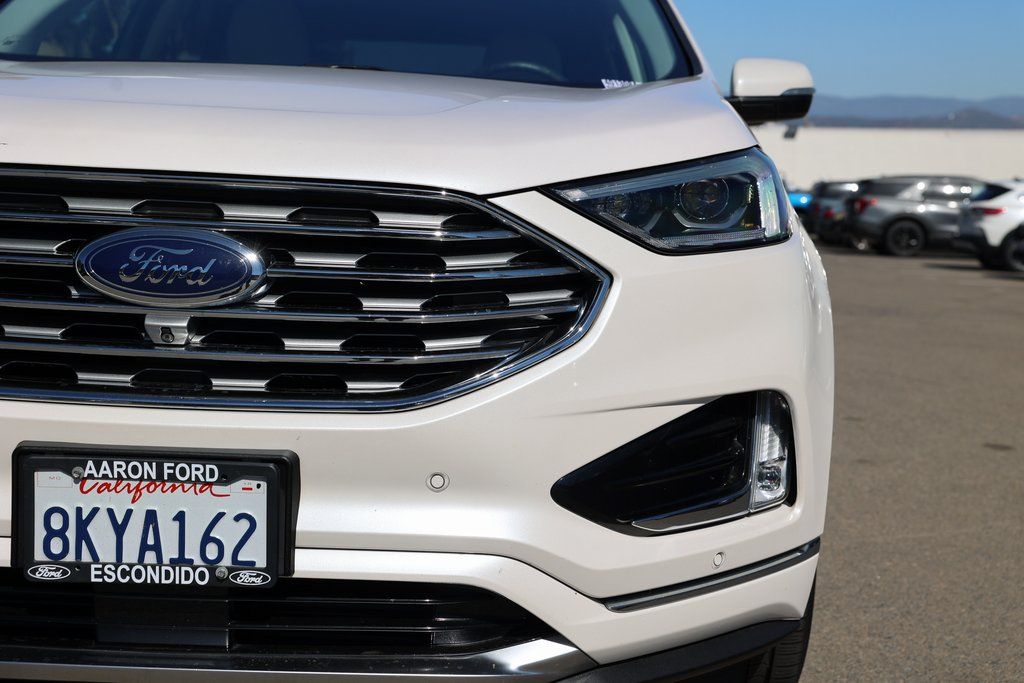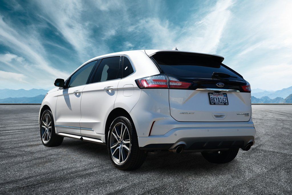 White Platinum Metallic Tri-Coat 2019 Ford Edge Titanium FWD 8-Speed Automatic EcoBoost 2.0L I4 GTDi DOHC Turbocharged VCT 12 Speakers, Adaptive Cruise Control w/Stop & Go, Adaptive LED Headlamps, Air Conditioning, AppLink/Apple CarPlay and Android Auto, Auto-Dimming Driver's Sideview Mirror, Brake assist, Electronic Stability Control, Enhanced Active Park Assist, Equipment Group 301A, Evasive Steering Assist, Front 180 Degree Camera, Front fog lights, Fully automatic headlights, Heated front seats, Heated Rear-Seats, Leather Trimmed Heated/Cooled Bucket Seats, Memory seat, Panoramic Vista Roof, Power Liftgate, Radio: B&O Sound System by Bang & Olufsen, Rear Parking Sensors, SiriusXM Radio, SiriusXM Traffic & Travel Link, Spoiler, SYNC 3 Communications & Entertainment System, Titanium Elite Package, Voice-Activated Touchscreen Navigation System, Wheels: 20" Bright-Machined Aluminum.Odometer is 12909 miles below market average! 22/29 City/Highway MPG