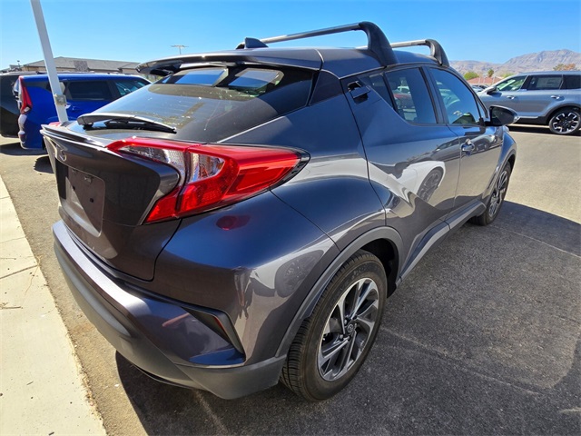27/31 City/Highway MPGGray 2019 Toyota C-HR LE FWD CVT 2.0L I4 DOHC 16VIf you don't drive here, you can't save here!Awards: * 2019 KBB.com Brand Image Awards * 2019 KBB.com Best Resale Value AwardsPrice may not include recon fee. 17" Steel Wheels, 4-Wheel Disc Brakes, 6 Speakers, ABS brakes, Air Conditioning, AM/FM radio, AM/FM Stereo, Apple CarPlay, Auto High-beam Headlights, Auto-dimming Rear-View mirror, Automatic temperature control, Axle Ratio: TBD, Brake assist, Bumpers: body-color, Delay-off headlights, Driver door bin, Driver vanity mirror, Dual front impact airbags, Dual front side impact airbags, Electronic Stability Control, Exterior Parking Camera Rear, Fabric Seat Material, Four wheel independent suspension, Front anti-roll bar, Front Bucket Seats, Front Center Armrest, Front dual zone A/C, Front reading lights, Fully automatic headlights, Heated door mirrors, Illuminated entry, Knee airbag, Low tire pressure warning, Occupant sensing airbag, Outside temperature display, Overhead airbag, Panic alarm, Passenger door bin, Passenger vanity mirror, Power door mirrors, Power steering, Power windows, Radio data system, Rear anti-roll bar, Rear side impact airbag, Rear window defroster, Rear window wiper, Remote keyless entry, Speed control, Speed-sensing steering, Split folding rear seat, Spoiler, Steering wheel mounted audio controls, Tachometer, Telescoping steering wheel, Tilt steering wheel, Traction control, Trip computer, Turn signal indicator mirrors, and Variably intermittent wipers.