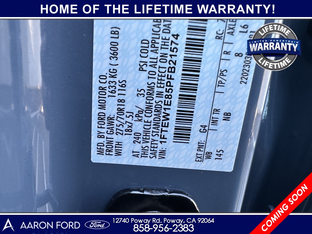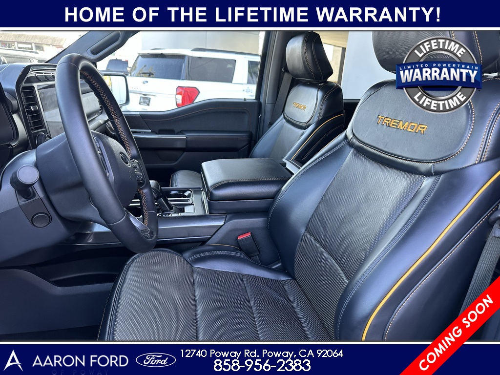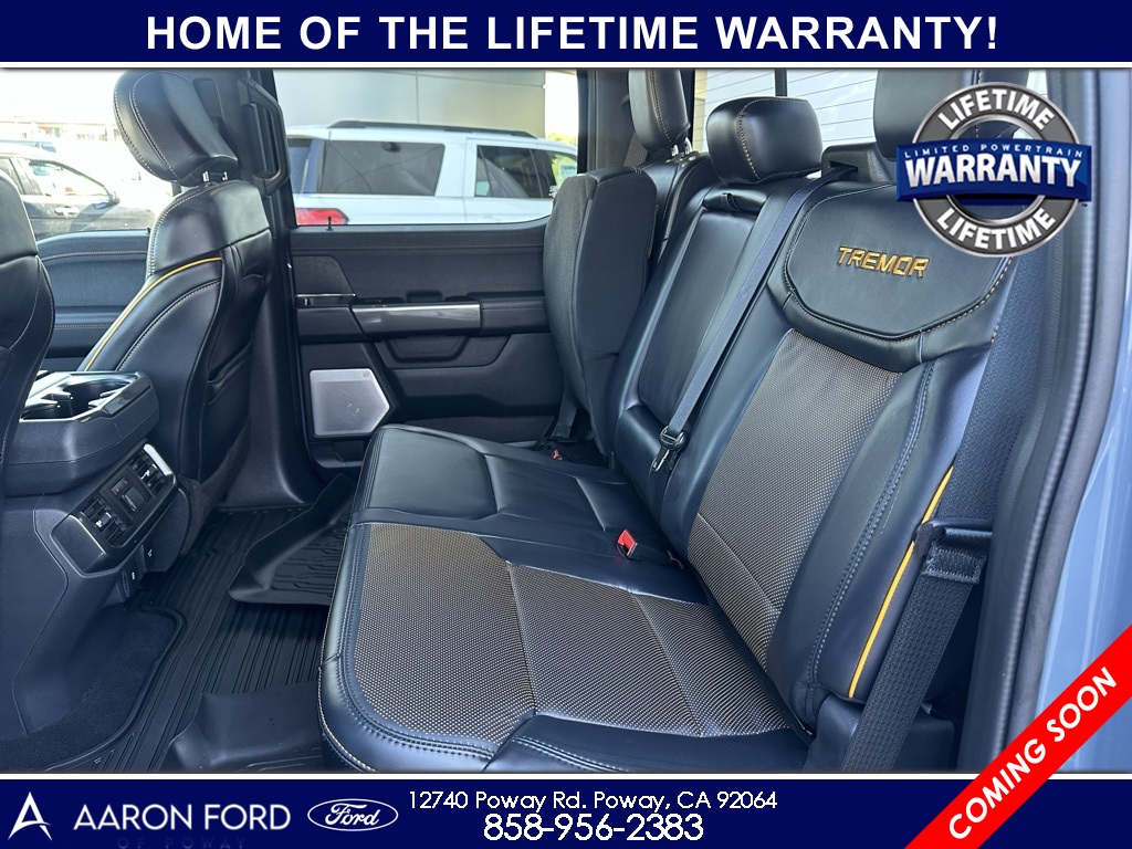 Priced below KBB Fair Purchase Price!12" Productivity Screen in Instrument Cluster, 2nd Row Heated Seats, 360 Degree Camera, ABS brakes, Advanced Security Pack, Air Conditioning, Alloy wheels, Bed Utility Package, BoxLink, Compass, Connected Built-In Navigation, Electronic Stability Control, Equipment Group 402A High, Evasive Steering Assist, Ford Co-Pilot360 Assist 2.0, Front dual zone A/C, GVWR: 7,000 lbs Payload Package, Heated door mirrors, Heated front seats, Heated Steering Wheel, Illuminated entry, Intelligent Adaptive Cruise Control w/Stop & Go, Intersection Assist, LED Box Lighting, LED Projector w/Dynamic Bending Headlamps, Low tire pressure warning, Navigation system: Connected Navigation, Power Glass Sideview Mirr w/Body-Color Skull Caps, Power Tailgate, Power Tilt/Telescoping Steering Column w/Memory, Power-Adjustable Pedals w/Memory, Power-Sliding Rear Window, Pro Trailer Backup Assist & Pro Trailer Hitch Assist, Radio: B&O Sound System by Bang & Olufsen, Rain-Sensing Wipers, Rear step bumper, Remote keyless entry, Speed control, Speed Sign Recognition, SYNC 4 w/Enhanced Voice Recognition, Tailgate Step w/Tailgate Work Surface, Traction control, Twin Panel Moonroof, Unique Tremor Leather-Trimmed Bucket Seats, Universal Garage Door Opener, Wireless Charging Pad, Zone Lighting.Odometer is 5956 miles below market average!CARFAX One-Owner.Clean CARFAX.To see more quality vehicles like this one right just click on AaronFordofPoway.com or dial (858) 748-1400.