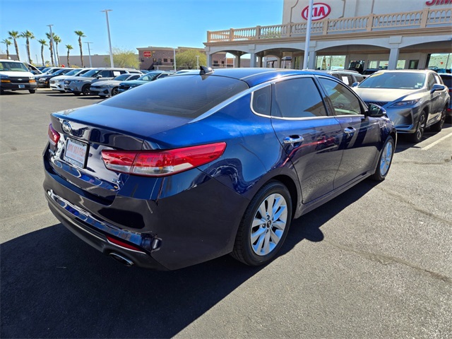 Priced below KBB Fair Purchase Price!Odometer is 34792 miles below market average!24/35 City/Highway MPGBlue 2016 Kia Optima EX FWD 6-Speed Automatic with Sportmatic 2.4L I4 DGI DOHC Leather.If you don't drive here, you can't save here!Awards: * JD Power Automotive Performance, Execution and Layout (APEAL) Study * 2016 IIHS Top Safety Pick+ * 2016 KBB.com 16 Best Family Cars * 2016 KBB.com 10 Best Used Cars Under $20,000 * 2016 KBB.com 10 Most Comfortable Cars Under $30,000 * 2016 KBB.com 10 Best Sedans Under $25,000 * 2016 KBB.com 10 Most Awarded Cars * 2016 KBB.com Best Buy Awards * 2016 KBB.com Best Buy Awards FinalistPrice may not include recon fee. Leather, 17" Alloy Wheels, 4-Wheel Disc Brakes, 6 Speakers, ABS brakes, Air Conditioning, Alloy wheels, AM/FM radio: SiriusXM, AM/FM/CD/MP3 Radio, Automatic temperature control, Brake assist, Bumpers: body-color, CD player, Delay-off headlights, Driver door bin, Driver vanity mirror, Dual front impact airbags, Dual front side impact airbags, Electronic Stability Control, Exterior Parking Camera Rear, Four wheel independent suspension, Front anti-roll bar, Front Bucket Seats, Front Center Armrest, Front dual zone A/C, Front reading lights, Fully automatic headlights, Heated door mirrors, Heated Front Bucket Seats, Heated front seats, Heated steering wheel, Illuminated entry, Knee airbag, Leather Seat Trim, Leather Shift Knob, Leather steering wheel, Low tire pressure warning, Memory seat, Occupant sensing airbag, Outside temperature display, Overhead airbag, Overhead console, Panic alarm, Passenger door bin, Passenger vanity mirror, Power door mirrors, Power driver seat, Power steering, Power windows, Rear anti-roll bar, Rear reading lights, Rear seat center armrest, Rear window defroster, Remote keyless entry, Security system, Speed control, Speed-sensing steering, Split folding rear seat, Steering wheel mounted audio controls, Tachometer, Telescoping steering wheel, Tilt steering wheel, Traction control, Trip computer, Turn signal indicator mirrors, and Variably intermittent wipers.