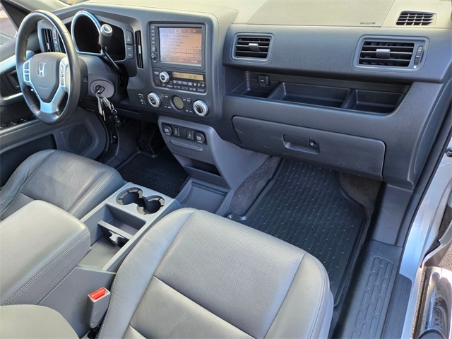 Recent Arrival!Odometer is 56145 miles below market average!Silver 2007 Honda Ridgeline RTL 4WD 5-Speed Automatic 3.5L V6 SOHC VTEC 24V Leather.If you don't drive here, you can't save here!Awards: * 2007 KBB.com 10 Best Used Trucks Under $10,000 * 2007 KBB.com Best Resale Value AwardsFor more information, visit www.kbb.com. Kelley Blue Book is a registered trademark of Kelley Blue Book Co., Inc.Price may not include recon fee. Leather, 17 x 7.5J Silver Painted Alloy Wheels, 4-Wheel Disc Brakes, 4.533 Axle Ratio, 7 Speakers, ABS brakes, Air Conditioning, Alloy wheels, AM/FM radio: XM, AM/FM/6-Disc In-Dash CD Chgr & XM Satellite, Automatic temperature control, Brake assist, Bumpers: body-color, CD player, Driver door bin, Driver vanity mirror, Dual front impact airbags, Dual front side impact airbags, Electronic Stability Control, Four wheel independent suspension, Front anti-roll bar, Front Bucket Seats, Front Center Armrest w/Storage, Front dual zone A/C, Front reading lights, Garage door transmitter: HomeLink, Heated door mirrors, Heated Front Bucket Seats, Heated front seats, Illuminated entry, Leather Seat Trim, Low tire pressure warning, Occupant sensing airbag, Outside temperature display, Overhead airbag, Overhead console, Panic alarm, Passenger door bin, Passenger vanity mirror, Power door mirrors, Power driver seat, Power moonroof, Power steering, Power windows, Rear anti-roll bar, Rear reading lights, Rear seat center armrest, Rear step bumper, Remote keyless entry, Security system, Speed control, Speed-sensing steering, Split folding rear seat, Steering wheel mounted audio controls, Tachometer, Tilt steering wheel, Traction control, Trip computer, Variably intermittent wipers, and XM Satellite Radio.