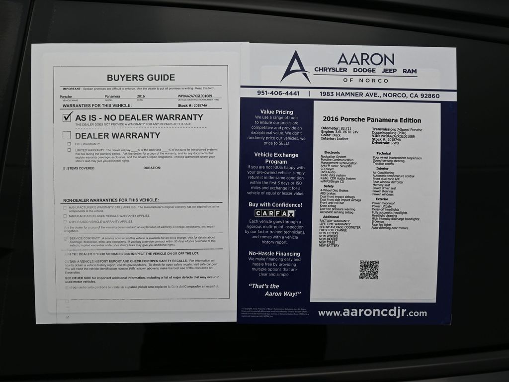 FRESH OIL CHANGE, NEW FILTERS, NEW WIPERS, Panamera Edition, 4D Hatchback, 3.6L V6 DI 24V, 7-Speed Porsche Doppelkupplung (PDK), Alloy wheels, CD player, Compass, DVD-Audio, Front dual zone A/C, Knee airbag, Memory seat, Navigation System, Overhead airbag, Porsche Communication Management w/Navigation, Power Liftgate, Power moonroof, Rear fog lights, Spoiler.Awards: * 2016 KBB.com Best Resale Value Awards * 2016 KBB.com Brand Image Awards