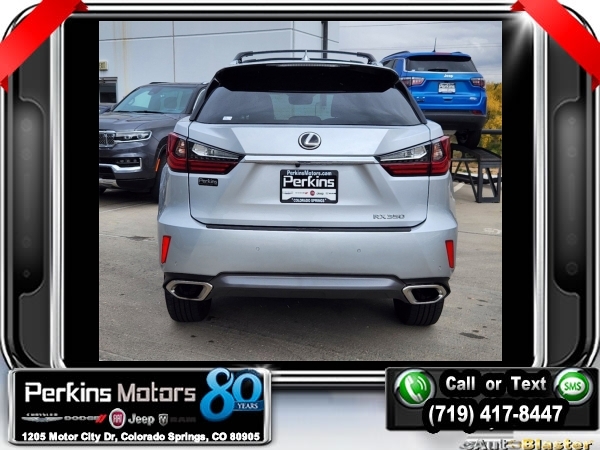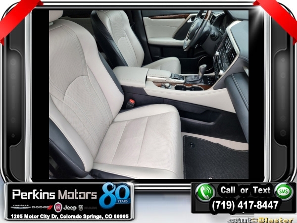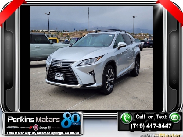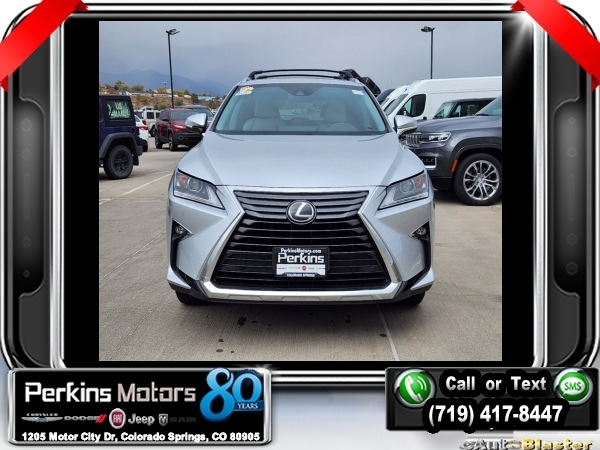 Silver AWD 3.5L V6 DOHC VVT-i 24V 8-Speed Automatic<br><br>AWD, ABS brakes, Adaptive Cruise Control, Alloy wheels, Compass, Electronic Stability Control, Front dual zone A/C, Heated door mirrors, Illuminated entry, Low tire pressure warning, Power Liftgate, Remote keyless entry, Traction control.<br><br><br>Check us out at www.perkinsmotors.com to see our specials! Since opening our doors in 1944, we’ve been proud to serve Colorado Springs, CO, and the surrounding areas of Pueblo, Castle Rock and Denver, CO. Throughout this time of being family owned for 80 years, we’ve maintained a firm commitment to our customers: to offer a wide selection of New Chrysler, Dodge, Fiat, Jeep, and Ram vehicles and quality pre-owned vehicles, and provide a quick, no-hassle car-buying process that ensures everyone drives off the lot satisfied with their purchase.<br><br><br>Awards:<br> * 2019 KBB.com Best Resale Value Awards * 2019 KBB.com 10 Best Luxury SUVs * 2019 KBB.com 5-Year Cost to Own Awards * 2019 KBB.com Brand Image Awards<br><br>AWD, ABS brakes, Adaptive Cruise Control, Alloy wheels, Compass, Electronic Stability Control, Front dual zone A/C, Heated door mirrors, Illuminated entry, Low tire pressure warning, Power Liftgate, Remote keyless entry, Traction control, 2.277 Axle Ratio, 4-Wheel Disc Brakes, 9 Speakers, Air Conditioning, AM/FM radio: SiriusXM, AM/FM/CD Radio, Anti-whiplash front head restraints, Auto High-beam Headlights, Auto-dimming Rear-View mirror, Automatic temperature control, Bumpers: body-color, CD player, Cruise Control, Delay-off headlights, Distance pacing cruise control: All-Speed Dynamic Radar Cruise Control, Driver door bin, Driver vanity mirror, Dual front impact airbags, Dual front side impact airbags, Emergency communication system: Lexus Enform w/Safety Connect, Exterior Parking Camera Rear, Four wheel independent suspension, Front anti-roll bar, Front Bucket Seats, Front Center Armrest, Front fog lights, Front reading lights, Fully automatic headlights, Garage door transmitter: HomeLink, Genuine wood console insert, Genuine wood door panel insert, Knee airbag, Leather Shift Knob, Leather steering wheel, NuLuxe Seat Trim, Occupant sensing airbag, Outside temperature display, Overhead airbag, Overhead console, Panic alarm, Passenger door bin, Passenger vanity mirror, Power door mirrors, Power driver seat, Power passenger seat, Power steering, Power windows, Radio data system, Rain sensing wipers, Rear anti-roll bar, Rear reading lights, Rear seat center armrest, Rear side impact airbag, Rear window defroster, Rear window wiper, Security system, Speed-sensing steering, Split folding rear seat, Spoiler, Steering wheel mounted audio controls, Tachometer, Telescoping steering wheel, Tilt steering wheel, Trip computer, Turn signal indicator mirrors, Variably intermittent wipers, and Wheels: 18 x 8 7-Spoke Aluminum.