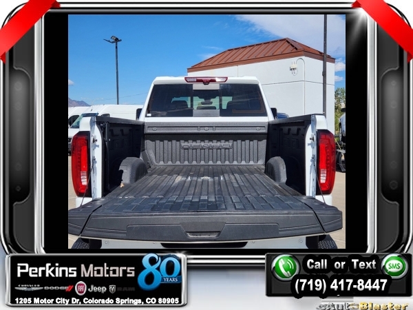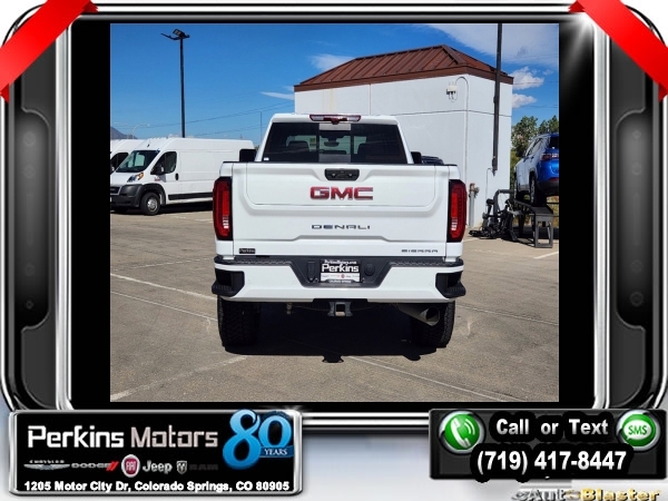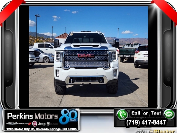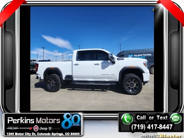 Summit White 4WD Duramax 6.6L V8 Turbodiesel 10-Speed Automatic<br><br>10-Speed Automatic, 4WD, Dark Walnut/Dark Ash Grey Leather, 12-Volt Rear Auxiliary Power Outlet, 120-Volt Bed Mounted Power Outlet, 120-Volt Instrument Panel Power Outlet, 2 USB Ports, 2 USB Ports (1st Row), 2-Speed Active Transfer Case, 2nd Row Dual USB Charge-Only Ports, 3.42 Axle Ratio, 4G LTE Wi-Fi Hotspot Capable, 6 Rectangular Chromed Tubular Assist Steps, Automatic Emergency Braking, Bed View Camera w/2 Trailer Camera Provisions, Bose Premium 7 Speaker Sound System, Chrome Recovery Hooks, Compass Located In Instrument Cluster, Deep-Tinted Glass, Driver Alert Package I, Driver Alert Package II, Electric Rear-Window Defogger, Electrical Lock Control Steering Column, Floor-Mounted Center Console, Following Distance Indicator, Forward Collision Alert, GMC Connected Access Capable, HD Radio, HD Surround Vision, Heated & Ventilated Front Bucket Seats, Heated 2nd Row Outboard Seats, Heated Driver & Front Outboard Passenger Seats, Heavy Duty Front Spring/Camper Package, Hill Descent Control, Inside Rearview Auto-Dimming Rear Camera Mirror, Integrated Trailer Brake Controller, IntelliBeam Automatic High Beam On/Off, Keyless Open & Start, Lane Change Alert w/Side Blind Zone Alert, Lane Departure Warning System, LED Cargo Area Lighting, LED Smoked Amber Roof Marker Lamps, Manual Tilt-Wheel/Telescoping Steering Column, Multicolor 15 Diagonal Head-Up Display, Navigation System, OnStar & GMC Connected Services Capable, Polished Exhaust Tip, Power Door Locks, Power Front Passenger Windows w/Express Up/Down, Power Rear Windows w/Express Down, Power Sliding Rear Window w/Defogger, Power Windows w/Driver Express Up/Down, Preferred Equipment Group 5SA, Premium audio system: Premium GMC Infotainment System, Radio: Premium GMC Infotainment Sys w/Navigation, Rear Cross Traffic Alert, Rear Wheelhouse Liners, Remote Vehicle Starter System, Safety Alert Seat, Signature Denali Grille, SiriusXM w/360L, Spray-On Pickup Box Bed Liner w/Denali Logo, Steering Wheel Audio Controls, Technology Package, Ultrasonic Front & Rear Park Assist, Unauthorized Entry Theft-Deterrent System, Universal Home Remote, Wireless Charging, Wireless Phone Projection, X31 Off-Road Package.<br><br><br>CARFAX One-Owner.<br><br>Check us out at www.perkinsmotors.com to see our specials! Since opening our doors in 1944, we’ve been proud to serve Colorado Springs, CO, and the surrounding areas of Pueblo, Castle Rock and Denver, CO. Throughout this time of being family owned for 80 years, we’ve maintained a firm commitment to our customers: to offer a wide selection of New Chrysler, Dodge, Fiat, Jeep, and Ram vehicles and quality pre-owned vehicles, and provide a quick, no-hassle car-buying process that ensures everyone drives off the lot satisfied with their purchase.<br><br><br>Driver Alert Package I (Lane Change Alert w/Side Blind Zone Alert, Rear Cross Traffic Alert, and Ultrasonic Front & Rear Park Assist), Driver Alert Package II (Automatic Emergency Braking, Following Distance Indicator, Forward Collision Alert, IntelliBeam Automatic High Beam On/Off, and Lane Departure Warning System), Heavy Duty Front Spring/Camper Package, Preferred Equipment Group 5SA (12-Volt Rear Auxiliary Power Outlet, 120-Volt Bed Mounted Power Outlet, 120-Volt Instrument Panel Power Outlet, 2 USB Ports, 2 USB Ports (1st Row), 2-Speed Active Transfer Case, 2nd Row Dual USB Charge-Only Ports, 4G LTE Wi-Fi Hotspot Capable, 6 Rectangular Chromed Tubular Assist Steps, Bed View Camera w/2 Trailer Camera Provisions, Chrome Recovery Hooks, Compass Located In Instrument Cluster, Deep-Tinted Glass, Electric Rear-Window Defogger, Electrical Lock Control Steering Column, Floor-Mounted Center Console, GMC Connected Access Capable, HD Surround Vision, Heated & Ventilated Front Bucket Seats, Heated 2nd Row Outboard Seats, Heated Driver & Front Outboard Passenger Seats, Integrated Trailer Brake Controller, Keyless Open & Start, LED Car