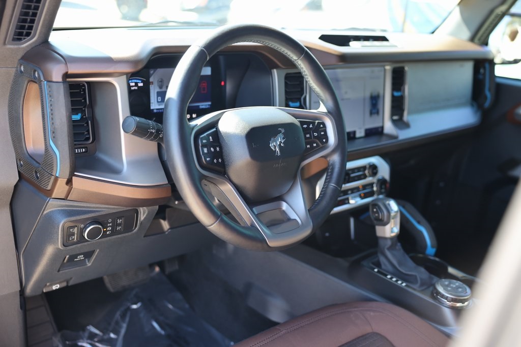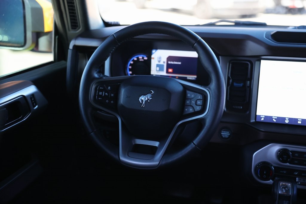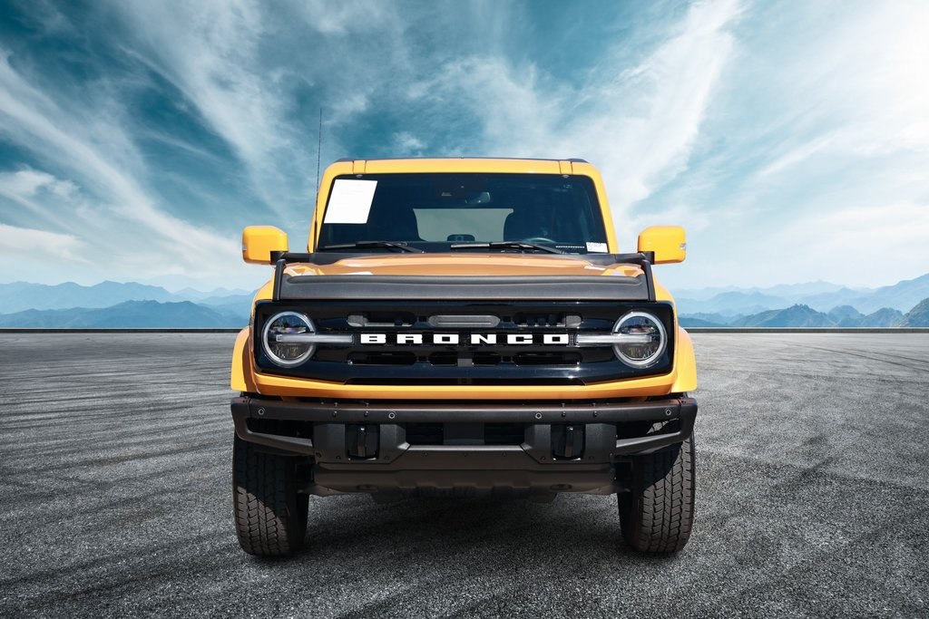 Cyber Orange Metallic Tricoat 2022 Ford Bronco Outer Banks 4WD 10-Speed Automatic 2.3L EcoBoost I-4 12" LCD Capacitive Touchscreen w/Swipe Capability, 18" Bright Machined Aluminum Wheels, 2 Smart Charging USB Ports In Dashboard, 360-Degree Camera, 4.27 Axle Ratio, 6 Speakers, ABS brakes, Adaptive Cruise Control, Additional Sound Deadening, Air Conditioning, Brake assist, Compass, Connected Built-In Navigation, Electronic Stability Control, Equipment Group 314A Lux Package, Evasive Steering Assist, Exterior Parking Camera Rear, Front Bucket Seats, Front Parking Sensors, Fully automatic headlights, Heated door mirrors, Heated Steering Wheel, Illuminated entry, Information on Demand Panel, Low tire pressure warning, Radio: B&O Sound System by Bang & Olufsen, Remote keyless entry, Sideview Mirrors, Speed control, Traction control, Universal Garage Door Opener, Wireless Charging Pad.Awards: * NACTOY 2022 North American Utility of the Year