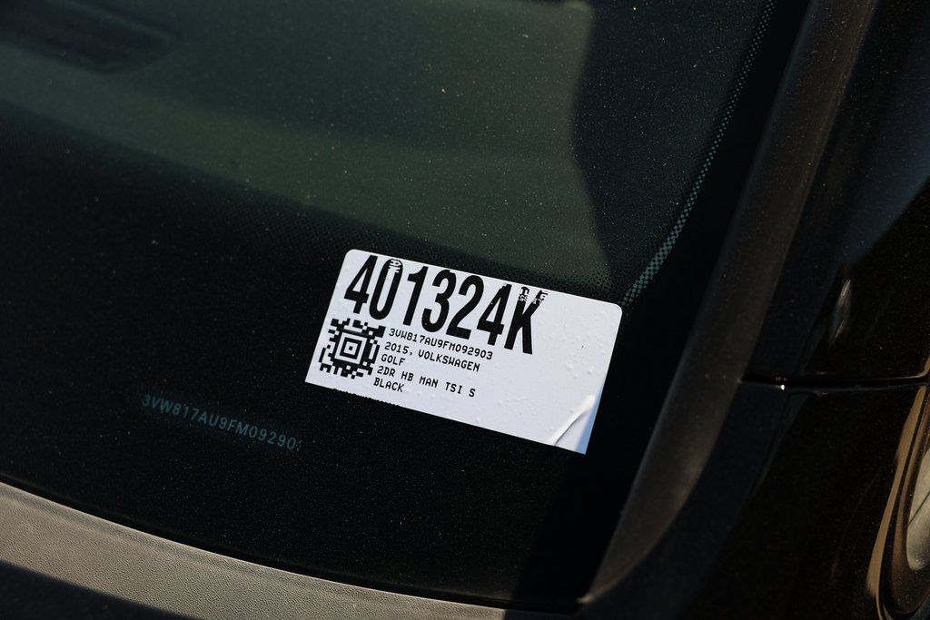 Black 2015 Volkswagen Golf TSI S 2-Door FWD 5-Speed Manual 1.8L I4 Turbocharged DOHC 16V ULEV II 170hp Titan Black w/Leatherette Seating Surfaces, 8 Speakers, Air Conditioning, Brake assist, Electronic Stability Control, Front Bucket Seats, Leatherette Seating Surfaces, Radio: 5.8" Touchscreen AM/FM Audio w/CD, Speed control, Turn signal indicator mirrors, V-Tex Comfort Seats, Wheels: 15" Lyon Alloy.25/37 City/Highway MPGAwards: * 2015 KBB.com Best Buy Awards Finalist * 2015 KBB.com 10 Coolest New Cars Under $18,000 * 2015 KBB.com Our 10 Favorite New-for-2015 Cars * NACTOY 2015 North American Car of the Year