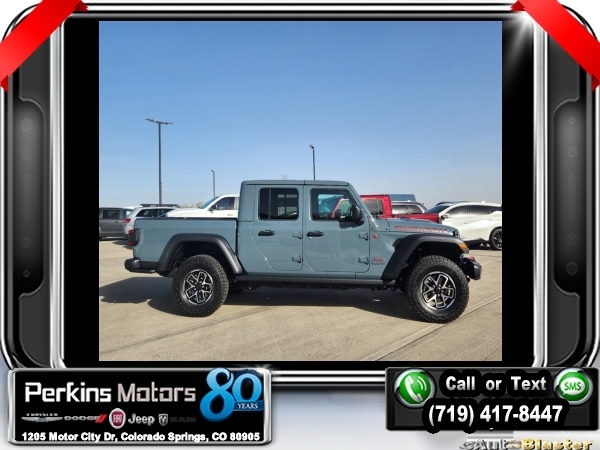 Factory MSRP: $61,915 $17,750 off MSRP! Priced below KBB Fair Purchase Price! Anvil Clear Coat 2024 Jeep Gladiator Rubicon 4WD 8-Speed Automatic 3.6L V6 24V VVT<br><br>Check us out at www.perkinsmotors.com to see our specials! Since opening our doors in 1944, we’ve been proud to serve Colorado Springs, CO, and the surrounding areas of Pueblo, Castle Rock and Denver, CO. Throughout this time of being family owned for 80 years, we’ve maintained a firm commitment to our customers: to offer a wide selection of New Chrysler, Dodge, Fiat, Jeep, and Ram vehicles and quality pre-owned vehicles, and provide a quick, no-hassle car-buying process that ensures everyone drives off the lot satisfied with their purchase.<br><br>Convenience Group (Heated Front Seats, Heated Steering Wheel, SiriusXM Radio Service, and SiriusXM w/360L), Quick Order Package 24R Rubicon, 12.3 Touchscreen Display, 4-Wheel Disc Brakes, 4.10 Rear Axle Ratio, 4G LTE Wi-Fi Hot Spot, 8 Speakers, 97 MPH Vehicle Max Speed Calibration, ABS brakes, Air Conditioning, Alexa Built-In, Alloy wheels, AM/FM radio: SiriusXM with 360L, Apple CarPlay, Apple CarPlay/Android Auto, Automatic temperature control, Body Color 3-Piece Hard Top, Brake assist, Cloth Low-Back Bucket Seats, Compass, Connectivity - US/Canada, Cruise Control, Delay-off headlights, Driver door bin, Driver vanity mirror, Dual front impact airbags, Dual front side impact airbags, Electronic Stability Control, Emergency communication system: Jeep Connect, Front anti-roll bar, Front Bucket Seats, Front Center Armrest w/Storage, Front dual zone A/C, Front fog lights, Front License Plate Bracket, Front reading lights, Fully automatic headlights, Google Android Auto, Heated door mirrors, Illuminated entry, Integrated Center Stack Radio, Integrated roll-over protection, Low tire pressure warning, Manufacturer's Statement of Origin (DISC), MOPAR All-Weather Slush Mats, MOPAR Spray In Bedliner, Occupant sensing airbag, Outside temperature display, Overhead airbag, Panic alarm, Passenger door bin, Passenger vanity mirror, Performance Suspension, Power door mirrors, Power steering, Power windows, Radio data system, Radio: Uconnect 5 w/12.3 Display, Rear anti-roll bar, Rear reading lights, Remote keyless entry, Security system, Split folding rear seat, Steering wheel mounted audio controls, Tachometer, Telescoping steering wheel, Tilt steering wheel, Traction control, Trip computer, USB Host Flip, Variably intermittent wipers, Voltmeter, and Wheels: 17 x 7.5 Machined/Painted Black. Sale price includes all manufacture's incentives and dealer discounts. Sale price not available on lease or compatible with special APR. $3250 - 2024 Bonus Cash . Exp. 12/02/2024