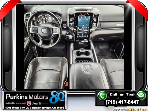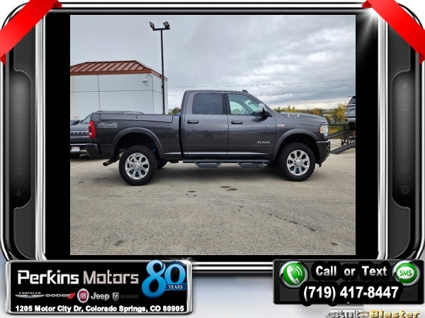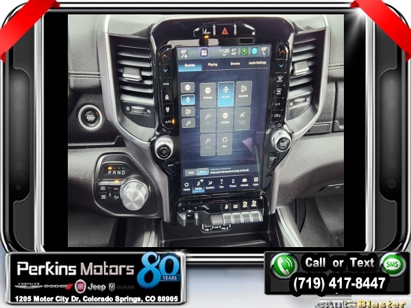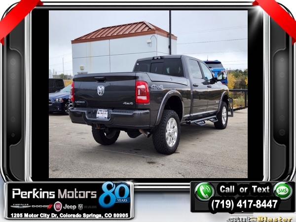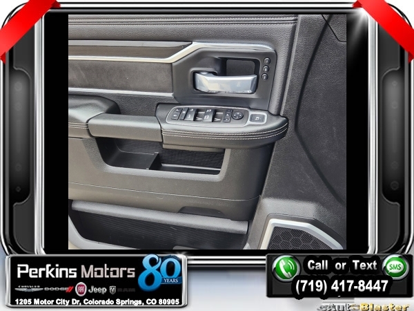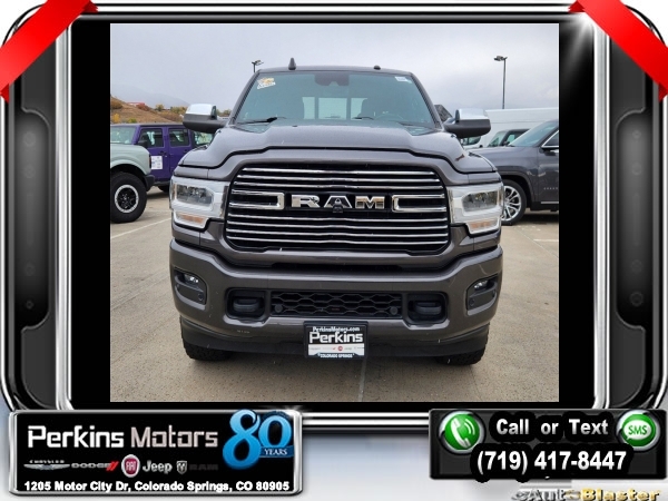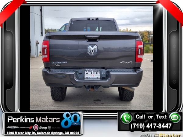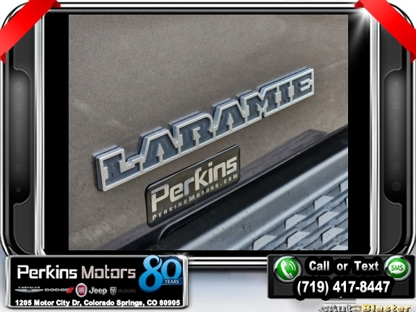 Granite Crystal Metallic Clearcoat 4WD 6.4L V8 8-Speed Automatic<br><br>10 Speakers, 12 Touchscreen Display, 220 Amp Alternator, 2nd Row In Floor Storage Bins, 3.73 Axle Ratio, 4 Adjustable Cargo Tie-Down Hooks, 4G LTE Wi-Fi Hot Spot, Adaptive Cruise Control w/Stop, Adaptive Steering System, Alexa Built-In, All R1 High Radios, All Radio Equipped Vehicles, Apple CarPlay, Auto High Beam Headlamp Control, Black Interior Accents, Body Color Door Handles, Body Color Grille Surround, Chrome Exterior Mirrors, Connected Travel & Traffic Services, Connectivity - US/Canada, CTR Stop Lamp w/Cargo View Camera, Digital Rearview Mirror, Disassociated Touchscreen Display, Exterior Mirrors Courtesy Lamps, Exterior Mirrors w/Heating Element, Exterior Mirrors w/Memory, Exterior Mirrors w/Supplemental Signals, Foam Bottle Insert (Door Trim Panel), For Details, Visit DriveUconnect.com, For More Info, Call 800-643-2112, Front Performance Tuned Shock Absorbers, Full Speed Forward Collision Warning Plus, Global Telematics Box Module (TBM), Google Android Auto, GPS Antenna Input, GPS Navigation, HD Radio, Heavy Duty Snow Plow Prep Group, Hill Descent Control, Integrated Voice Command w/Bluetooth, Lane Keep Assist, Laramie Level A Equipment Group, Mirror Running Lights, Mirror-Mounted Aux Reverse Lamps, Off Road Decal, Off Road Package, Off-Road Information Pages, Painted Front Bumper, Painted Rear Bumper, Power Adjustable Convex Aux Mirrors, Power Adjustable Pedals w/Memory, Power Chrome Tow Mirrors w/Convex Spotter & Memory, Power Folding Mirrors, Quick Order Package 2GH Laramie, Radio: Uconnect 5 Nav w/12.0 Display, Radio/Driver Seat/Mirrors/Pedals Memory, Rain Sensitive Windshield Wipers, RamBox Utility Group (DISC), Rear Performance Tuned Shock Absorbers, Remote Tailgate Release, Safety Group B (DISC), Selectable Tire Fill Alert, SiriusXM Radio Service, SiriusXM w/360L, Sport Appearance Package, Sport Decal, Surround View Camera System, Tow Hooks, Tow-Mode Camera (Wired) (DISC), Tow-Mode Digital Rearview Mirror Package (DISC), Towing Technology Group B, Trailer Reverse Guidance, Trailer Tow Mirrors, Truck Bed Cargo Divider.<br><br><br>CARFAX One-Owner. Clean CARFAX.<br><br>Check us out at www.perkinsmotors.com to see our specials! Since opening our doors in 1944, we’ve been proud to serve Colorado Springs, CO, and the surrounding areas of Pueblo, Castle Rock and Denver, CO. Throughout this time of being family owned for 80 years, we’ve maintained a firm commitment to our customers: to offer a wide selection of New Chrysler, Dodge, Fiat, Jeep, and Ram vehicles and quality pre-owned vehicles, and provide a quick, no-hassle car-buying process that ensures everyone drives off the lot satisfied with their purchase.<br><br><br>Heavy Duty Snow Plow Prep Group (220 Amp Alternator), Laramie Level An Equipment Group (2nd Row In Floor Storage Bins, Auto High Beam Headlamp Control, Chrome Exterior Mirrors, Exterior Mirrors Courtesy Lamps, Exterior Mirrors w/Heating Element, Exterior Mirrors w/Memory, Exterior Mirrors w/Supplemental Signals, Foam Bottle Insert (Door Trim Panel), Mirror Running Lights, Mirror-Mounted Aux Reverse Lamps, Power Adjustable Convex Aux Mirrors, Power Adjustable Pedals w/Memory, Power Chrome Tow Mirrors w/Convex Spotter & Memory, Power Folding Mirrors, Radio/Driver Seat/Mirrors/Pedals Memory, Rain Sensitive Windshield Wipers, Remote Tailgate Release, and Trailer Tow Mirrors), Off Road Package (Front Performance Tuned Shock Absorbers, Hill Descent Control, Off Road Decal, Rear Performance Tuned Shock Absorbers, and Tow Hooks), Quick Order Package 2GH Laramie, RamBox Utility Group (DISC) (4 Adjustable Cargo Tie-Down Hooks and Truck Bed Cargo Divider), Safety Group B (DISC) (Adaptive Cruise Control w/Stop, Adaptive Steering System, Digital Rearview Mirror, Full Speed Forward Collision Warning Plus, and Lane Keep Assist), Sport Appearance Package (Black Interior Accents, Body Color Door Handles, Body Color Grille Surround, Painted