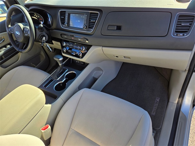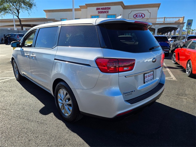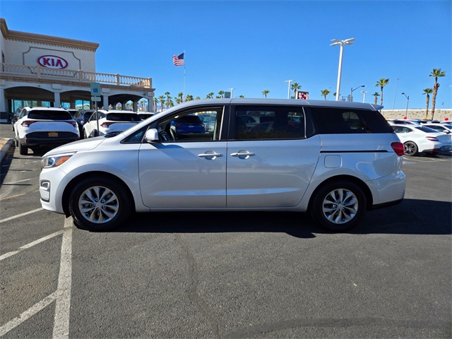 Priced below KBB Fair Purchase Price!Silky Silver 2021 Kia Sedona LX FWD 8-Speed Automatic 3.3L V6 DGIIf you don't drive here, you can't save here!Price may not include recon fee. 2-Way Power Driver's Lumbar Support, 3.51 Axle Ratio, 3rd row seats: split-bench, 4-Wheel Disc Brakes, 6 Speakers, 8-Way Power Driver's Seat, ABS brakes, Air Conditioning, Alloy wheels, AM/FM radio, Apple CarPlay & Android Auto, Brake assist, Bumpers: body-color, Carpeted Floor Mats, Cloth Seat Trim w/YES Essentials, Delay-off headlights, Driver door bin, Driver vanity mirror, Dual front impact airbags, Dual front side impact airbags, Electronic Stability Control, Exterior Parking Camera Rear, Four wheel independent suspension, Front anti-roll bar, Front Bucket Seats, Front Center Armrest, Front reading lights, Fully automatic headlights, Illuminated entry, Low tire pressure warning, Occupant sensing airbag, Outside temperature display, Overhead airbag, Overhead console, Panic alarm, Passenger door bin, Passenger vanity mirror, Power door mirrors, Power driver seat, Power steering, Power windows, Radio: AM/FM Audio System, Rear air conditioning, Rear anti-roll bar, Rear reading lights, Rear window defroster, Rear window wiper, Reclining 3rd row seat, Remote keyless entry, Security system, Speed control, Speed-sensing steering, Split folding rear seat, Spoiler, Steering wheel mounted audio controls, Tachometer, Telescoping steering wheel, Tilt steering wheel, Traction control, Trip computer, Turn signal indicator mirrors, Variably intermittent wipers, and Wheels: 17" x 6.5J Clear Silver Painted Alloy.