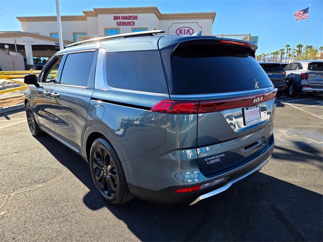 Priced below KBB Fair Purchase Price!Odometer is 8197 miles below market average!19/26 City/Highway MPGAstra Blue 2023 Kia Carnival SX FWD 8-Speed Automatic V6If you don't drive here, you can't save here!Price may not include recon fee. 3.51 Axle Ratio, 3rd row seats: split-bench, 4-Wheel Disc Brakes, ABS brakes, Air Conditioning, Alloy wheels, AM/FM radio: SiriusXM, Apple CarPlay & Android Auto, Auto High-beam Headlights, Automatic temperature control, Brake assist, Bumpers: body-color, Carpeted Floor Mats (8-Passenger), Compass, Delay-off headlights, Driver door bin, Driver vanity mirror, Driver's Seat Integrated Memory System, Dual front impact airbags, Dual front side impact airbags, Electronic Stability Control, Emergency communication system, Exterior Parking Camera Rear, Four wheel independent suspension, Front anti-roll bar, Front Bucket Seats, Front Center Armrest, Front dual zone A/C, Front fog lights, Front reading lights, Fully automatic headlights, Heated & Ventilated Front Bucket Seats, Heated door mirrors, Heated front seats, Illuminated entry, Knee airbag, Leather Shift Knob, Leather steering wheel, Low tire pressure warning, Memory seat, Navigation System, Occupant sensing airbag, Outside temperature display, Overhead airbag, Overhead console, Panic alarm, Passenger door bin, Passenger vanity mirror, Power door mirrors, Power driver seat, Power Liftgate, Power passenger seat, Power steering, Power windows, Radio: AM/FM/HD Audio System, Rear air conditioning, Rear anti-roll bar, Rear reading lights, Rear window defroster, Rear window wiper, Reclining 3rd row seat, Remote keyless entry, Roof rack: rails only, Security system, Speed control, Speed-sensing steering, Split folding rear seat, Spoiler, Steering wheel mounted audio controls, Tachometer, Telescoping steering wheel, Tilt steering wheel, Traction control, Trip computer, Turn signal indicator mirrors, Variably intermittent wipers, Ventilated front seats, and Wheels: 7.5J x 19" Black Painted Alloy.