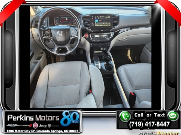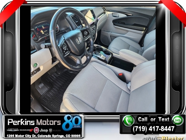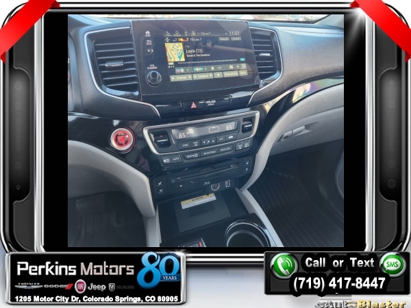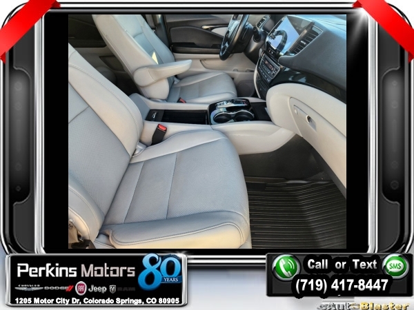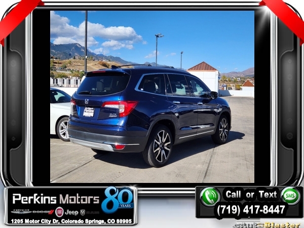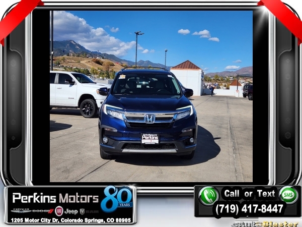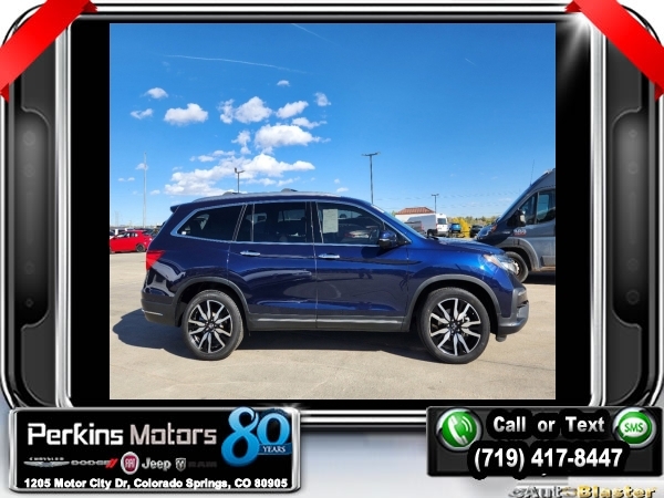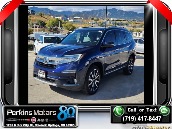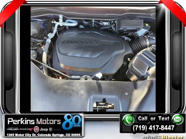 Blue AWD 3.5L V6 24V SOHC i-VTEC 9-Speed Automatic<br><br>AWD, 10 Speakers, Navigation system: Honda Satellite-Linked Navigation System, Power Liftgate, Power moonroof, Radio: 590-Watt Premium Audio System.<br><br><br>CARFAX One-Owner. Clean CARFAX.<br><br>Check us out at www.perkinsmotors.com to see our specials! Since opening our doors in 1944, we’ve been proud to serve Colorado Springs, CO, and the surrounding areas of Pueblo, Castle Rock and Denver, CO. Throughout this time of being family owned for 80 years, we’ve maintained a firm commitment to our customers: to offer a wide selection of New Chrysler, Dodge, Fiat, Jeep, and Ram vehicles and quality pre-owned vehicles, and provide a quick, no-hassle car-buying process that ensures everyone drives off the lot satisfied with their purchase.<br><br><br>AWD, 10 Speakers, Navigation system: Honda Satellite-Linked Navigation System, Power Liftgate, Power moonroof, Radio: 590-Watt Premium Audio System, 3rd row seats: split-bench, 4-Wheel Disc Brakes, 4.33 Axle Ratio, A/V remote: CabinControl, ABS brakes, Air Conditioning, Alloy wheels, AM/FM radio: SiriusXM, Apple CarPlay/Android Auto, Auto High-beam Headlights, Auto-dimming door mirrors, Auto-dimming Rear-View mirror, Automatic temperature control, Blind Spot Information (BSI) System warning, Brake assist, Bumpers: body-color, Compass, Cruise Control, Delay-off headlights, Driver door bin, Driver vanity mirror, Dual front impact airbags, Dual front side impact airbags, Electronic Stability Control, Emergency communication system: HondaLink, Exterior Parking Camera Rear, Forward collision: Collision Mitigation Braking System (CMBS) + FCW mitigation, Four wheel independent suspension, Front anti-roll bar, Front Bucket Seats, Front Center Armrest, Front dual zone A/C, Front fog lights, Front reading lights, Fully automatic headlights, Garage door transmitter: HomeLink, Headphones, Heated & Ventilated Front Bucket Seats, Heated door mirrors, Heated front seats, Heated rear seats, Heated steering wheel, Illuminated entry, Lane departure: Lane Keeping Assist System (LKAS) active, Low tire pressure warning, Memory seat, Occupant sensing airbag, Outside temperature display, Overhead airbag, Overhead console, Panic alarm, Passenger door bin, Passenger vanity mirror, Perforated Leather Seat Trim, Power door mirrors, Power driver seat, Power passenger seat, Power steering, Power windows, Radio data system, Rain sensing wipers, Rear air conditioning, Rear anti-roll bar, Rear audio controls, Rear reading lights, Rear window defroster, Rear window wiper, Reclining 3rd row seat, Remote keyless entry, Roof rack: rails only, Security system, Speed-sensing steering, Speed-Sensitive Wipers, Split folding rear seat, Spoiler, Steering wheel mounted audio controls, Tachometer, Telescoping steering wheel, Tilt steering wheel, Traction control, Trip computer, Turn signal indicator mirrors, Variably intermittent wipers, Ventilated front seats, and Wheels: 20 Machine-Finished Alloy.